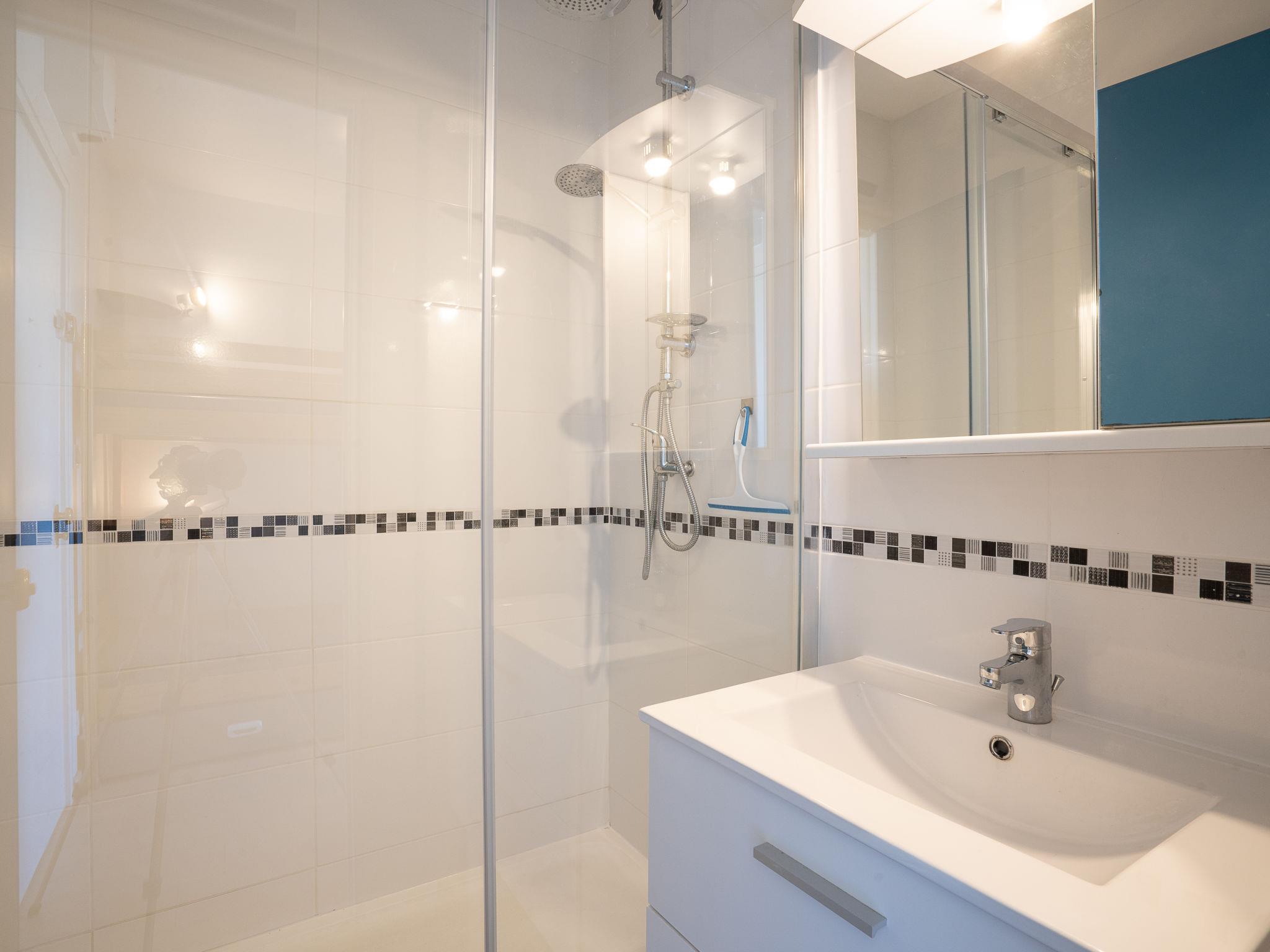 2-room apartment 30 m2 on 1st floor, north facing position. Object suitable for 2 adults + 2 children. Entrance hall with 1 x 2 bunk beds (80 cm, length 190 cm). Living/dining room with TV (flat screen). 1 room with sliding door with 1 french bed (140 cm, length 190 cm). Exit to the terrace. Kitchenette (4 hot plates, oven, dishwasher, microwave, electric coffee machine). Bathroom, sep. WC. Air-conditioning. Terrace 10 m2. Terrace furniture. Beautiful view of the sea. Parking space n EN COMMUN. Please note: suitable for families. Smoke alarm.
