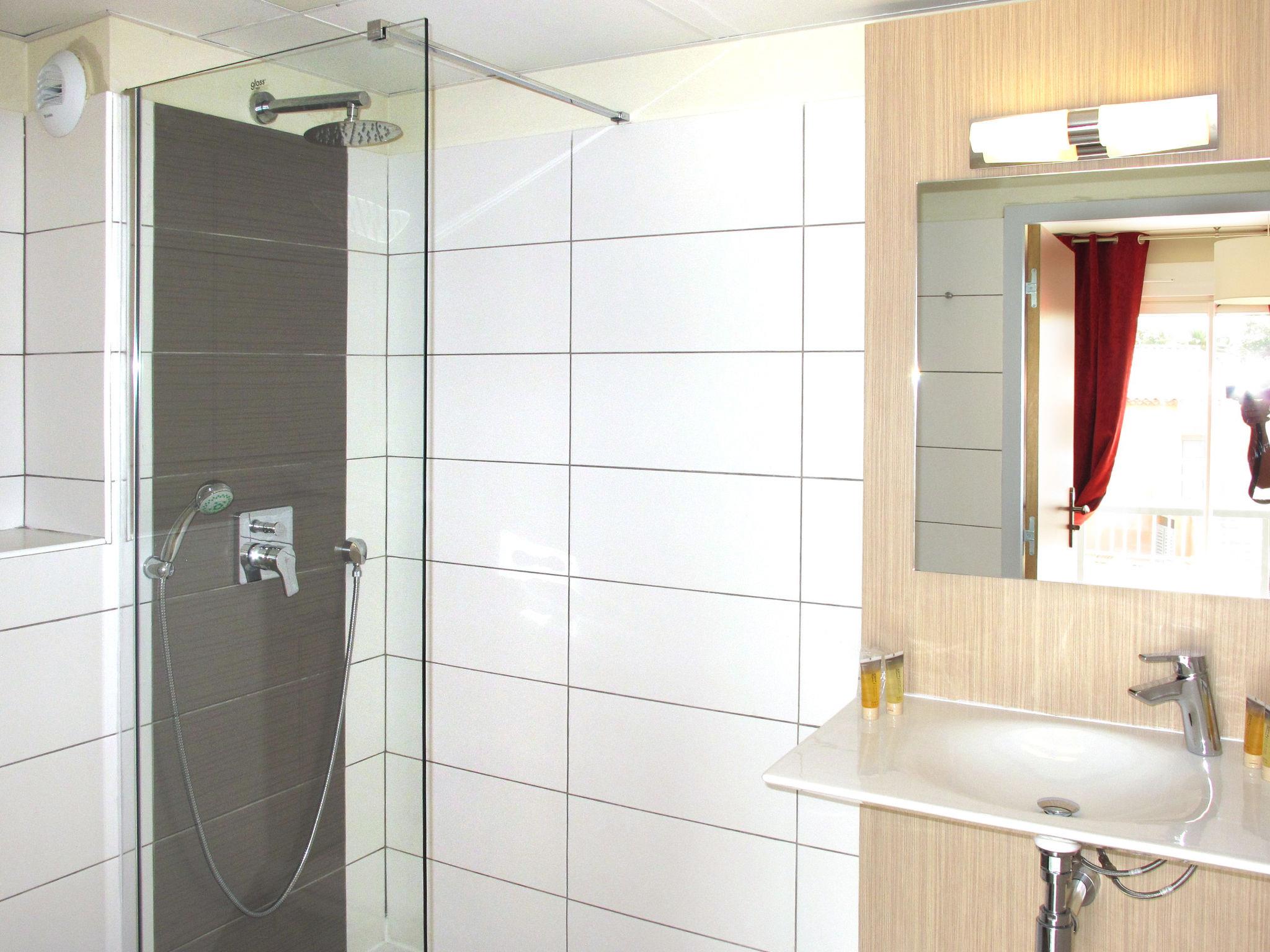 Beautiful aparthotel "Sowell Les Perles de Saint Tropez", 2 storeys, built in 2015. 6 houses in the residence. 45 apartments in the residence. 1.7 km from the centre of Port Grimaud, 8.5 km from the centre of Saint Tropez, 7 km from the centre of Grimaud, in the district Les Parcs de Grimaud, in the residential district, 300 m from the sea. For shared use: property 40'000 m2 (fenced), park with lawn and plants, swimming pool fenced (20 x 10 m, seasonal availability: 01.Apr. - 31.Oct.). Unconventional pool shape. Outdoor shower, tennis (2 x hard court) (extra). In the complex: reception, restaurant. Breakfast and half board on request (extra). Storeroom available. Parking (limited number of spaces). Shop 1.7 km, bus stop 200 m, sandy beach 300 m. Golf course (18 hole) 3 km. Please note: baby equipment on request (included). Residence with electric gates. Main road 50 m from the property. The photograph shows a typical example. The holiday properties may differ in living space, floorplan, equipment and furnishing.