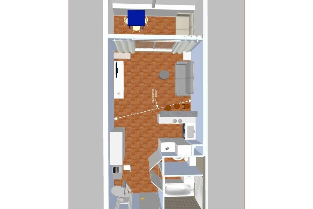 Das 2-geschossige Dachhaus befindet sich im 3./4. Geschoss (Lift vorhanden) eines Lagunenhauses am Place François Spoerry, direkt am Hafenbecken. Das 3. Geschoss ist per Rollstuhl begehbar. Die 1 1/2 Zimmer-Ferienwohnung besteht aus Eingangsvorplatz, Badezimmer mit Wanne/Dusche, separatem WC-Raum, offene Küche mit Bar (NESPRESSO-Maschine), Wohnraum mit Sitzgruppe, Glasboden-Schlafgalerie mit Doppelbett und Schränken. TV/DVD/Radio-CD-Kombi, Von der sehr gut geschützten Terrasse haben Sie eine einmalige Aussicht über Hafen und Dächer der Lagunenstadt. Der reservierte Parkplatz befindet sich im Areal und ist durch Wärter und funkbediente Barrieren geschützt.