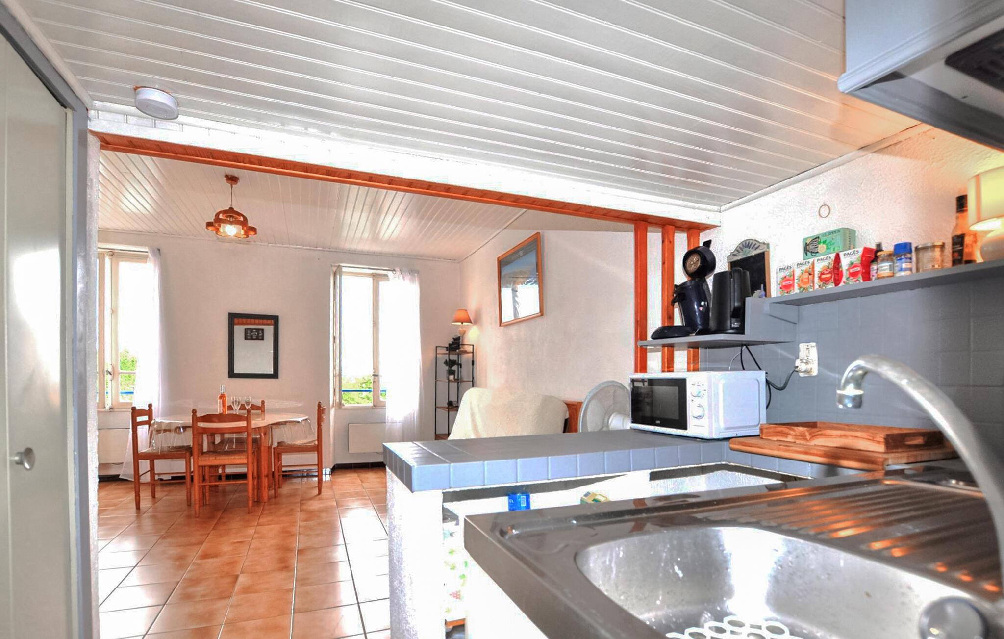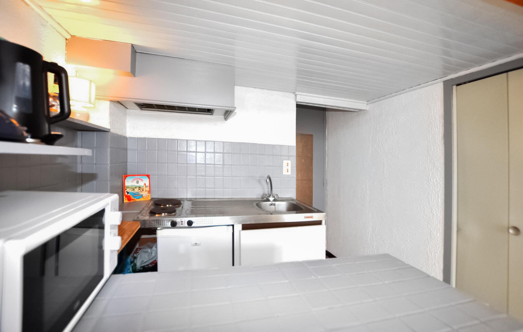 Nyd et afslappende ophold i denne funktionelle ferielejlighed, som passer perfekt til par eller små familier, der søger praktisk indkvartering på en central beliggenhed. Find jer til rette i den lyse opholdsstue med en sovesofa. Lejligheden er enkelt, men omhyggeligt møbleret og tilbyder alt, hvad I behøver til afslappende aftener. Brug tv'et til en filmaften eller find sammen omkring spisebordet til fælles måltider. Et lille køkken er åbent integreret, og en træstige fører op til hemsen med ekstra plads til afslapning. Åbn vinduerne om morgenen, lad den friske havluft komme ind, og føl forventningen til den kommende dag.