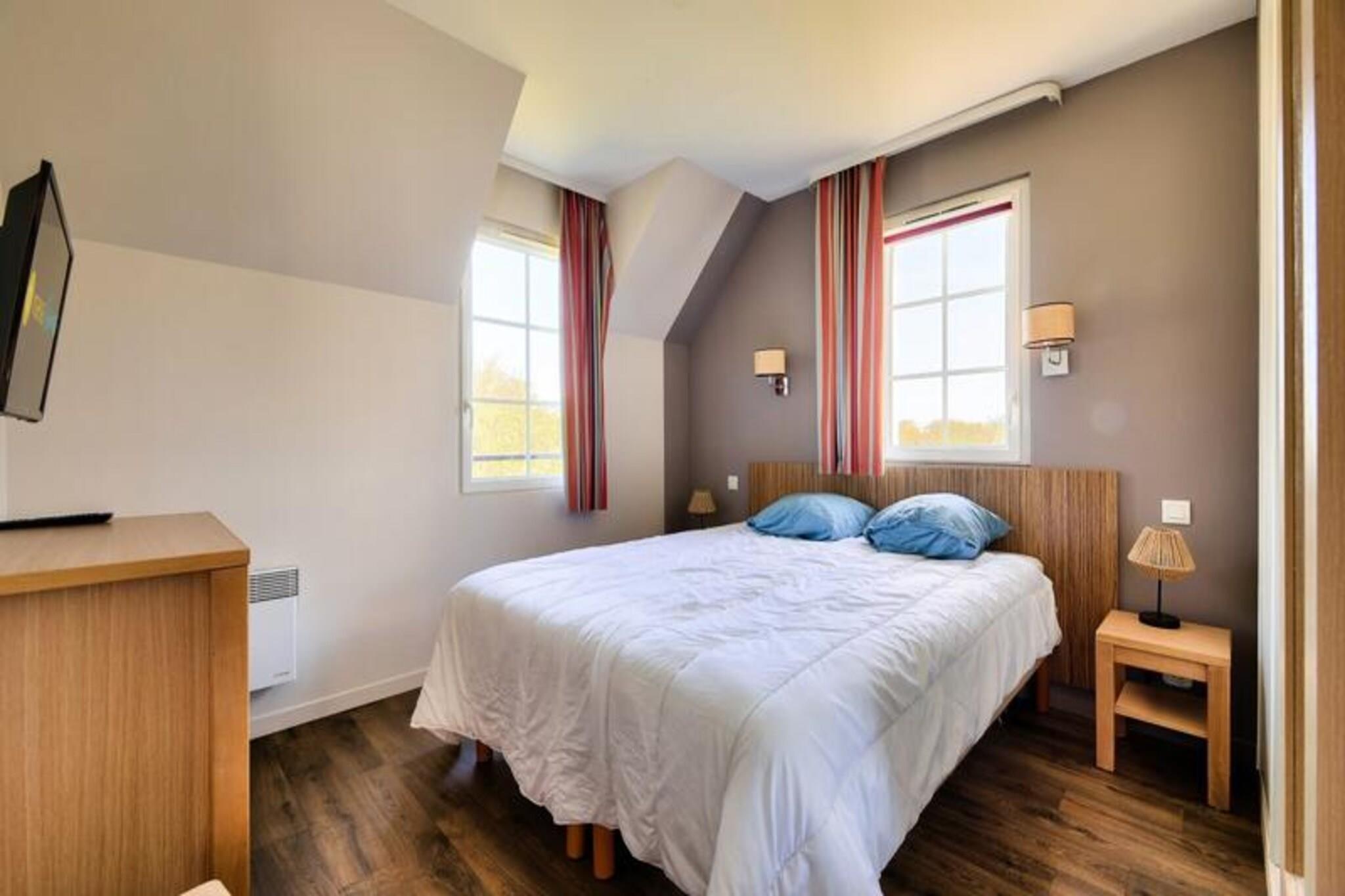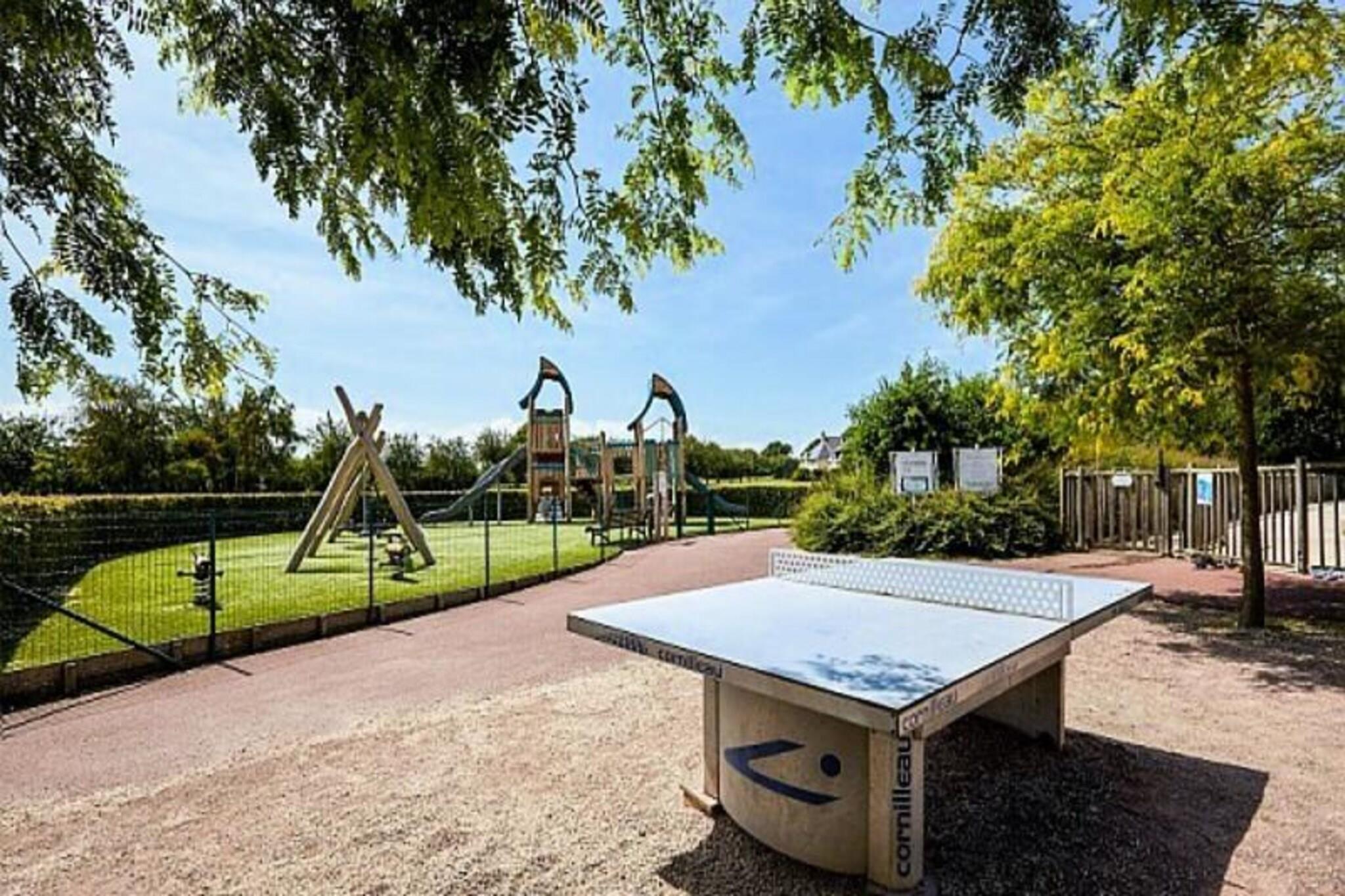 Dette rummelige feriehus tilbyder et behageligt ophold for op til seks g?ster, hvilket g?r det ideelt for familier eller grupper. Det har en hyggelig stue med en standard sofa, en pejs og en spiseplads. Ejendommen indeholder tre velindrettede sovev?relser og to badev?relser samt separat toilet. En privat terrasse og have, begge mod sydvest, giver en smuk udsigt over den omkringliggende golfbane. K?ledyr er tilladt, hvilket g?r det til et perfekt valg for k?ledyrsejere, der s?ger en fredelig ferie. Beliggende kun 4 km fra centrum af Port-en-Bessin, er dette feriehus ideelt placeret for at udforske Normandiets historiske vartegn. De ber?mte D-Day-strande er kun en kort k?retur v?k, og tilbyder en unik mulighed for at l?re om regionens rige krigshistorie. I n?rheden kan du nyde charmen ved lokale caf?er, restauranter og markeder, alle inden for 500 meter, hvilket giver en chance for at opleve det bedste af Normandiets k?kken og kultur. Indkvarteringen er fuldt udstyret med et k?kken til at tilberede m?ltider, et velholdt badev?relse og moderne bekvemmeligheder overalt. G?sterne vil s?tte pris p? den indend?rs opvarmede pool, b?rnepool, sauna og udend?rs legeomr?der. Yderligere faciliteter omfatter volleyball- og petanquebaner, der sikrer underholdning for alle aldre. Med en privat parkeringsplads tilbyder dette feriehus en perfekt blanding af komfort og bekvemmelighed til et afslappende ophold.