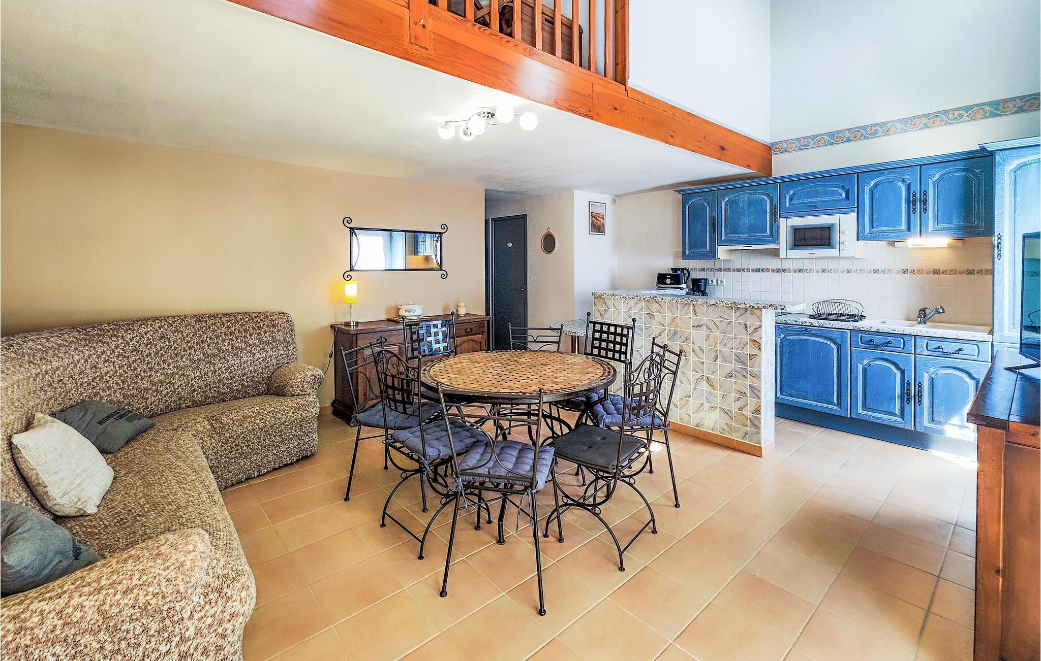 Stuen er enkelt og komfortabelt indrettet, så huset er en skøn base til en ubekymret ferie. Haven er en god ramme om dagens måltider, især om morgenen, hvor I kan byde dagens første solstråler velkommen, ligesom her er dejligt på de lune sommeraftener. Der er også en fælles udendørspool, hvor I kan køle ned til enhver tid.