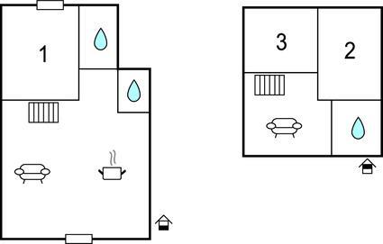 Badeværelse 6m2 (nr. 2) - WC. Varmt og koldt vand. Bruser