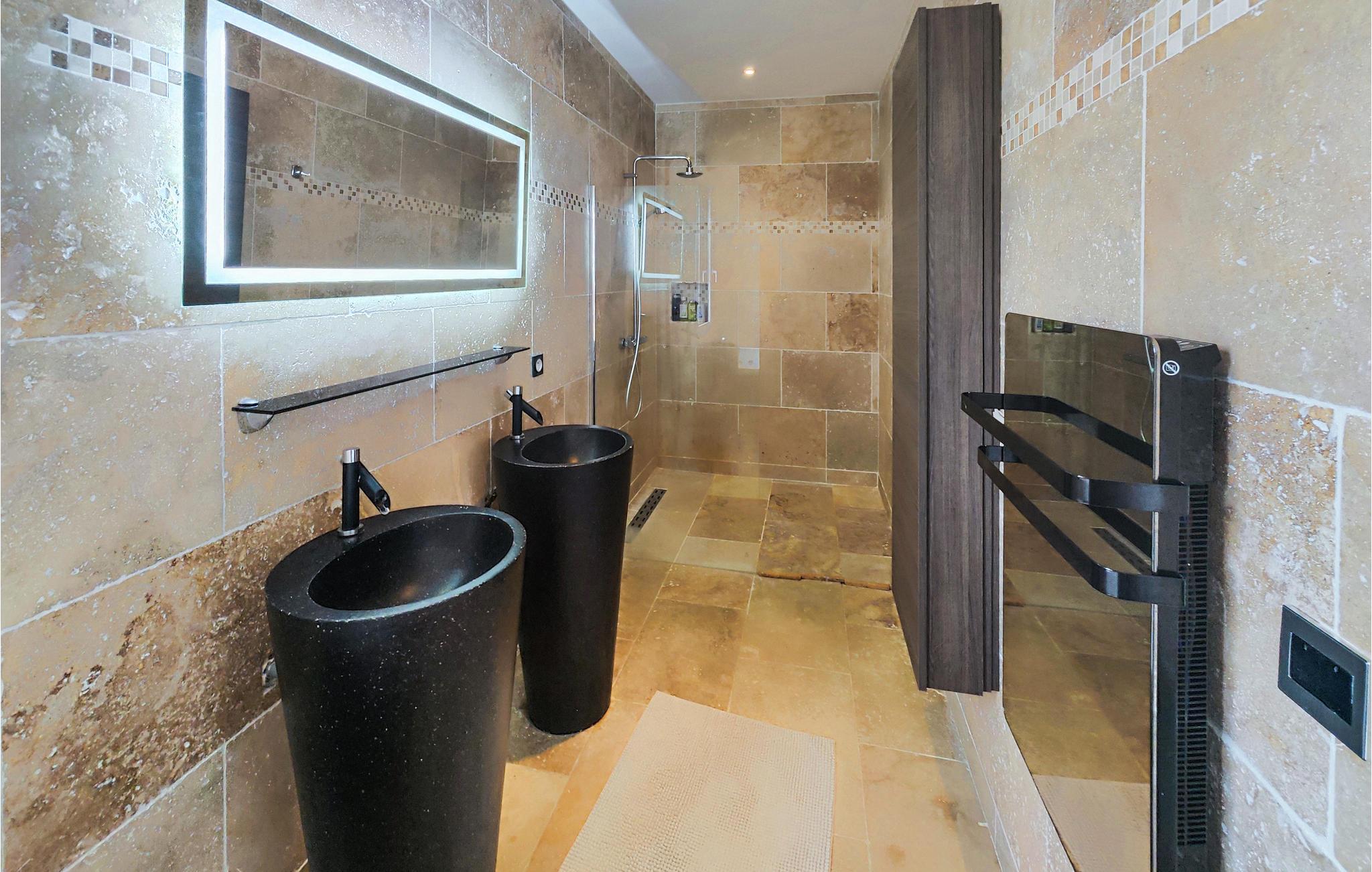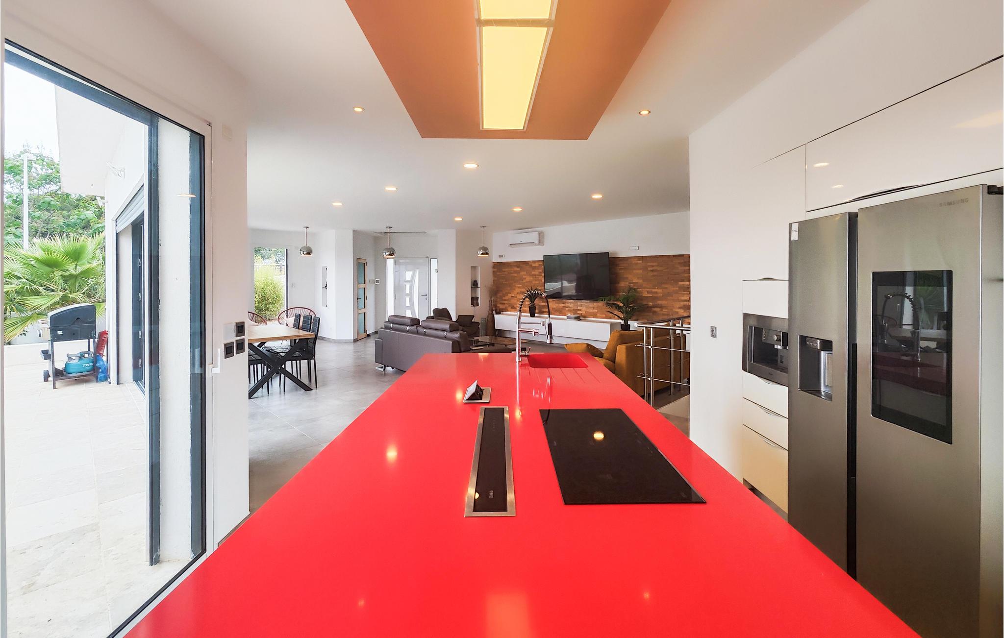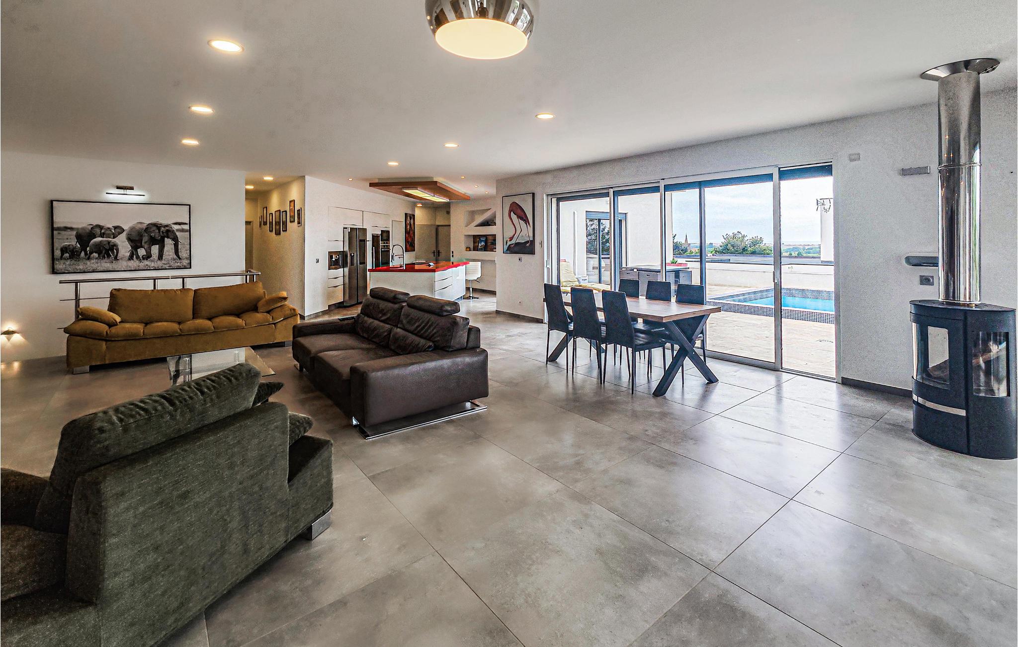 Kom med jeres udvidede familie eller en familie af venner i dette skønne og moderne feriehus, som byder jer velkommen med komfort og lyse værelser. Glæd jer til indretningens design og høje kvalitet, som gør det nemt for jer at slappe af, lege sammen eller svinge træskeerne i køkkenet. Til jeres personlige afslapning er der spabad i huset og samtidig finder I en pool på den store terrasse, der kan forfriske hele familien. På den store terrasse kan I ikke kun nyde måltiderne sammen i det fri, men også udsigten over landskabet.