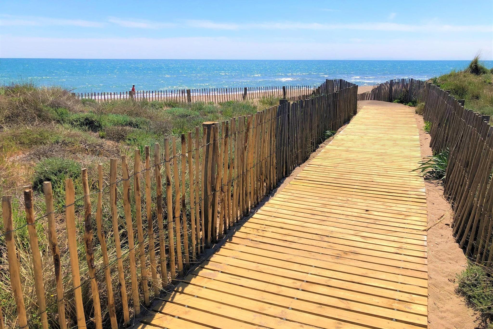 Lad dine stressfyldte tasker stå ved døren og byt dem ud med badetøj og sandaler - på Domaine Les Tamaris & Portes du Soleil, hvor livet skifter gear blidt og tager dig med på en rejse fyldt med fred og fornøjelse. Kun en kort gåtur fra stranden og havet er denne ferielandsby designet, så du kan glemme pendling, besvær eller planlægning og kun fokusere på sandblæst tøj, latter og sjove øjeblikke. Indkvarteringen foregår i praktiske, selvstændige huse på to etager - en luftig stue med en sovesofa, der kan rumme 2 personer om natten, og et spisebord, et køkken klar til fælles madlavning, en balkon til drinks ved solnedgang og et komplet badeværelse med det nødvendige i stueetagen. Første sal har tre soveværelser med et komplet fælles badeværelse. Det ene soveværelse er møbleret med en dobbeltseng og har en privat balkon; det andet soveværelse har to enkeltsenge, og det tredje har en enkeltseng. Hele ejendommen har aircondition, Wi-Fi og gratis parkering på stedet. Resortet tilføjer masser af sjov med to udendørs pools - den ene med en vandrutsjebane til en underholdende havoplevelse og den anden med et spabadområde til et roligt og uforstyrret varmt bad, sportsbaner til bordtennis og petanque, liggestole i skyggen af palmer og en bar, når du vil have cocktails uden at forlade området. For grupper eller par, der rejser sammen - er det et enkelt og nemt ophold at bo. Hvis du ønsker strandtid, venter Middelhavet kun få minutter væk - blødt sand, brusende bølger, picnic ved stranden og en afslappet brise. Aftenplaner kan være spontane med en gåtur langs kysten, middag ved havet eller drinks sent om aftenen under stjernerne. Ingen dikkedarer, intet besvær - bare sol, vand og samvær. En ferie gjort let.