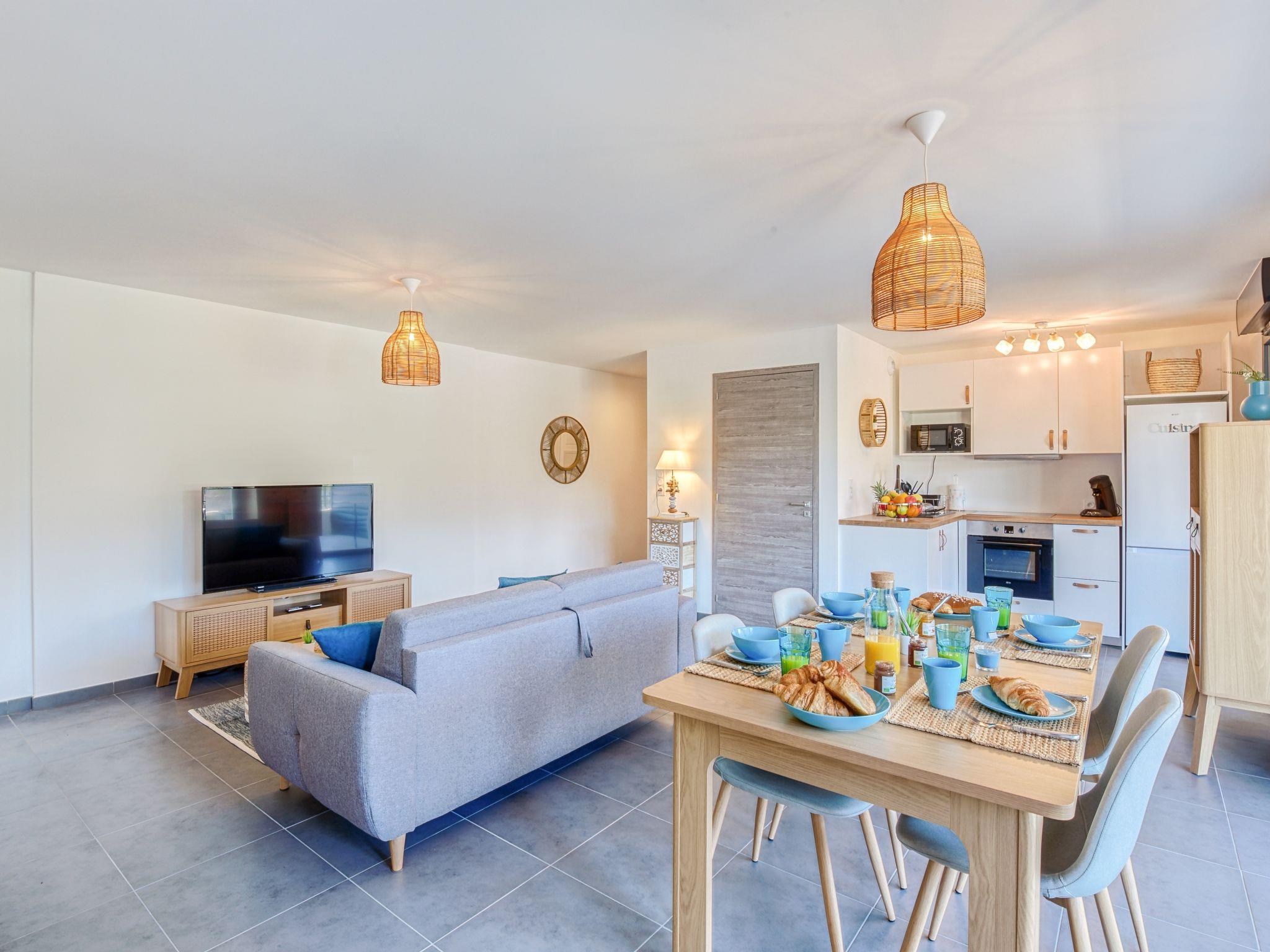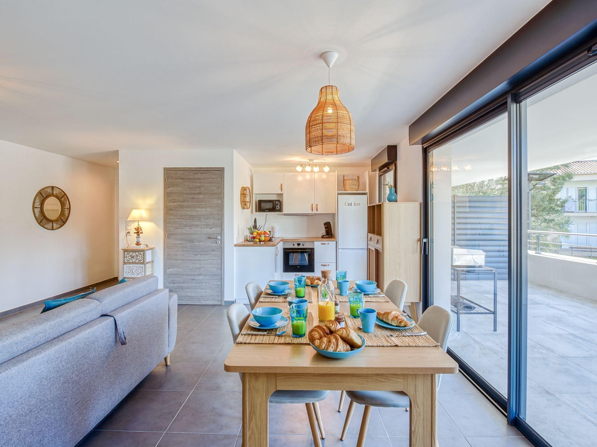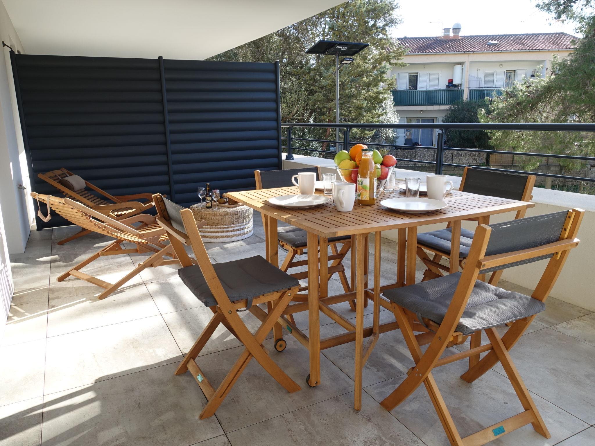 2-room apartment 51 m2 on 1st floor. Very beautiful and modern furnishings: living/dining room with 1 double sofabed (140 cm, length 190 cm), TV (flat screen). Exit to the terrace. 1 room with 1 french bed (140 cm, length 190 cm). Exit to the terrace. Open kitchen (oven, 4 ceramic glass hob hotplates, toaster, kettle, microwave, freezer, electric coffee machine). Exit to the terrace. Shower/WC. Electric heating, air-conditioning. Terrace 21 m2. Terrace furniture, deck chairs (2). Facilities: washing machine. Internet (WiFi, extra). Parking. Please note: non-smokers only. Smoke alarm. 2A247001463D5