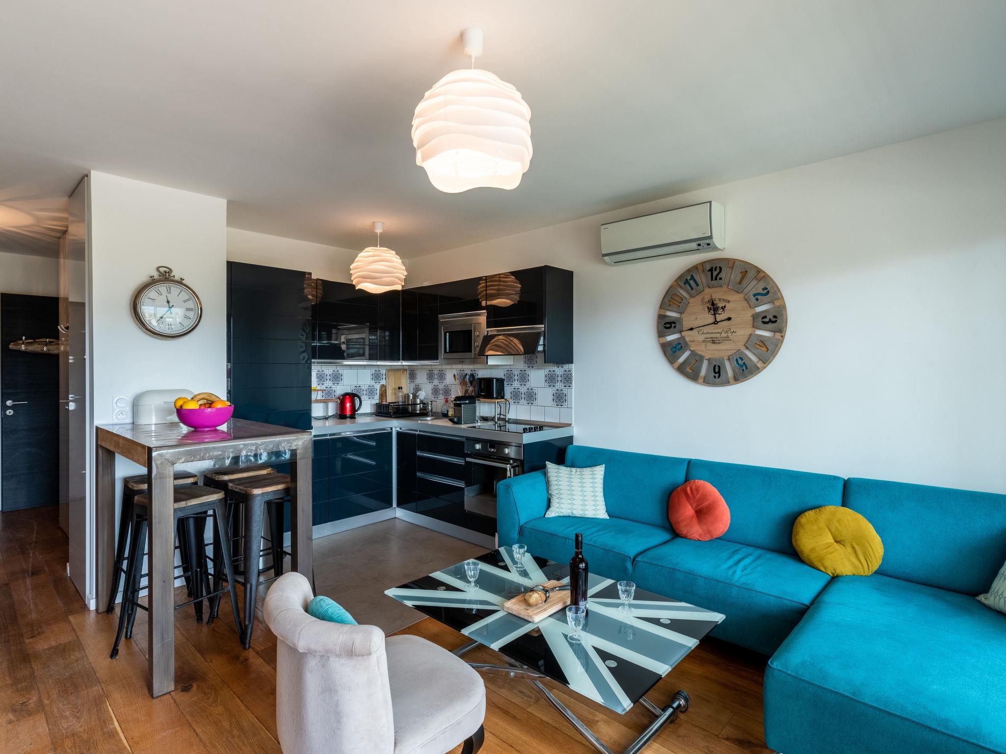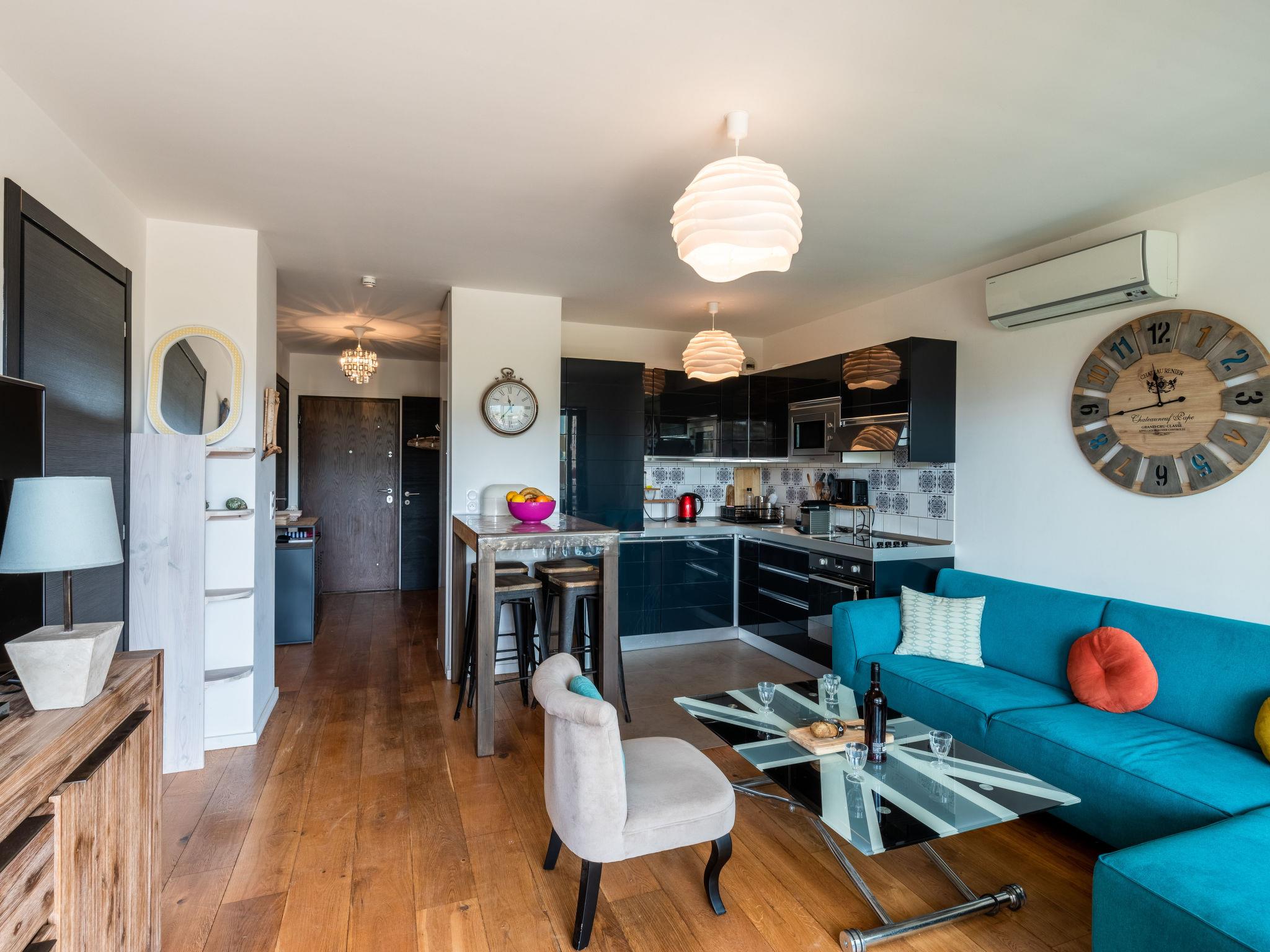 "Résidence Cita Di Sali 12", 3-room apartment 57 m2 on 1st floor. Comfortable and cosy furnishings: living/dining room. Exit to the terrace. 1 room with 1 french bed (160 cm, length 190 cm), flat screen. 1 room with 2 beds (90 cm, length 190 cm). Open kitchen (oven, dishwasher, 4 induction hot plates, toaster, kettle, microwave, freezer, electric coffee machine). Shower/WC. Electric heating, air-conditioning. Terrace 13 m2. Terrace furniture. Facilities: washing machine, iron, hair dryer. Internet (WiFi, free). Garage (1 car). Please note: non-smokers only. Smoke alarm. Offer by a private individual according to Art. 155, IV of CGI.