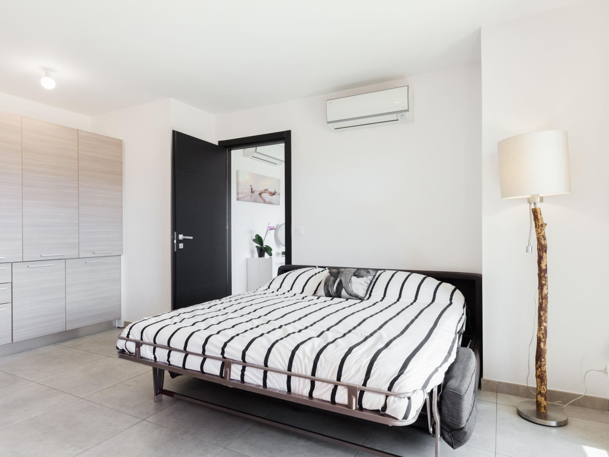2-room apartment 41 m2 on 2nd floor. Comfortable and cosy furnishings: entrance hall. Living/dining room with TV (flat screen). Exit to the terrace. 1 room with 1 french bed (140 cm, length 200 cm). Exit to the terrace. Kitchenette (2 hot plates, dishwasher, electric coffee machine, combination microwave). Shower/WC. Electric heating, air-conditioning. Terrace 20 m2, east facing position. Terrace furniture. Facilities: washing machine. Internet (WiFi, free). Please note: non-smokers only. Smoke alarm. Offer by a private individual according to Art. 155, IV of CGI. 2A24700140499