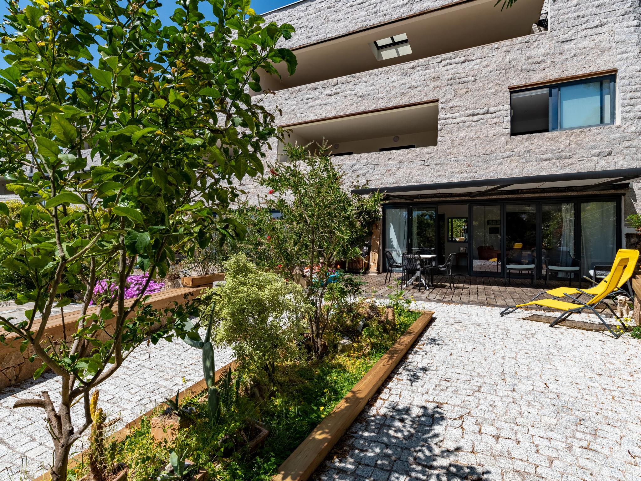 The Palazzu is composed of two buildings: the Bastion (lower part) and the Castle (upper part). Residence "Le Palazzu", built in 2016. 48 apartments in the residence. On the outskirts Porto-Vecchio, in an elevated position on a slope, 1 km from the sea, 10 km from the beach. For shared use: swimming pool (20 x 8 m, depth 160 cm, seasonal availability: 01.May. - 31.Oct.). Pool maintenance by the owner/gardener. In the complex: air conditioning. Steep motor access (via unmade road). Parking. Shop 1 km, grocery 400 m, supermarket 2.5 km, restaurant 400 m, bus stop 230 m, sandy beach 8 km. Marina 1 km, golf course (9 hole) 6 km, tennis 2 km, riding stable 3 km. Nearby attractions: Figari 21 km, Bonifacio 25 km, Solenzara 40 km, Iles Lavezzi. Hiking paths: L'Ospedale, Réserve Naturelle de Bonifacio. Please note: car recommended. Residence with electric gates.