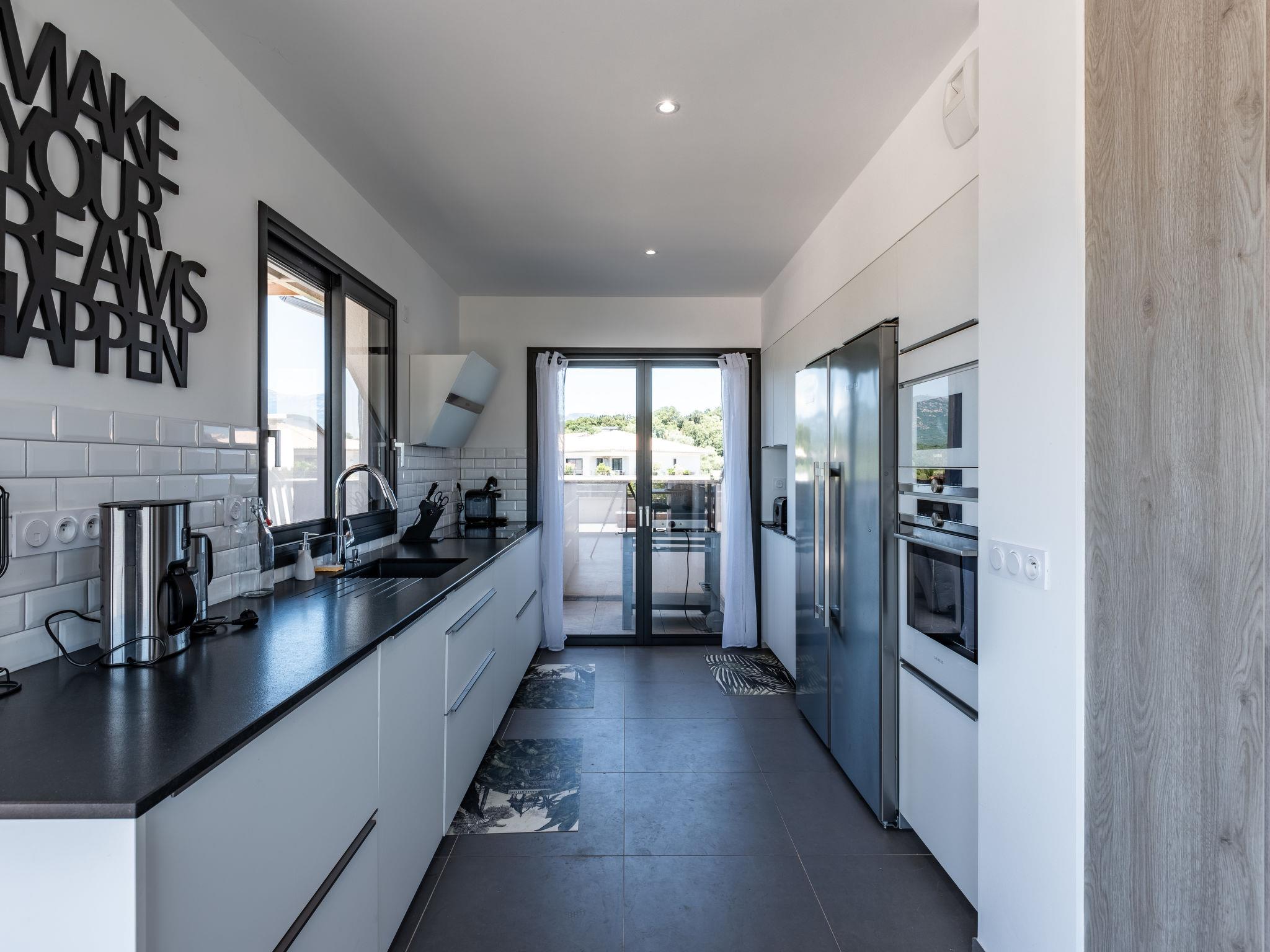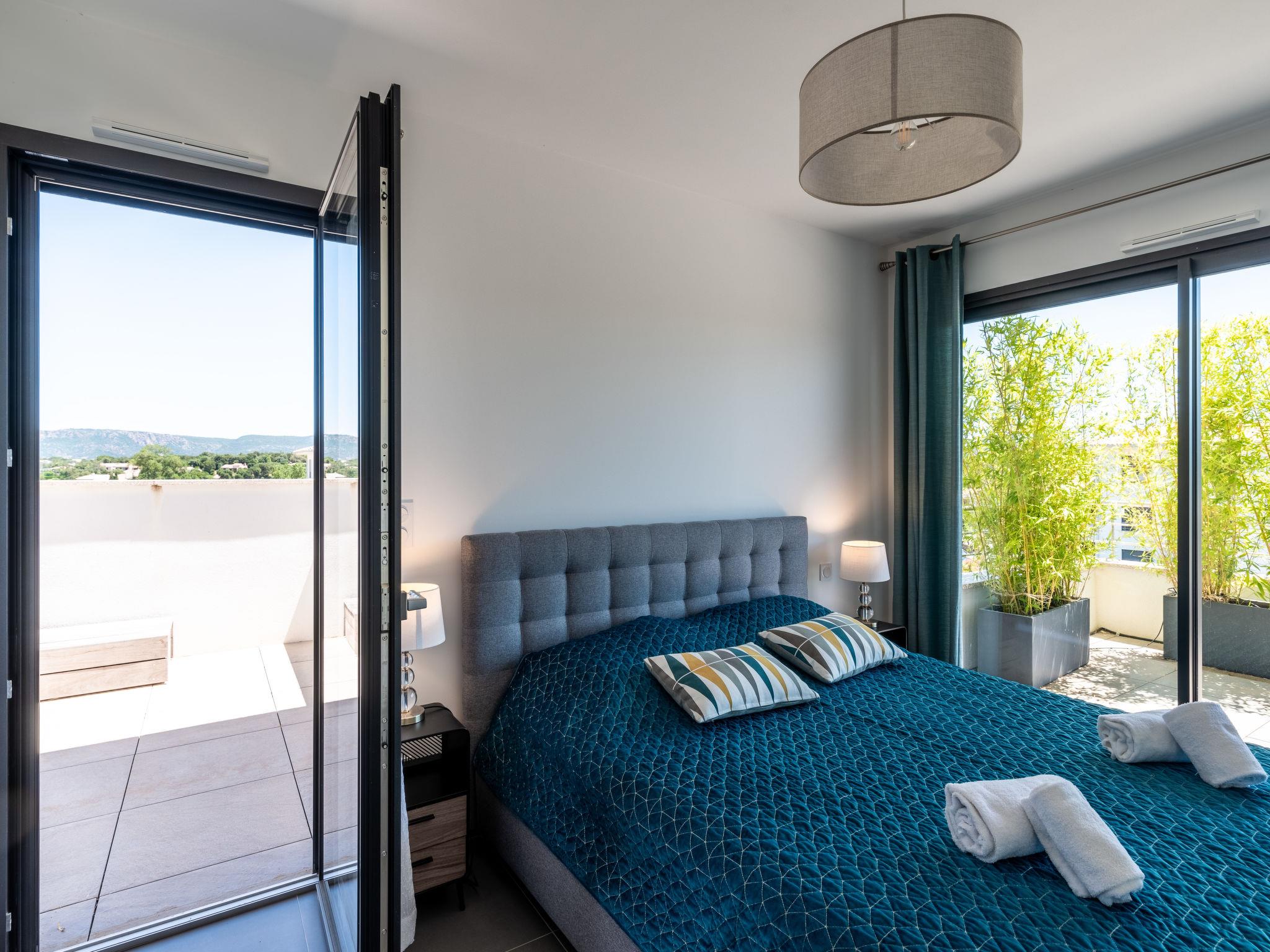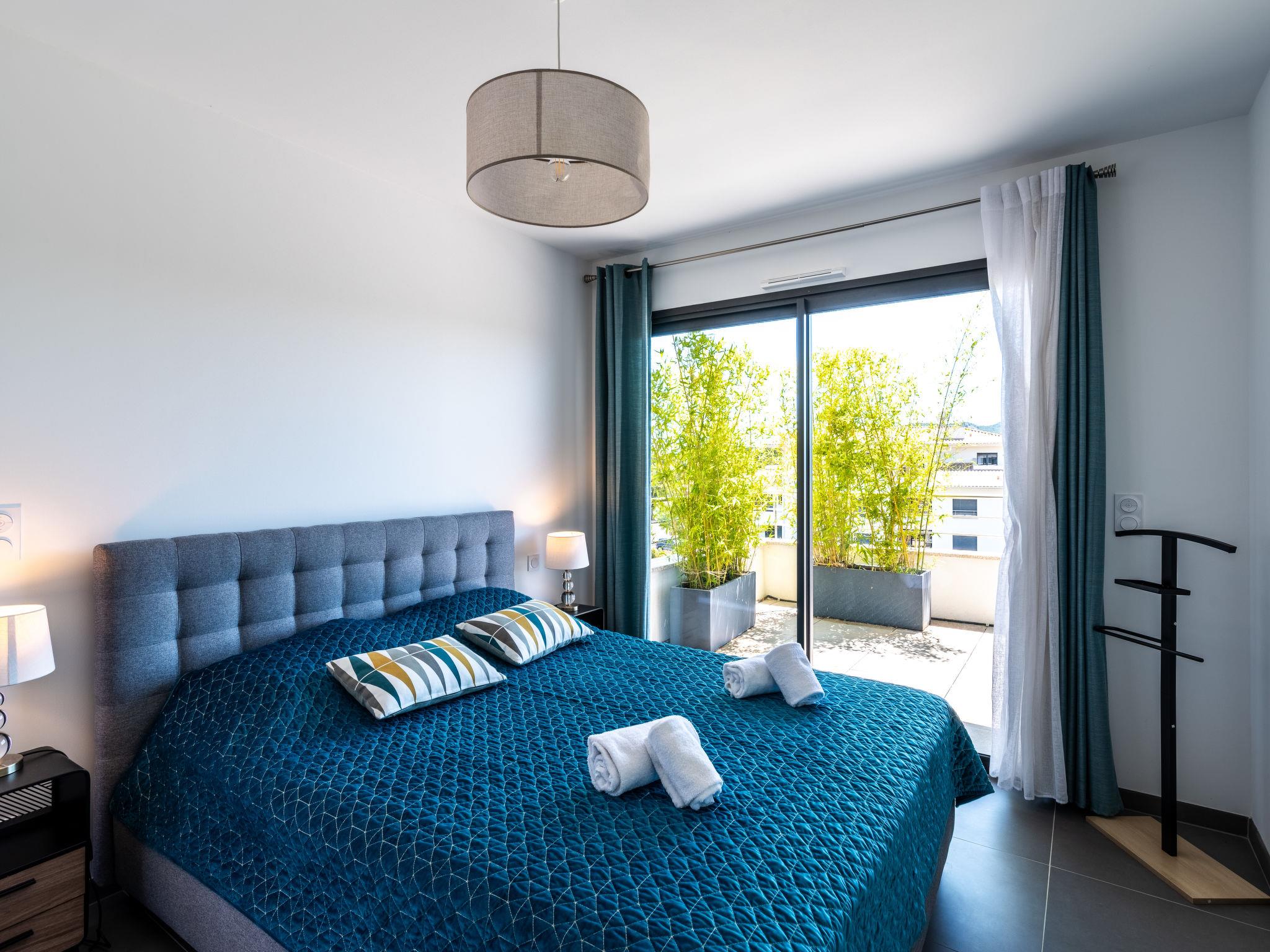 5-room apartment 137 m2 on 3rd floor. Very beautiful and modern furnishings: living/dining room with TV (flat screen). Exit to the terrace. 1 room with 1 french bed (160 cm, length 200 cm), shower. Exit to the terrace. 1 room with 1 french bed (160 cm, length 200 cm), shower/WC. Exit to the terrace. 1 room with 2 beds (90 cm, length 190 cm). 1 room with 2 beds (90 cm, length 200 cm). Open kitchen (oven, dishwasher, 3 induction hot plates, toaster, kettle, microwave, freezer, electric coffee machine, Capsules for coffee machine (Tassimo)). Exit to the terrace. Shower, sep. WC. Electric heating, air-conditioning. Large terrace 120 m2. Deck chairs (2). Beautiful view of the mountains. Facilities: washing machine, dryer, iron. Internet (WiFi, free). Parking space n 731 at the house. Please note: non-smokers only. Smoke alarm. Plancha. 2A2470013588E