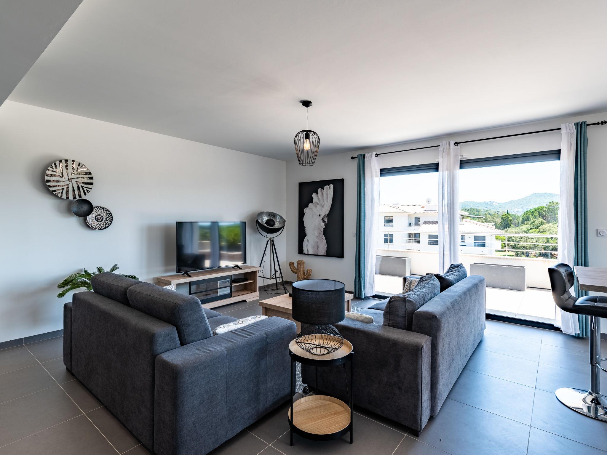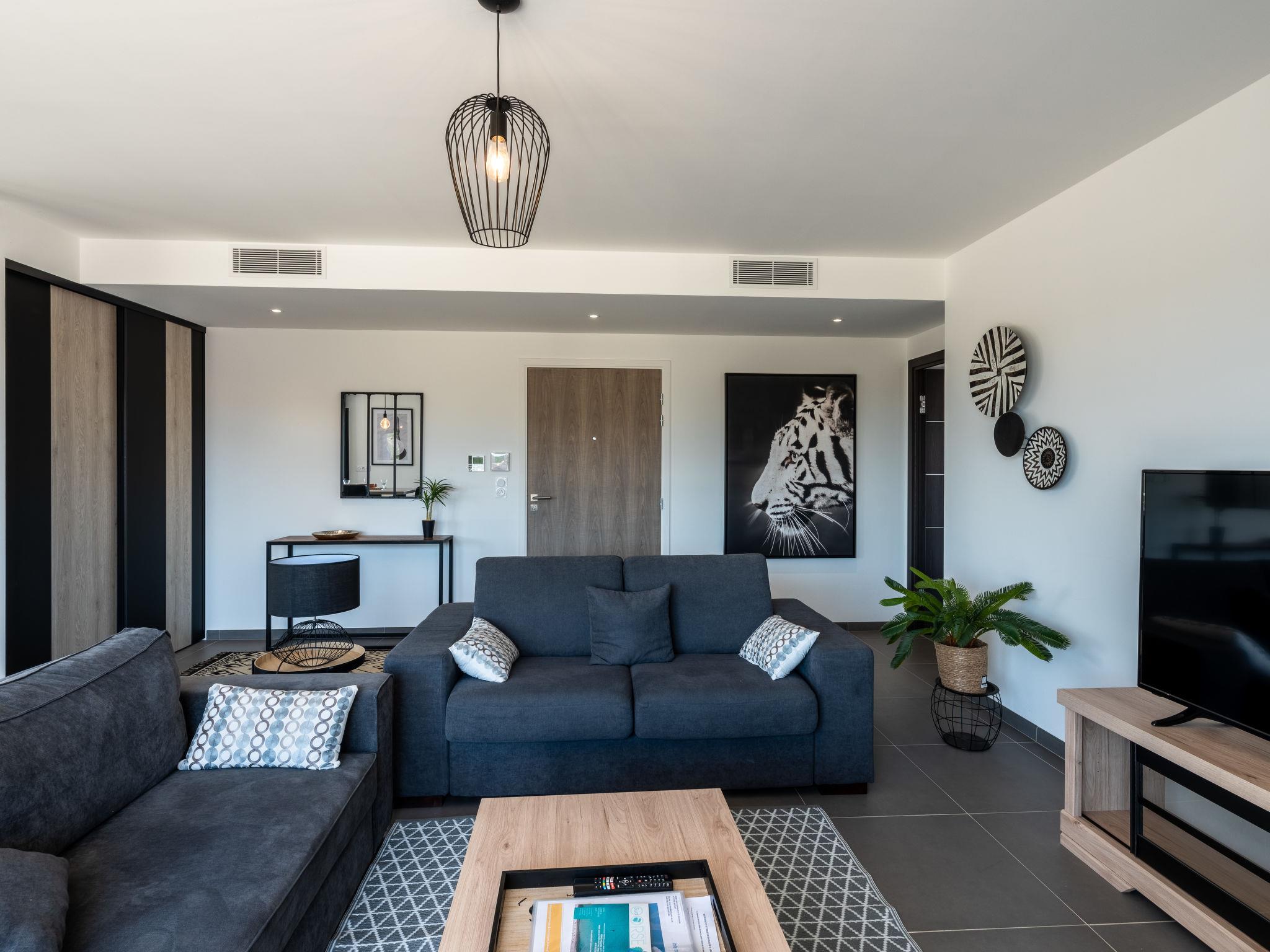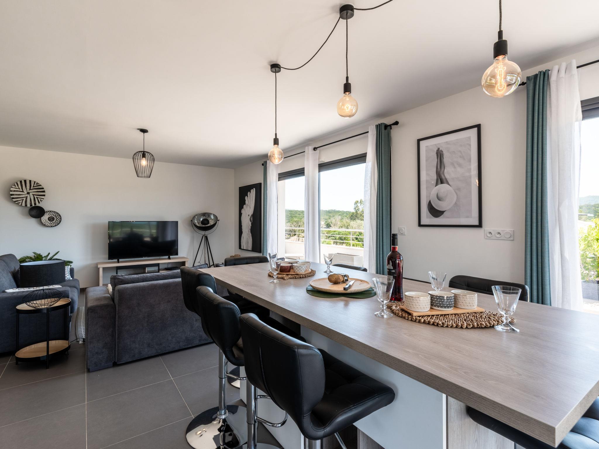 5-room apartment 137 m2 on 3rd floor. Very beautiful and modern furnishings: living/dining room with TV (flat screen). Exit to the terrace. 1 room with 1 french bed (160 cm, length 200 cm), shower. Exit to the terrace. 1 room with 1 french bed (160 cm, length 200 cm), shower/WC. Exit to the terrace. 1 room with 2 beds (90 cm, length 190 cm). 1 room with 2 beds (90 cm, length 200 cm). Open kitchen (oven, dishwasher, 3 induction hot plates, toaster, kettle, microwave, freezer, electric coffee machine, Capsules for coffee machine (Tassimo)). Exit to the terrace. Shower, sep. WC. Electric heating, air-conditioning. Large terrace 120 m2. Deck chairs (2). Beautiful view of the mountains. Facilities: washing machine, dryer, iron. Internet (WiFi, free). Parking space n 731 at the house. Please note: non-smokers only. Smoke alarm. Plancha. 2A2470013588E