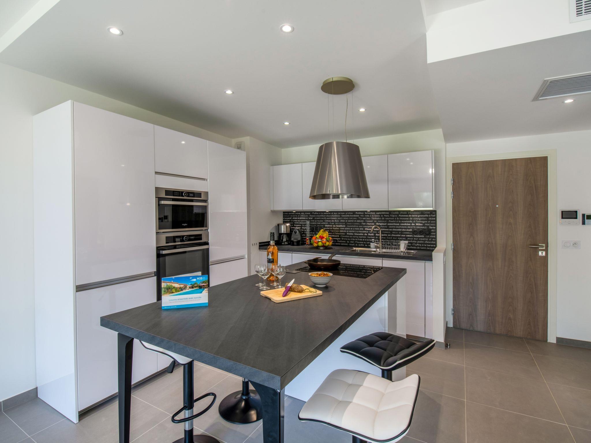 2-room apartment 55 m2, on the ground floor. Very beautiful and modern furnishings: living/dining room with 1 double sofabed (1 x 140 cm, length 200 cm), TV (flat screen). Exit to the terrace. 1 room with 2 beds (90 cm, length 190 cm). Open kitchen (oven, dishwasher, 3 induction hot plates, toaster, kettle, microwave, freezer, electric coffee machine). Exit to the terrace. Shower/WC. Electric heating, air-conditioning. Terrace 20 m2, garden 50 m2. Terrace furniture. Facilities: washing machine. Internet (WiFi, free). Parking space n 701 at the house. Please note: suitable for families. Non-smokers only. Smoke alarm. 2A247000512A2