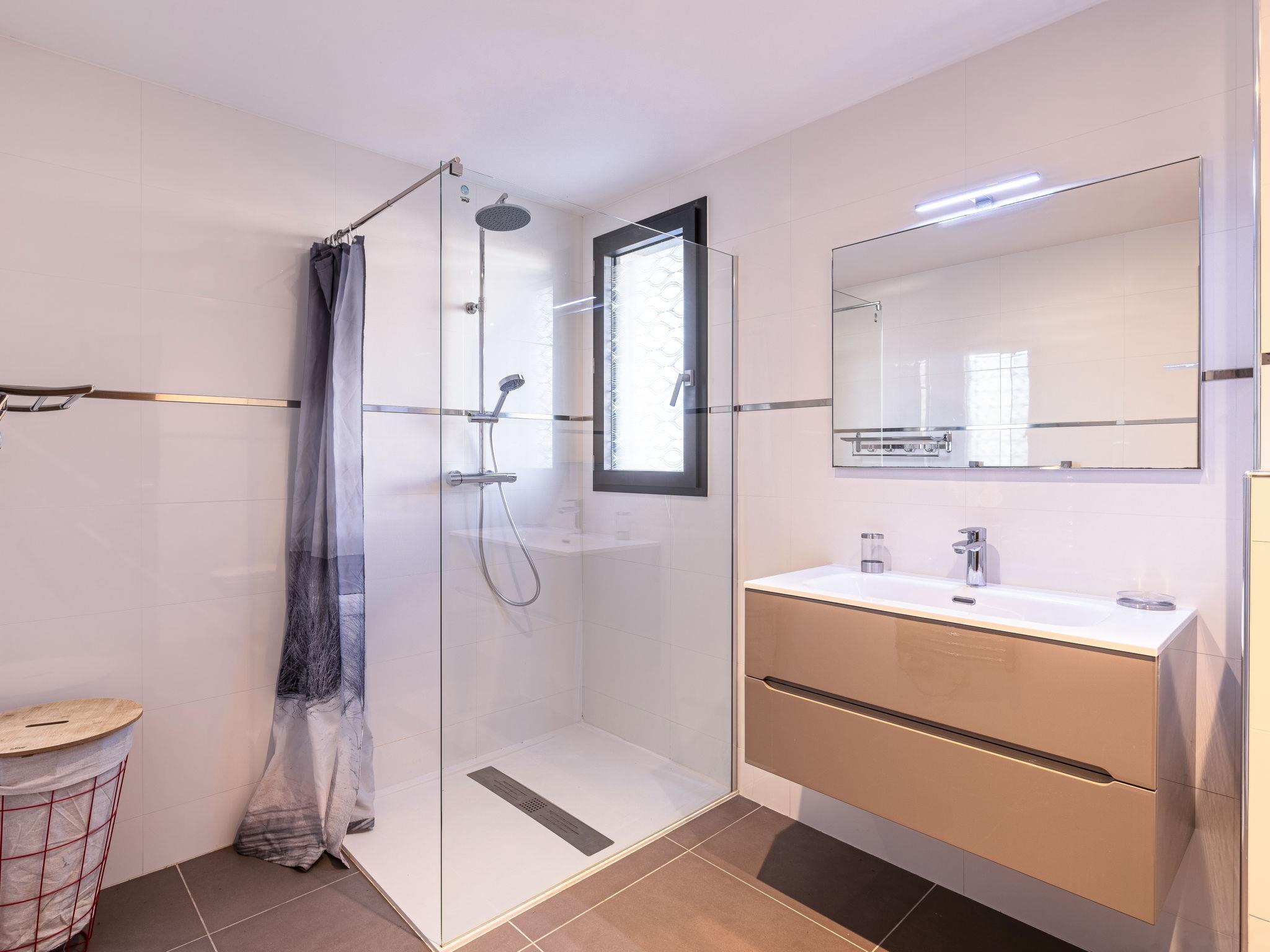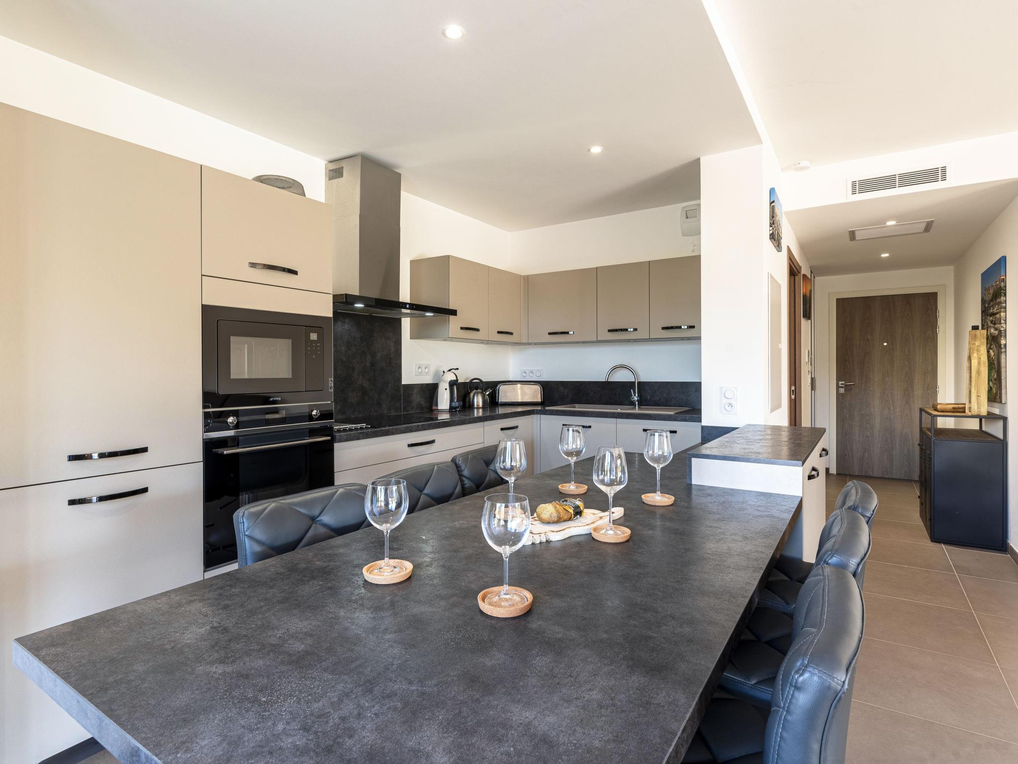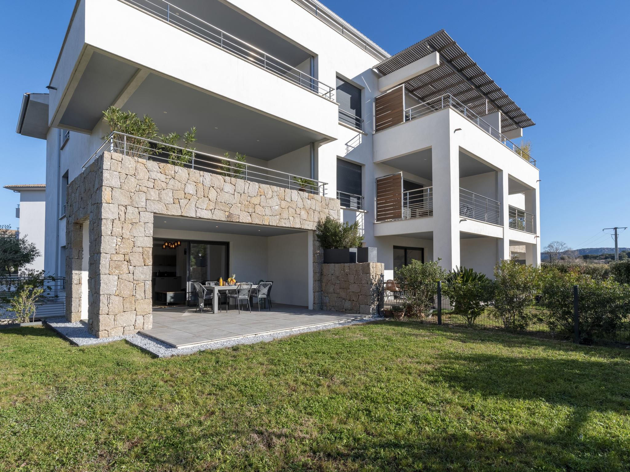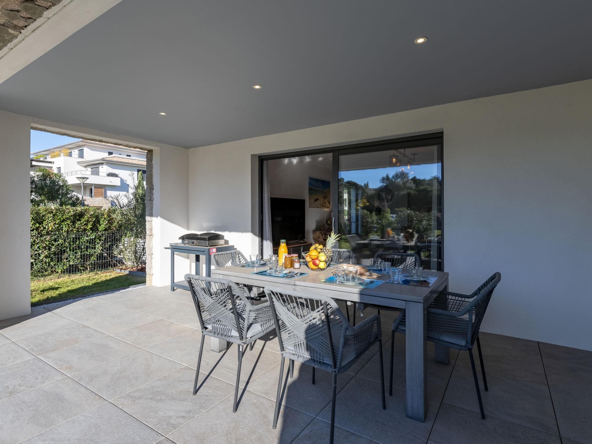 "Domaine d'Arca G1", 3-room apartment 86 m2, on the ground floor. Modern furnishings: living/dining room with panoramic window with 1 double sofabed (140 cm, length 190 cm), TV (flat screen). Exit to the garden, to the terrace. 1 room with 1 french bed (160 cm, length 200 cm). Exit to the terrace. 1 room with 1 french bed (160 cm, length 200 cm). Exit to the terrace. Open kitchen (oven, dishwasher, 1 induction hot plates, 4 gas rings, kettle, microwave, electric coffee machine). Bath/WC. Electric heating, air-conditioning. Terrace 40 m2, terrace 15 m2, garden. Terrace furniture, electric barbecue. View of the mountains. Facilities: washing machine. Internet (WiFi, free). Parking. Please note: smoke alarm. 2A247000120E2