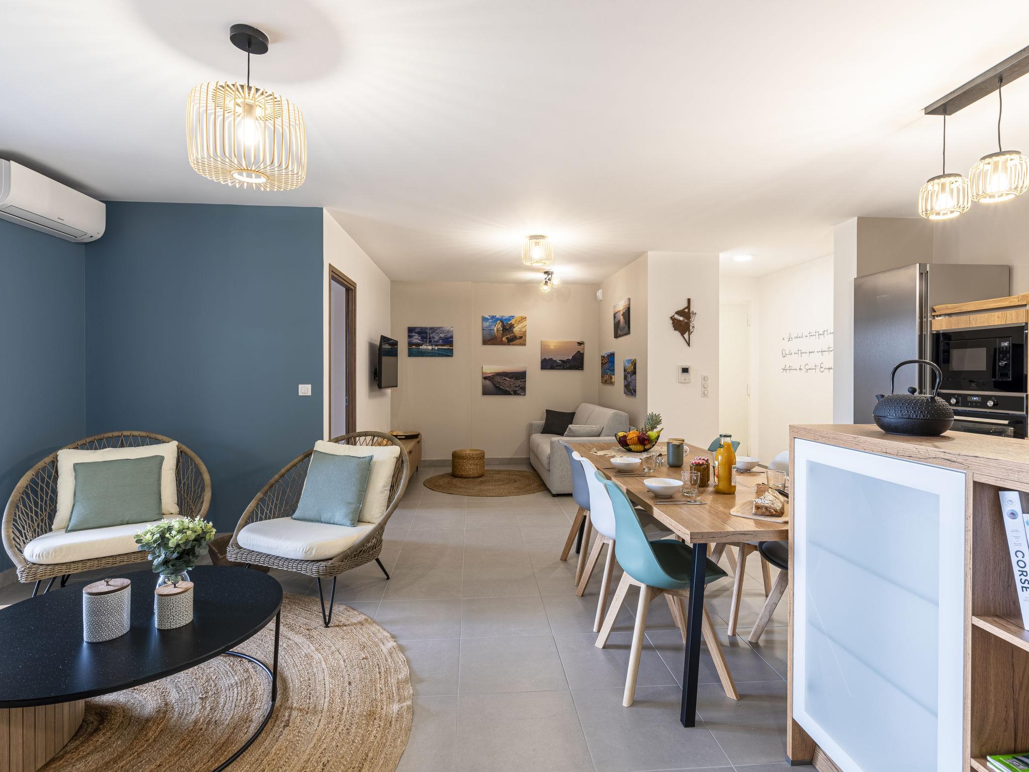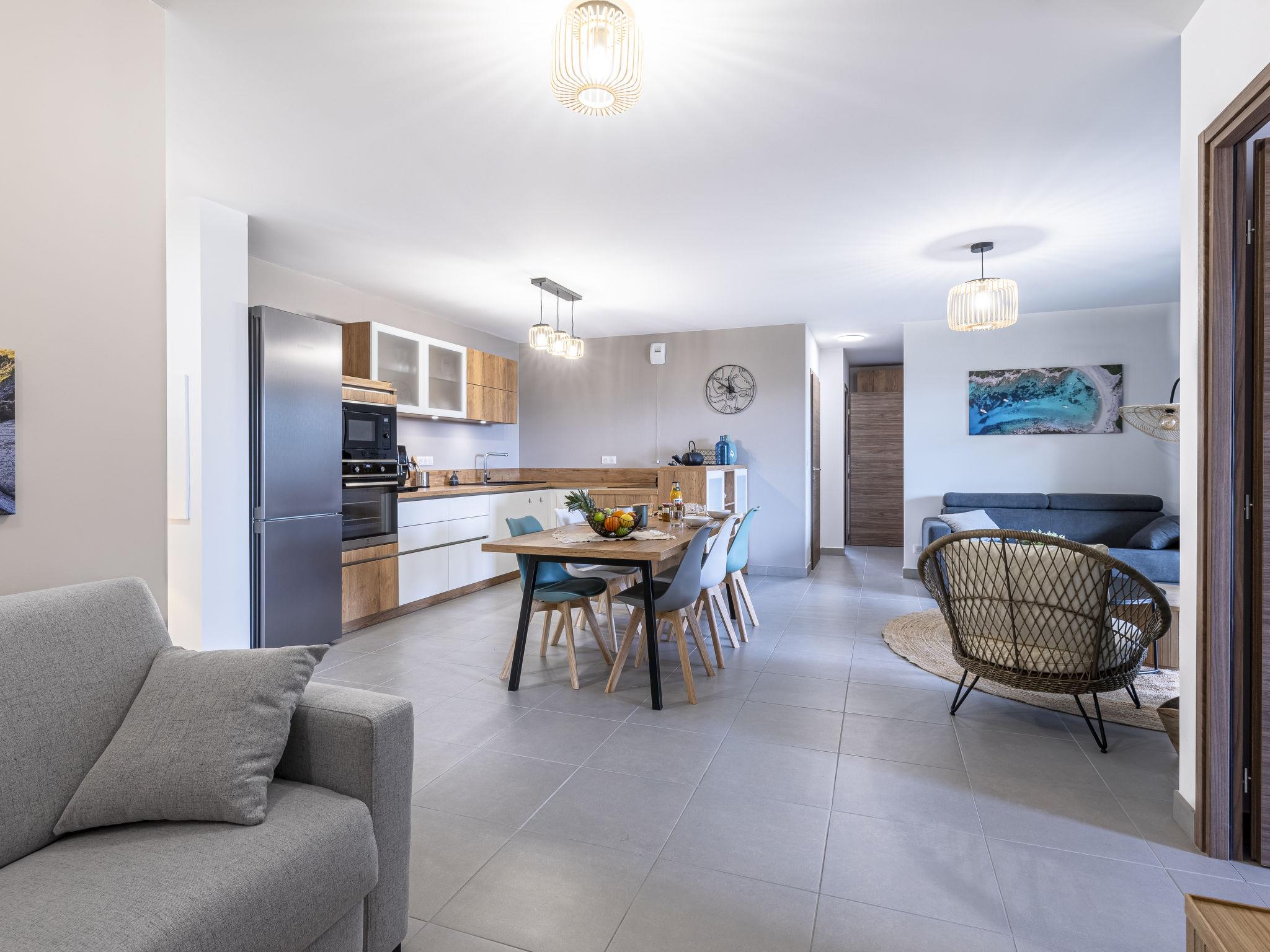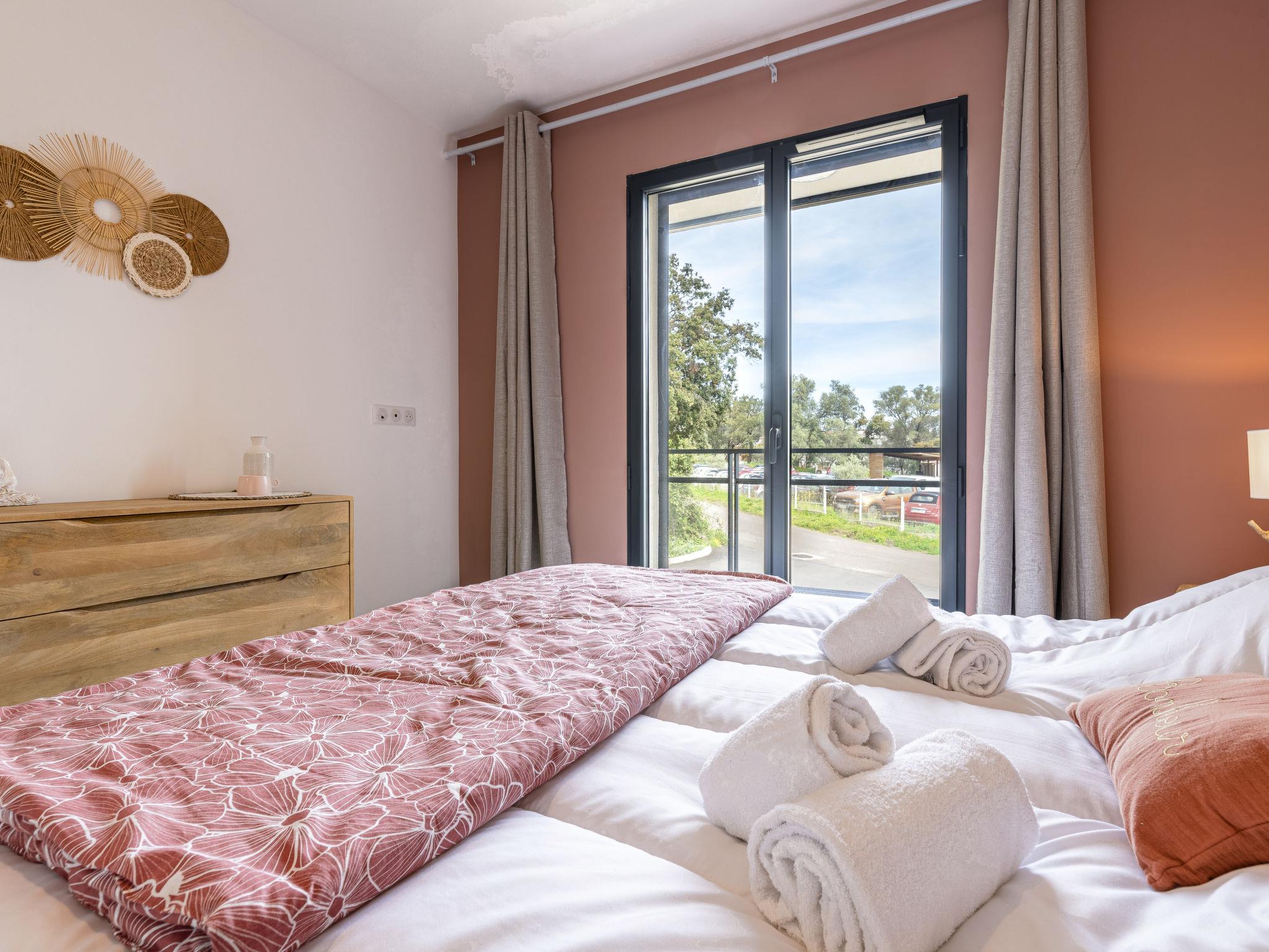 Residence "Vignola 2", built in 2024. In the centre of Porto-Vecchio, in a central, quiet position, 500 m from the sea, 3 km from the beach, north facing position. Private: terrace (16 m2), garden furniture, barbecue, parking. Grocery 100 m, supermarket, restaurant 400 m, bus stop "Citadina" 50 m. Sports harbour 400 m. Nearby attractions: Plage de Cala Verde 3 km, Plage de Santa Giulia 7 km, Plage de Palombaggia 10 km, Bonifacio 28 km. Well-known lakes can easily be reached: Lac de L'Ospedale 24 km. Hiking paths: Les Aiguilles de Bavella 49 km. Please note: car recommended. Object suitable for 4 adults + 1 child.