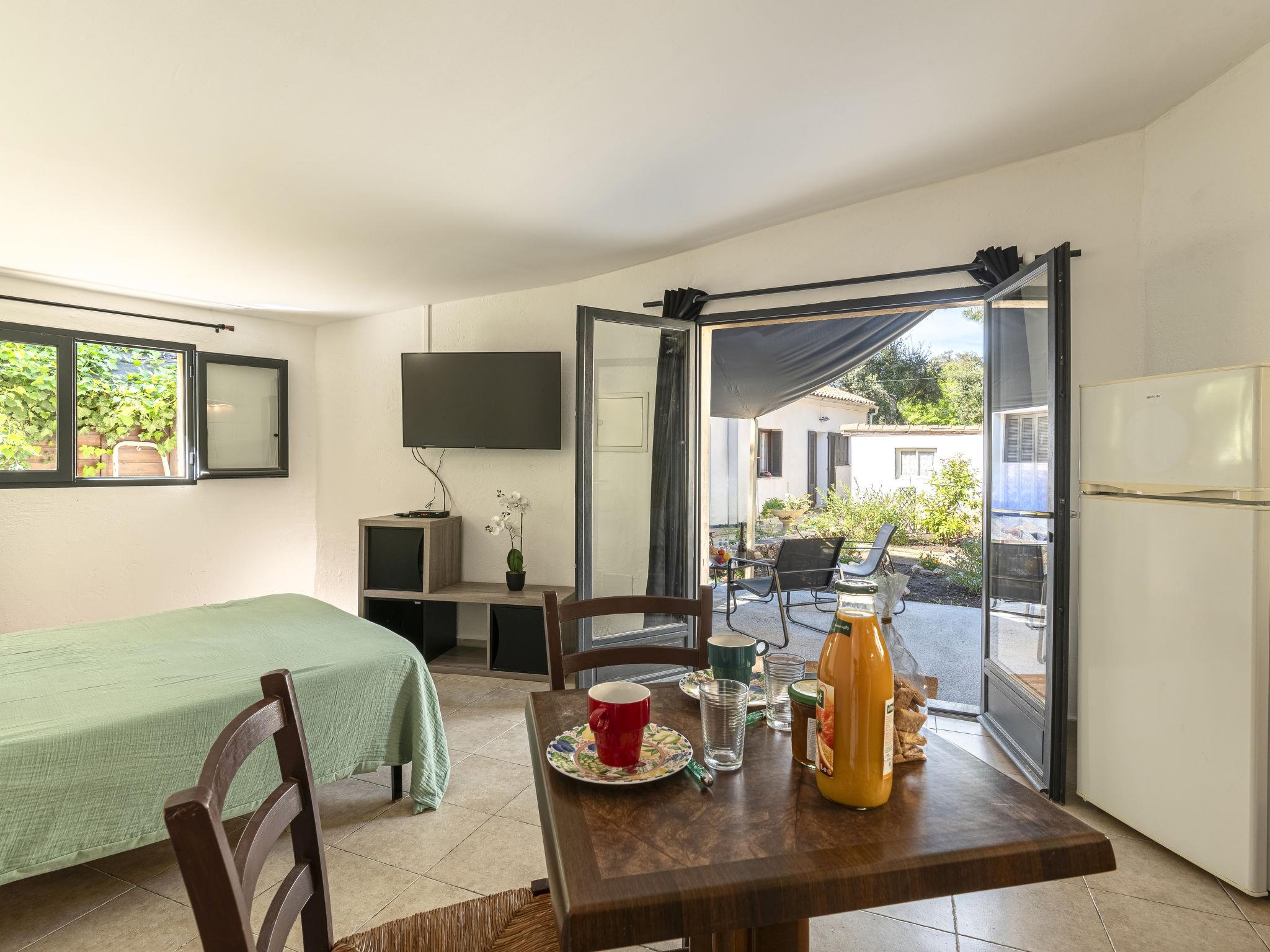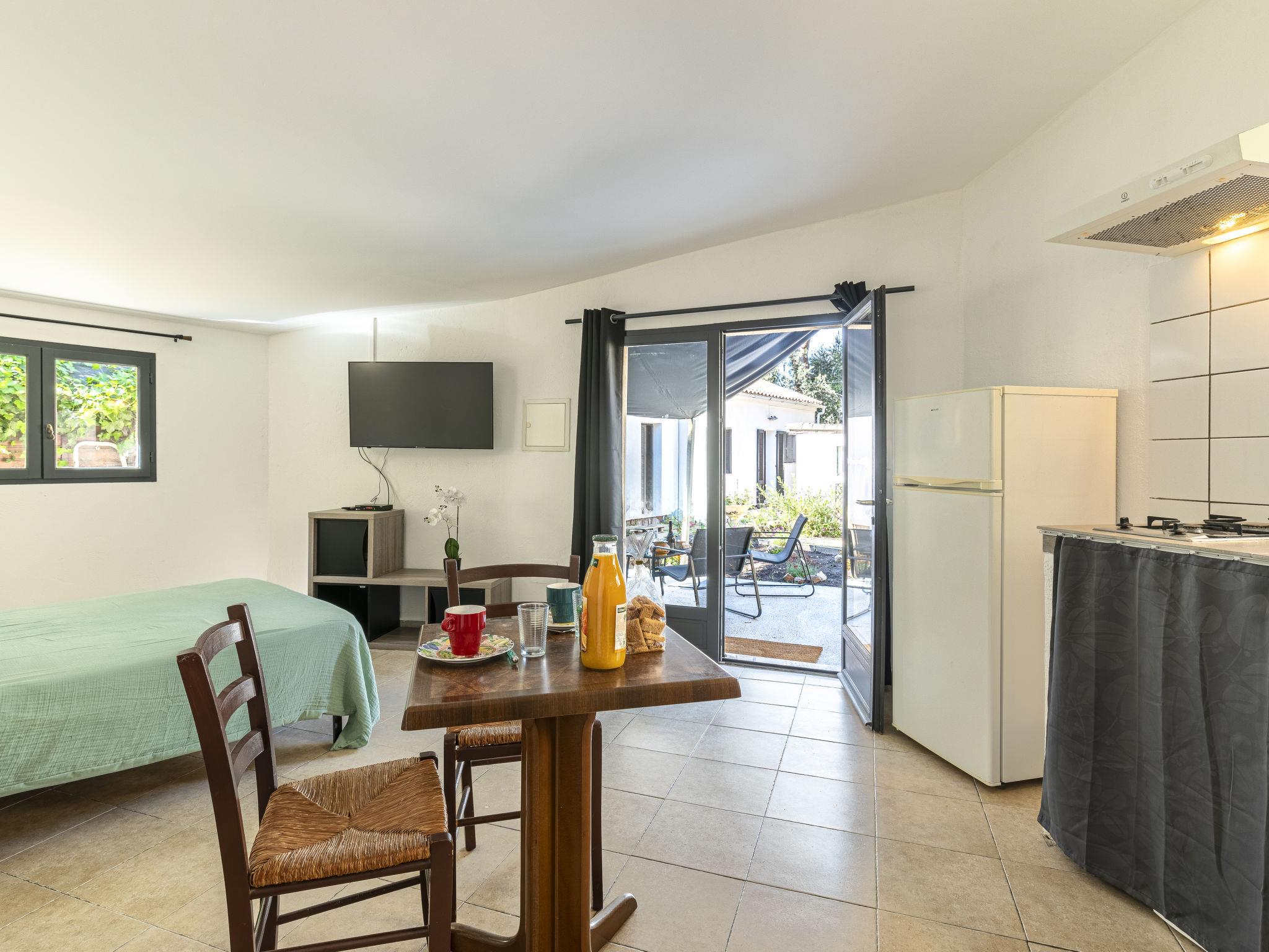 "Germaine", 1-room studio 30 m2, south facing position. Beautiful furnishings: living/sleeping room with 1 french bed (1 x 140 cm, length 190 cm). Exit to the terrace. Kitchenette (2 hot plates, toaster, kettle, microwave, electric coffee machine). Shower/WC. Electric heating, air-conditioning. Terrace 17 m2 partly roofed, south facing position. Terrace furniture, barbecue. Facilities: Internet (WiFi, free). Parking (fenced 1 car). Please note: non-smokers only. Smoke alarm. Offer by a private individual according to Art. 155, IV of CGI. 2A24700197455