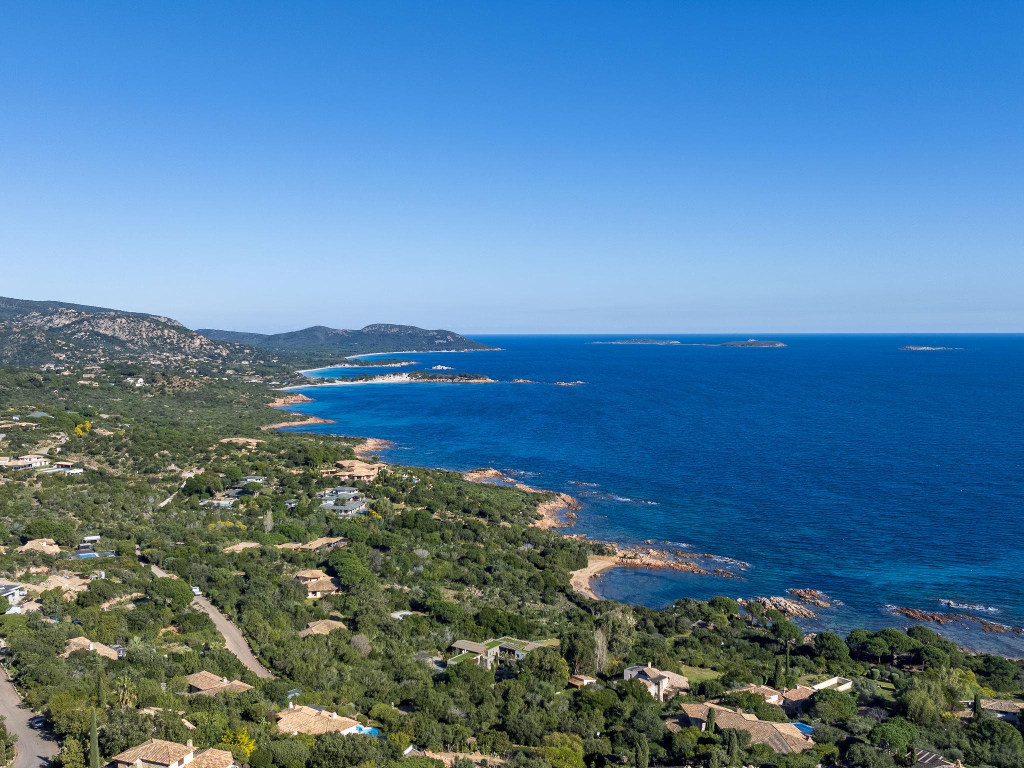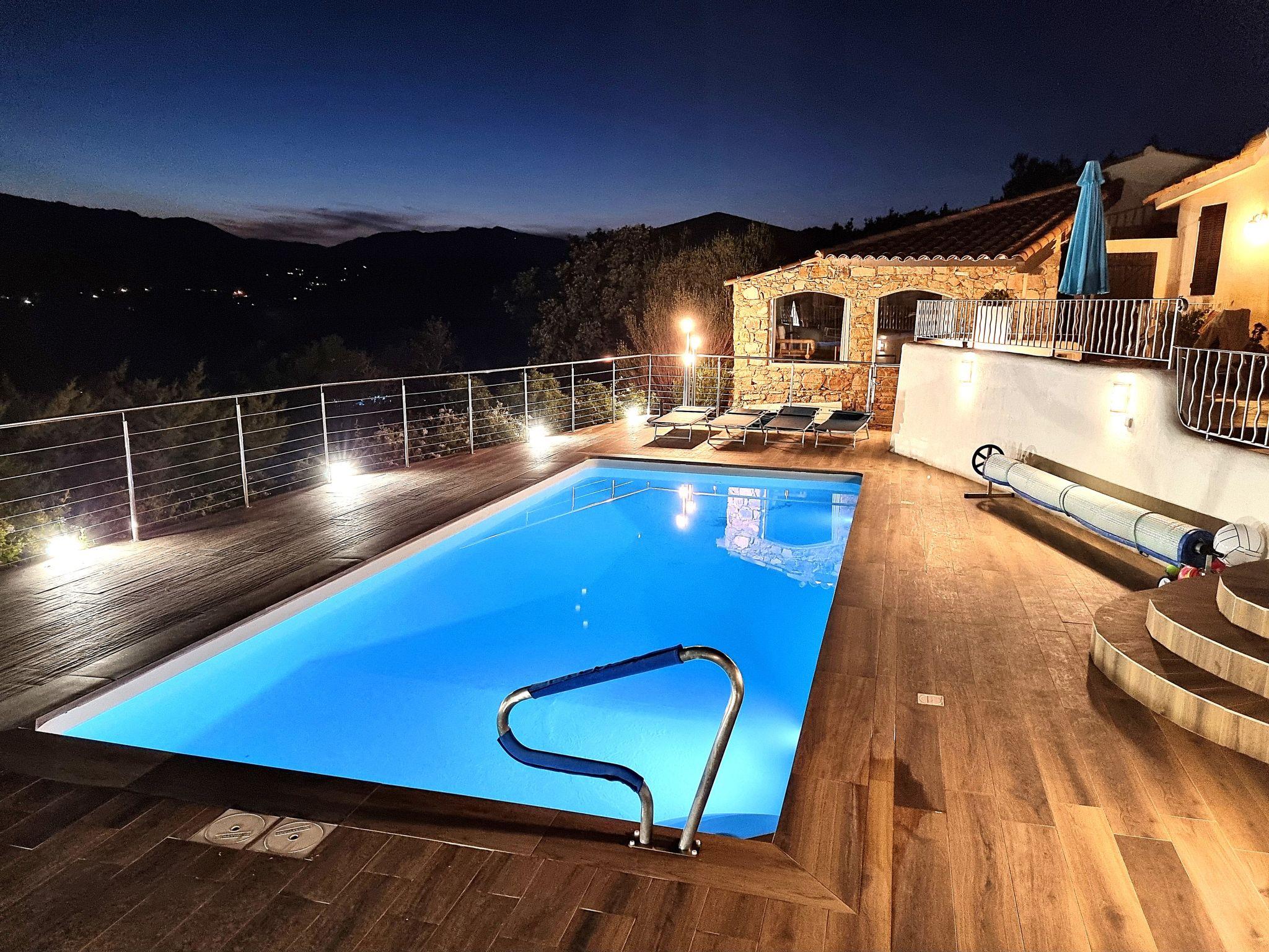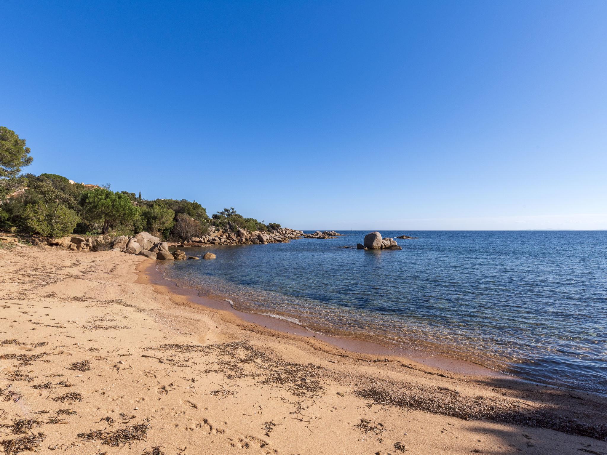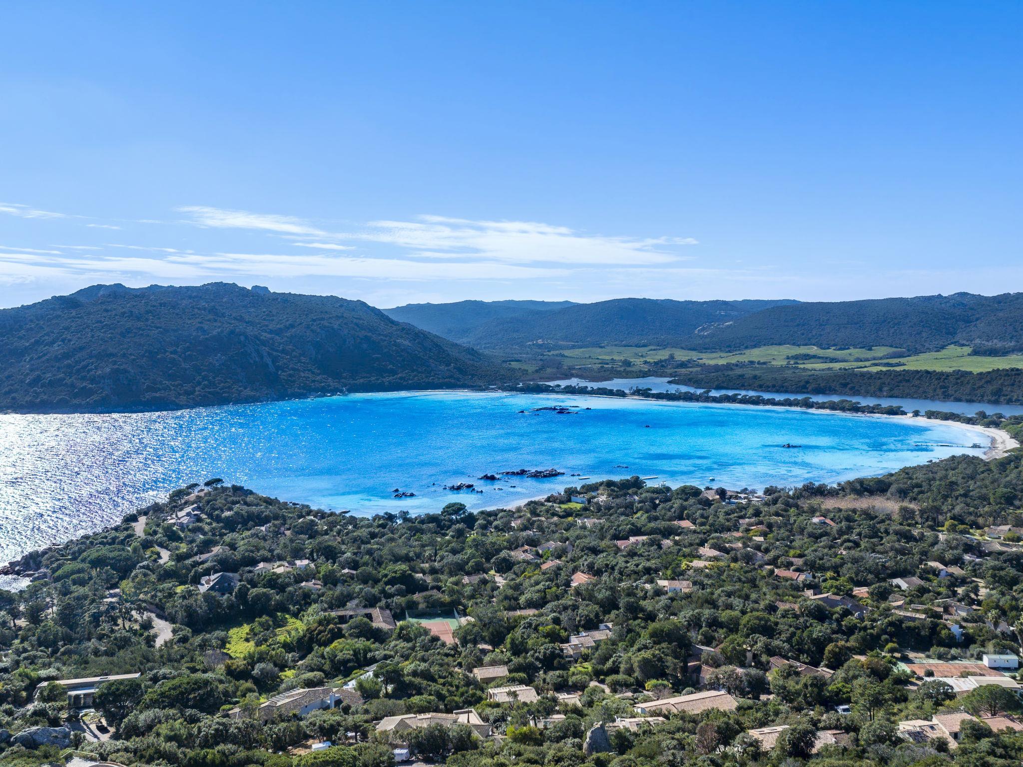 Domaine Cala d'Oro: Beautiful villa "Villa Sallena", 2 storeys. In the residential district, 900 m from the sea, 900 m from the beach, direct access to the beach. Private: property 1'420 m2, well-kept terraced garden (fenced), swimming pool angular, heated (8 x 3 m, depth 80 - 200 cm, seasonal availability: 01.May. - 30.Sep.). Table tennis, boules, terrace (70 m2), garden furniture, barbecue house, parking. Grocery 1.5 km, supermarket 5 km, restaurant 500 m, bus stop 2.7 km, sandy beach "Plage domaine privé Cala d'Oro" 900 m (small). Nearby attractions: Plage de Santa Giulia 2 km, Plage de Palombaggia 7 km, Bonifacio 25 km. Well-known lakes can easily be reached: Lac de l'Ospedale 31 km. Hiking paths: Les aiguilles de Bavella 55 km. Please note: car recommended. Owner lives in separate semi-detached house.