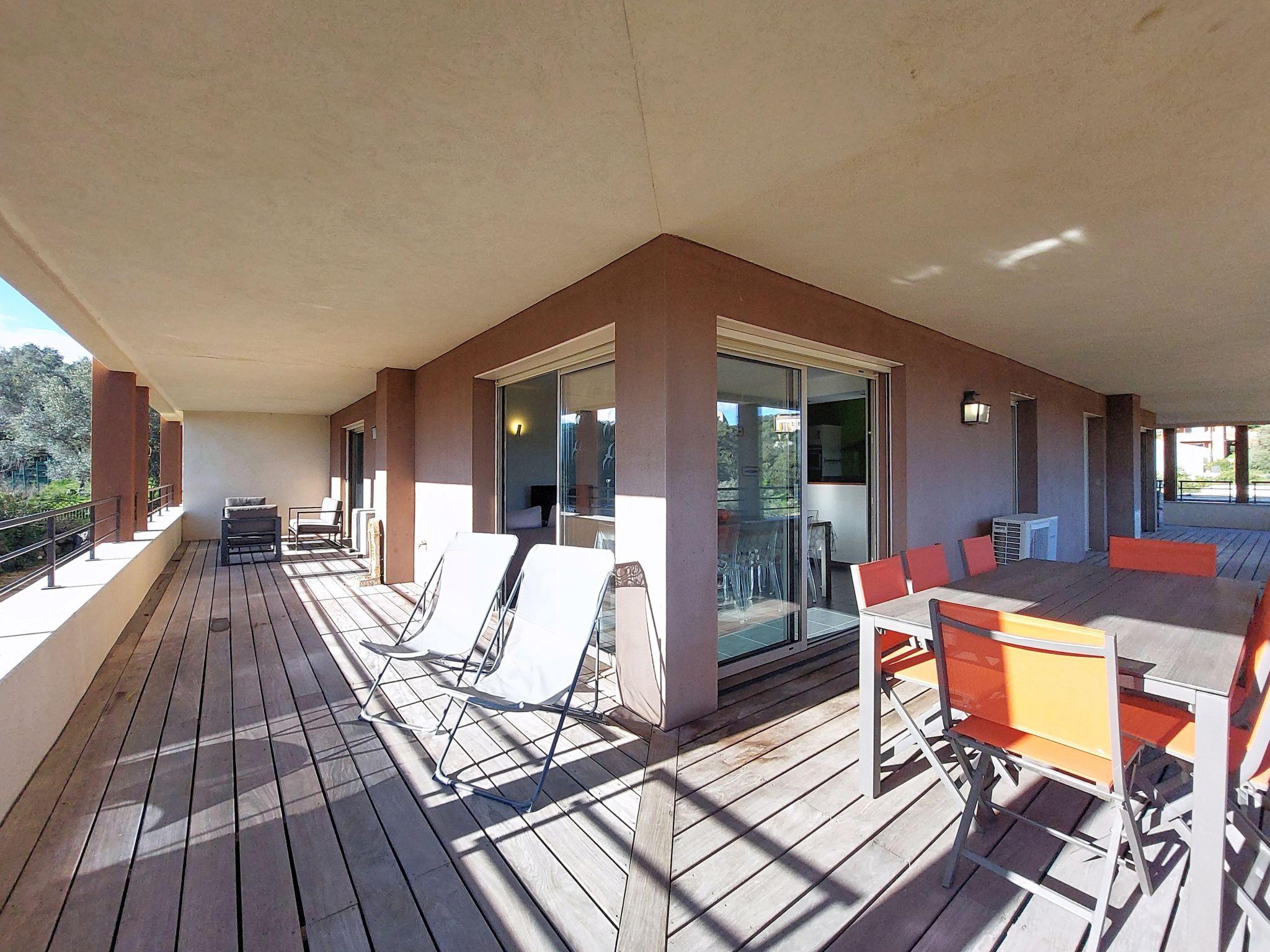 "Agnaredda", 4-room apartment 120 m2 on 1st floor. Large living/dining room with panoramic window with TV (flat screen). Exit to the terrace. 1 large room with 2 beds (90 cm, length 190 cm), 1 double bed (140 cm, length 200 cm). Exit to the terrace. 1 room with 1 french bed (160 cm, length 200 cm). Exit to the terrace. 1 room with 1 french bed (160 cm, length 200 cm). Exit to the terrace. Open kitchen (oven, dishwasher, 4 ceramic glass hob hotplates, toaster, kettle, microwave, freezer, electric coffee machine, Capsules for coffee machine (Nespresso) extra). Exit to the terrace. Shower, shower/WC, sep. WC. Electric heating, air-conditioning. Large terrace 80 m2, roofed. Terrace furniture. Partial view of the mountains. Facilities: washing machine, dryer, iron, mosquito net, hair dryer. Internet (WiFi, free). Parking space n 41 (roofed, fenced 1 car). Please note: non-smokers only. Offer by a private individual according to Art. 155, IV of CGI. 2A24700261660
