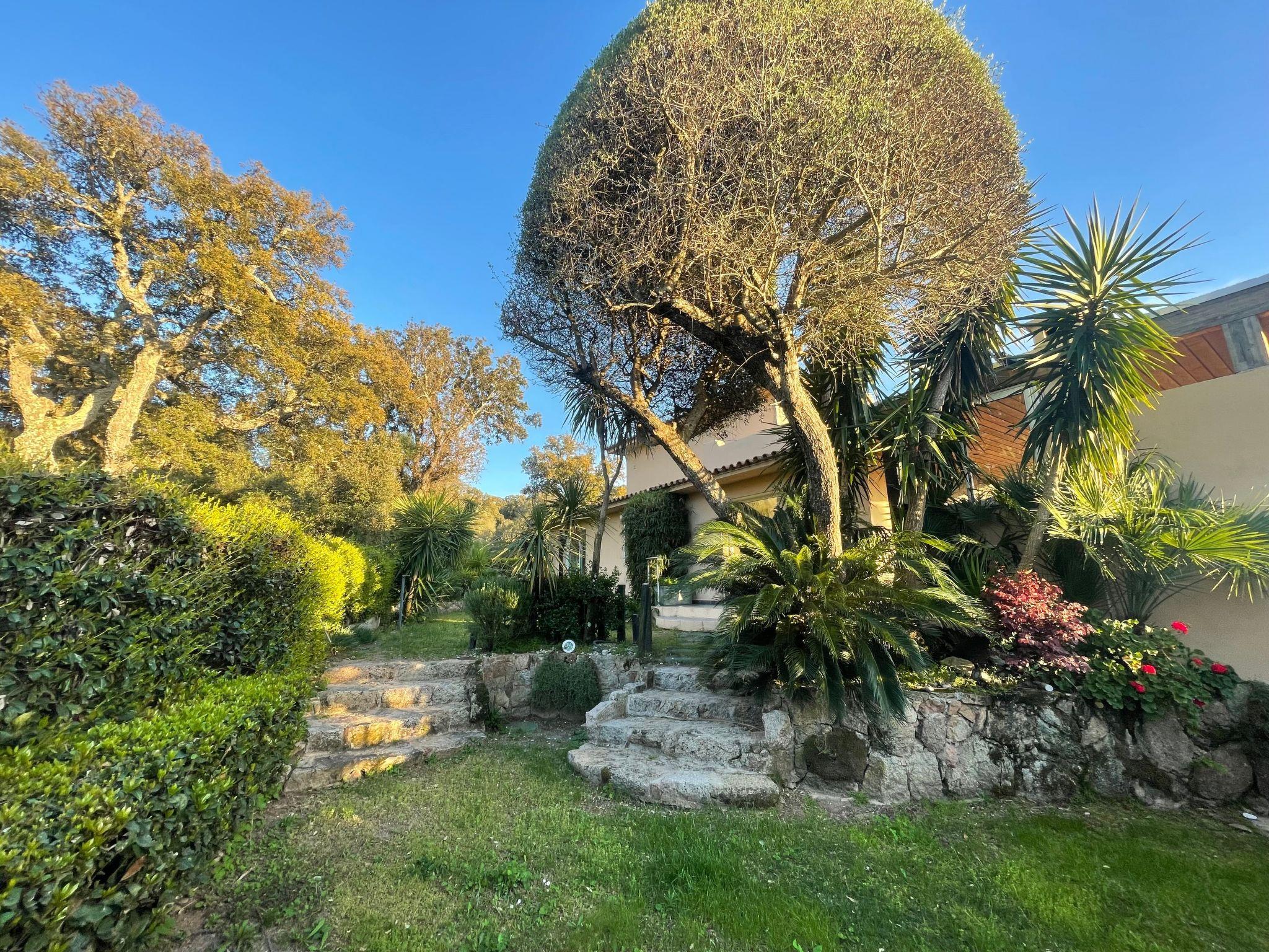 The villa is set in a calm, bucolic environment, surrounded by cork oak trees and scrubland. The villa is entirely landscaped with rare tropical species such as coconuts, palm trees and strelizias.
