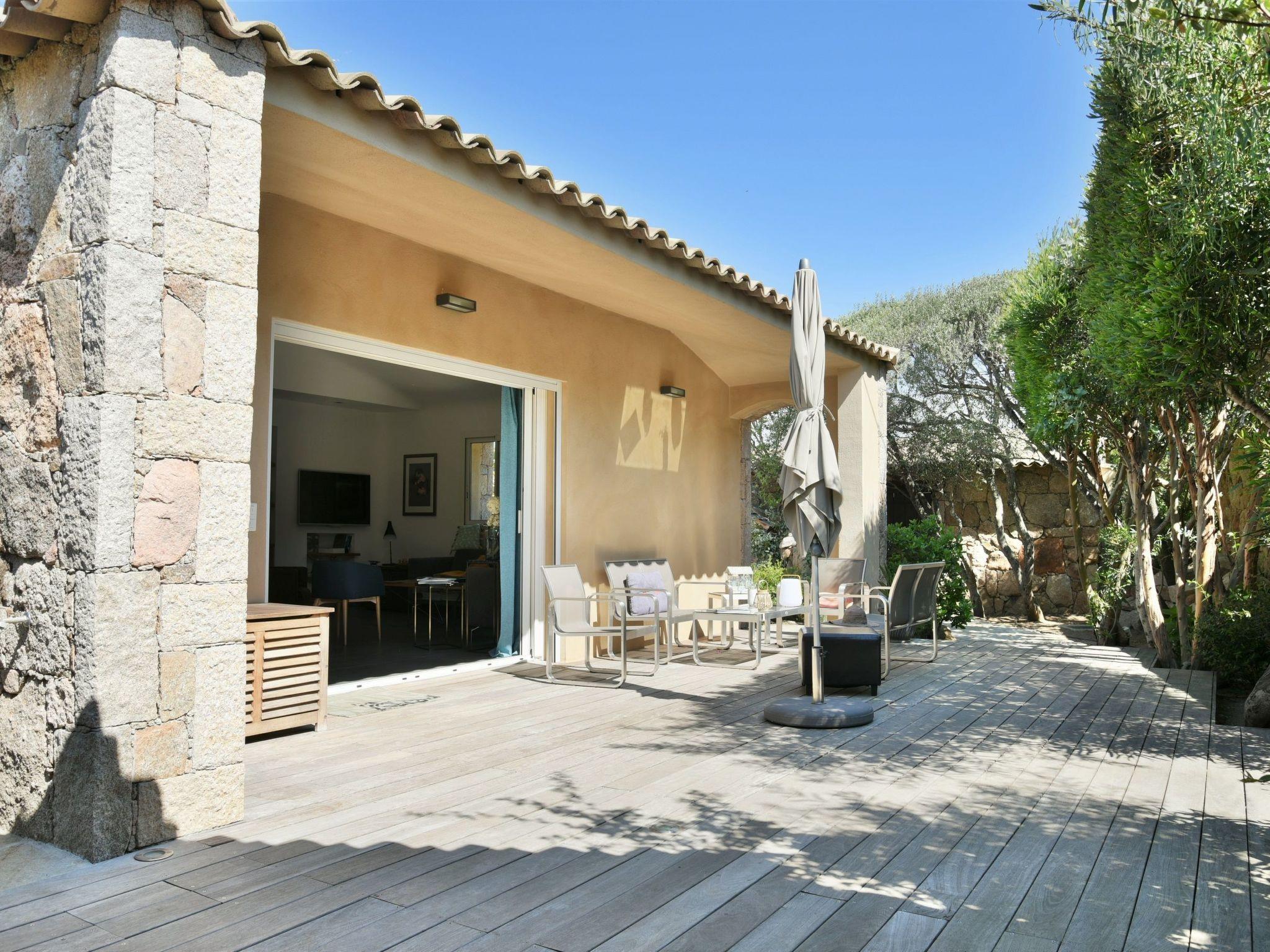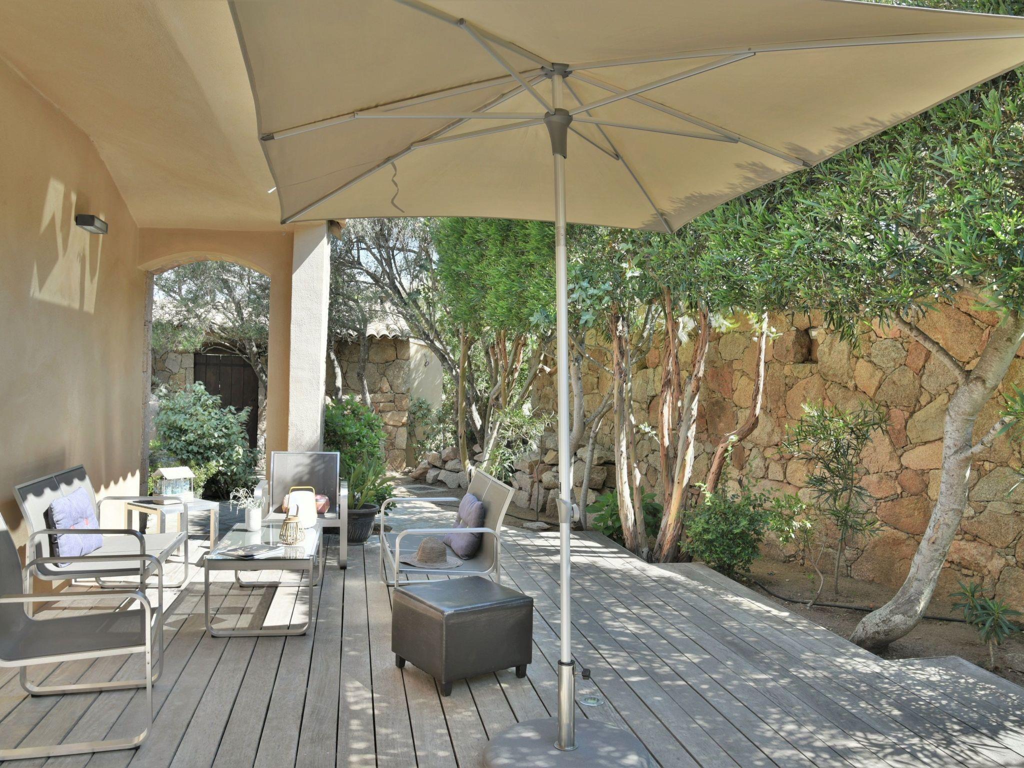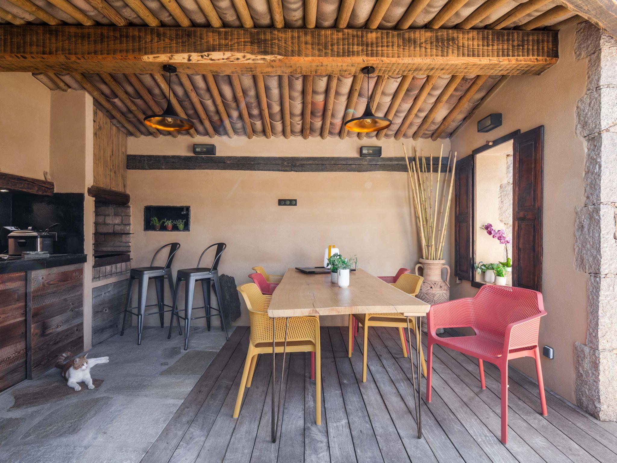 A small corner under a wooden roof is designed for those who prefer a shady spot for an aperitif.