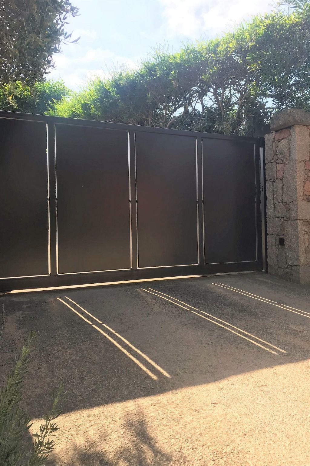 Fully enclosed by stone walls and an electric gate with remote control.
