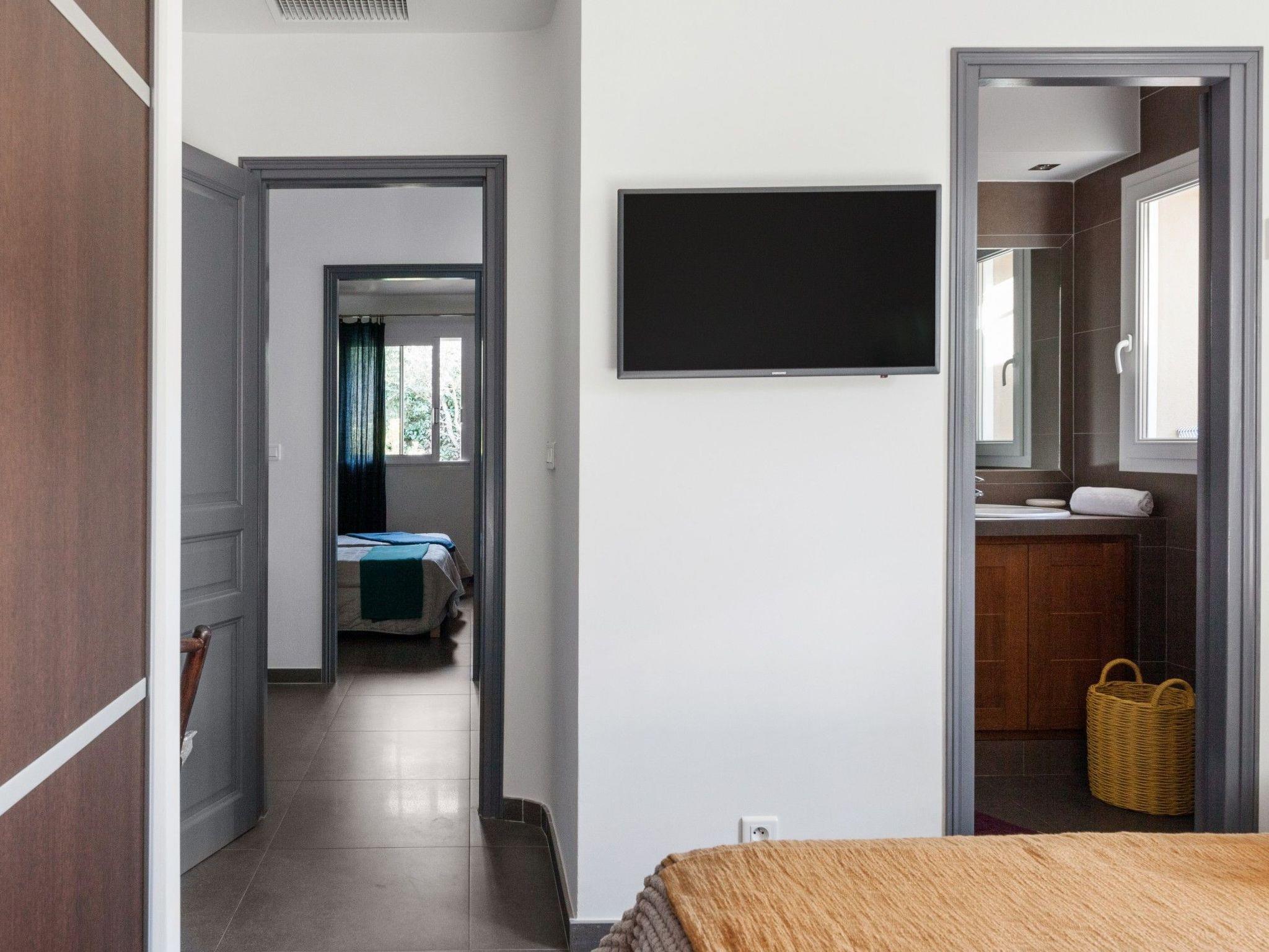Single-storey villa, 3 en-suite bedrooms, each with 1 bathroom/toilet, 1 study, 1 smart TV (an isolated bedroom for maximum privacy and exit to the outside through a sliding French window).