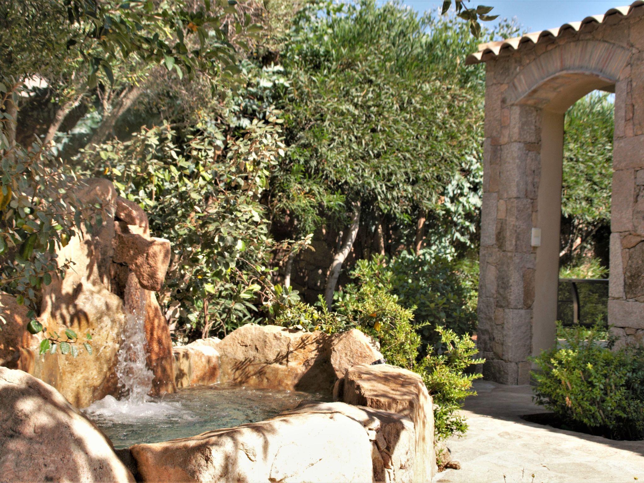 A rock pool invites you to relax under the waters of a fountain.