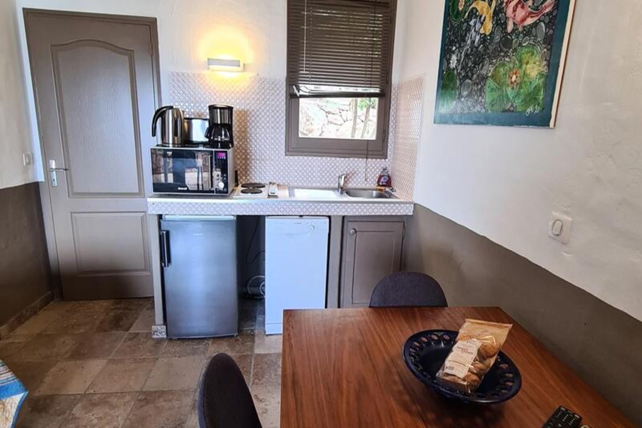 Dette charmerende feriehus tilbyder komfortabel indkvartering med en queensize-seng i stuen og en terrasse med havudsigt. Ejendommen er kæledyrsvenlig med ekstra gebyrer afhængigt af villaens størrelse. Det er perfekt for både par og familier, med villaer til 2, 4 og 6 personer. Faciliteterne inkluderer Wi-Fi, sengelinned (tilgængelig mod et ekstra gebyr) og håndklæder. Slutrengøring er også tilgængelig mod et gebyr, hvilket sikrer en problemfri afgang. Beliggende kun 5 km fra nogle af Korsikas smukkeste strande og 10 km fra Porto Vecchios pulserende centrum, giver denne bolig den ideelle balance mellem afslapning og eventyr. Gæsterne kan nyde den fantastiske udsigt over Porto Vecchio-bugten og udforske nærliggende attraktioner såsom lokale markeder, caféer og butikker, der giver en smag af autentisk korsikansk liv. Ejendommen har et veludstyret køkken til at tilberede måltider og et moderne brusebadeværelse med toilet. Gæsterne kan også slappe af ved den opvarmede infinity-pool eller børnepool, som begge har panoramaudsigt over havet. Derudover er direkte adgang til havet tilgængelig via en ponton med liggestole for ultimativ afslapning.