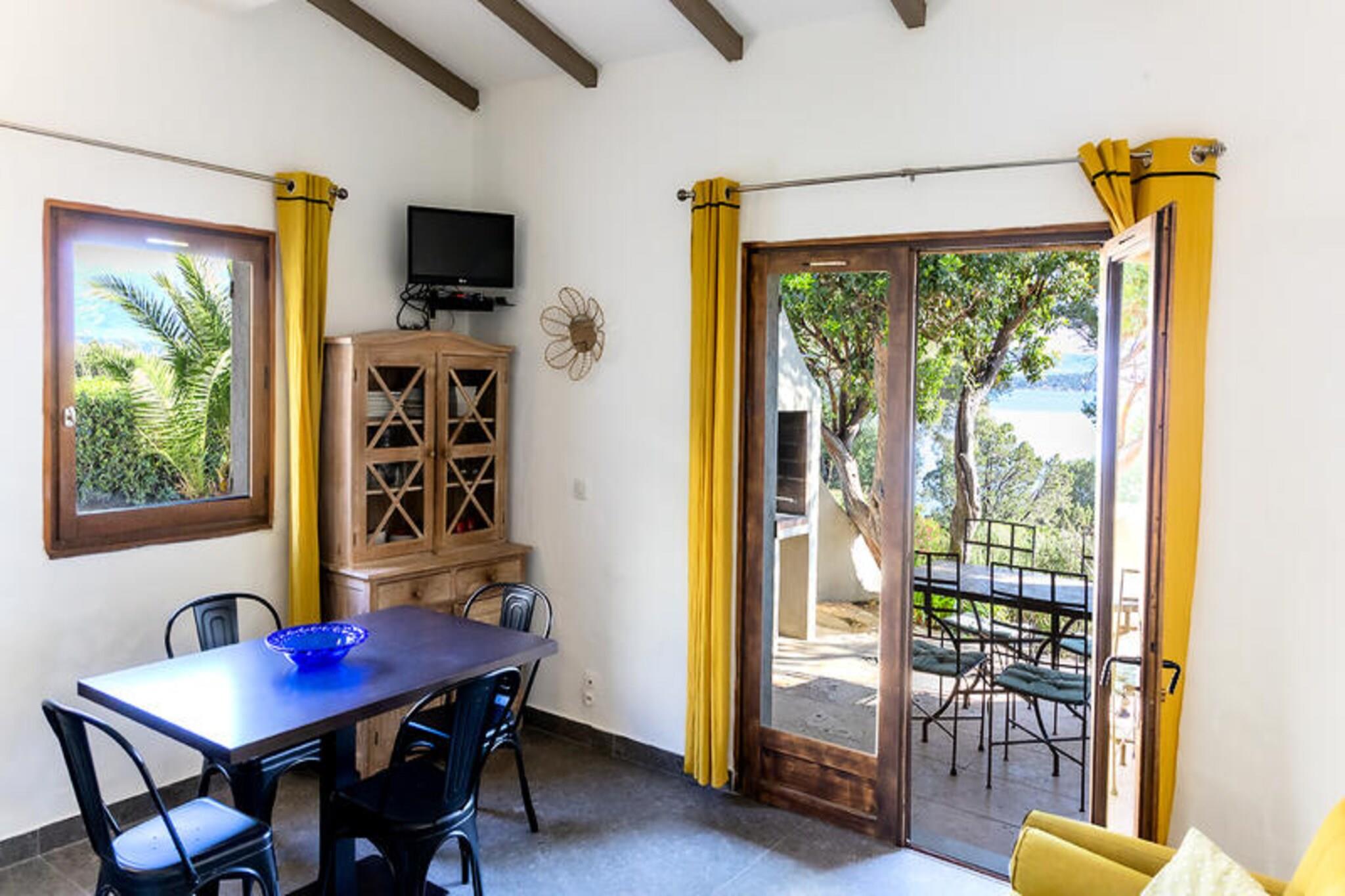 Flygt til dette charmerende tilflugtssted ved havnefronten p? sydkysten af ??Porto Vecchio-bugten, perfekt til en fredfyldt ferie p? Korsika. G?ster bydes velkommen i hyggelige villaer med private terrasser med havudsigt, to sovev?relser med queensize-senge (et ovenp?) og en mezzanin med to enkeltsenge, ideel til familier eller grupper. K?ledyrsvenlige overnatningssteder er tilg?ngelige mod et ekstra gebyr, hvilket sikrer, at alle, inklusive dine lodne venner, kan nyde opholdet. Ejendommen tilbyder ogs? en opvarmet infinity-pool med en b?rneafdeling og direkte adgang til havet via en privat ponton udstyret med liggestole. Beliggende kun 5 km fra nogle af Korsikas mest fantastiske strande og 10 km fra Porto Vecchio's livlige centrum, er denne ejendom ideelt beliggende for en blanding af afslapning og eventyr. Oplev n?rliggende caf?er, lokale markeder og kulturelle vartegn, eller slap af ved Golfens uber?rte vand. Uanset om du udforsker Korsikas naturlige sk?nhed eller nyder det regionale k?kken p? n?rliggende restauranter, im?dekommer beliggenheden enhver rejsendes ?nsker. Hver villa har et fuldt udstyret k?kken, s? g?sterne kan tilberede m?ltider, n?r det passer dem. Moderne faciliteter omfatter Wi-Fi, et badev?relse med bruser og et ekstra toilet for komfort. Yderligere tjenester, s?som slutreng?ring, sengelinned og h?ndkl?des?t, er tilg?ngelige mod et gebyr, hvilket sikrer en problemfri oplevelse. Med en fantastisk terrasse med havudsigt og tankev?kkende faciliteter lover denne destination en uforglemmelig flugt.