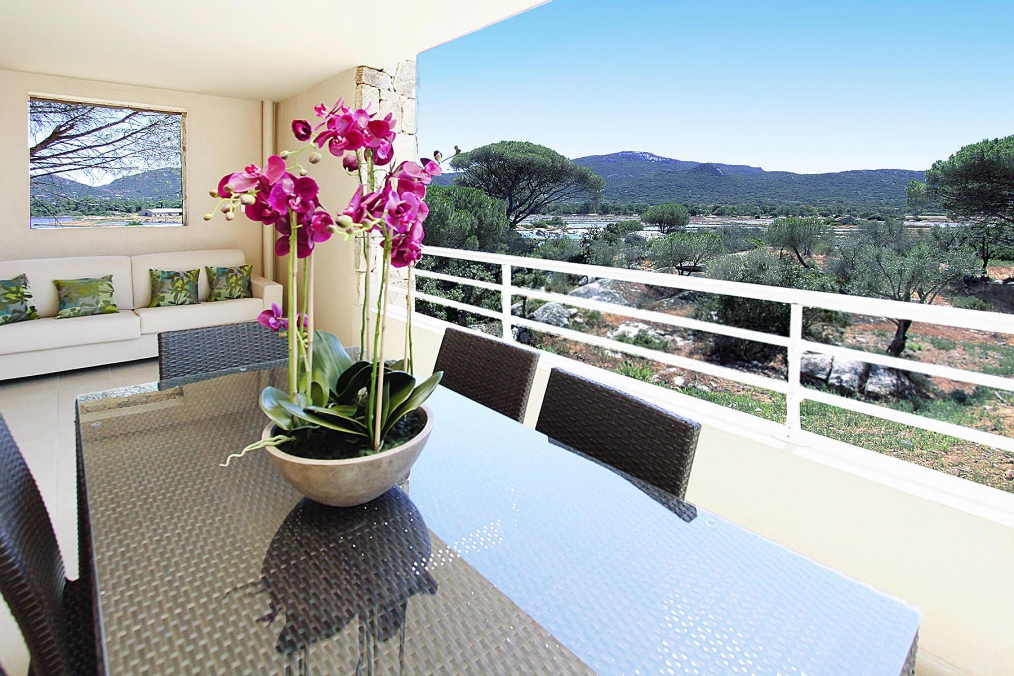 Feriekompleks åbnede i 2011 med meget moderne, rummelige boligenheder og swimmingpool i det sydlige Korsika ved Porto Vecchio-bugten. Komplekset, der ligger i en 4 hektar stor ejendom med fyrreskov, blander sig harmonisk ind i landskabet og tilbyder en imponerende panoramaudsigt over Porto Vecchio og saltpanderne i Porto Vecchio. De komfortable lejligheder har hver en stor terrasse (mellem 20 og 100 kvadratmeter, afhængig af typen), ideel til udendørs spisning. Palombaggia-stranden, kun få kilometer fra dit feriehus, blev kåret som den smukkeste strand i Frankrig i 2015 af rejsende. Se selv! Aktiviteter i nærheden: Den gamle bydel i Porto Vecchio er lige under en kilometer væk fra komplekset butikker har et varieret udvalg for gæster. Udflugtstip: Bonifacio, havnebyen på den sydlige spids af Korsika, med den øvre by på et kridtplateau