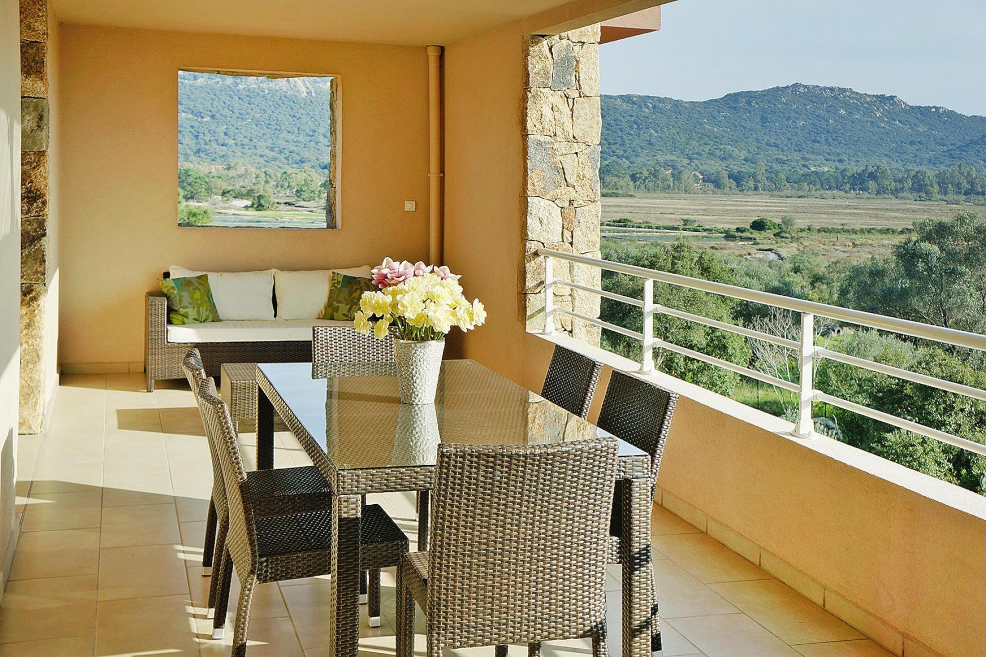 Feriekompleks åbnede i 2011 med meget moderne, rummelige boligenheder og swimmingpool i det sydlige Korsika ved Porto Vecchio-bugten. Komplekset, der ligger i en 4 hektar stor ejendom med fyrreskov, blander sig harmonisk ind i landskabet og tilbyder en imponerende panoramaudsigt over Porto Vecchio og saltpanderne i Porto Vecchio. De komfortable lejligheder har hver en stor terrasse (mellem 20 og 100 kvadratmeter, afhængig af typen), ideel til udendørs spisning. Palombaggia-stranden, kun få kilometer fra dit feriehus, blev kåret som den smukkeste strand i Frankrig i 2015 af rejsende. Se selv! Aktiviteter i nærheden: Den gamle bydel i Porto Vecchio er lige under en kilometer væk fra komplekset butikker har et varieret udvalg for gæster. Udflugtstip: Bonifacio, havnebyen på den sydlige spids af Korsika, med den øvre by på et kridtplateau