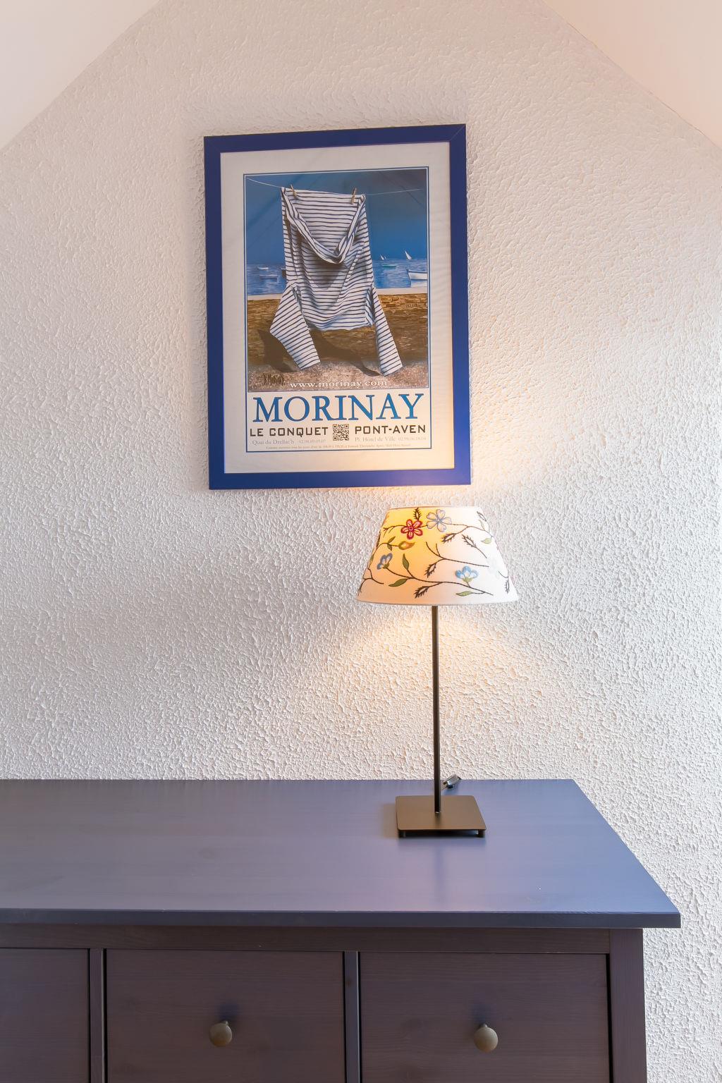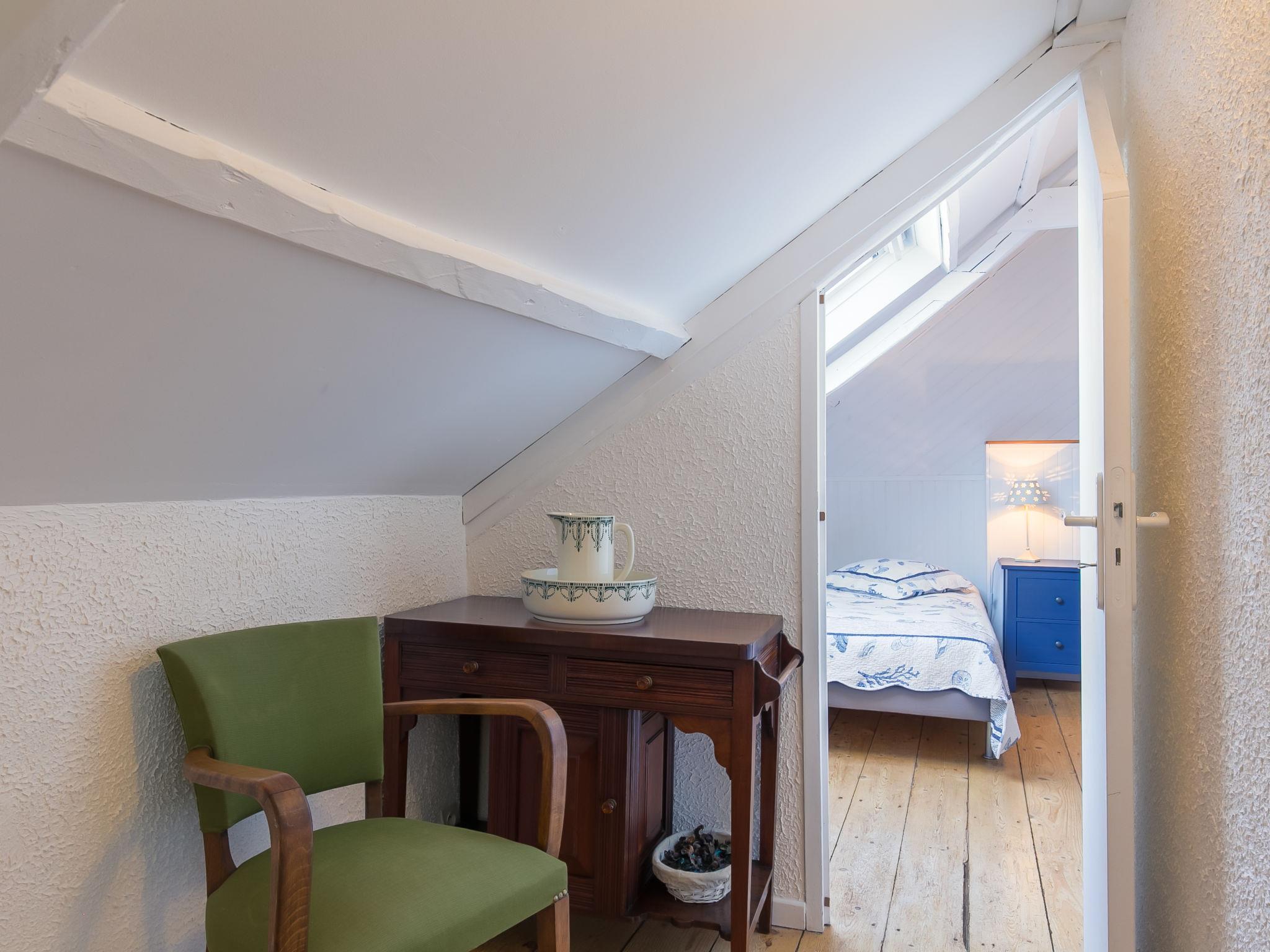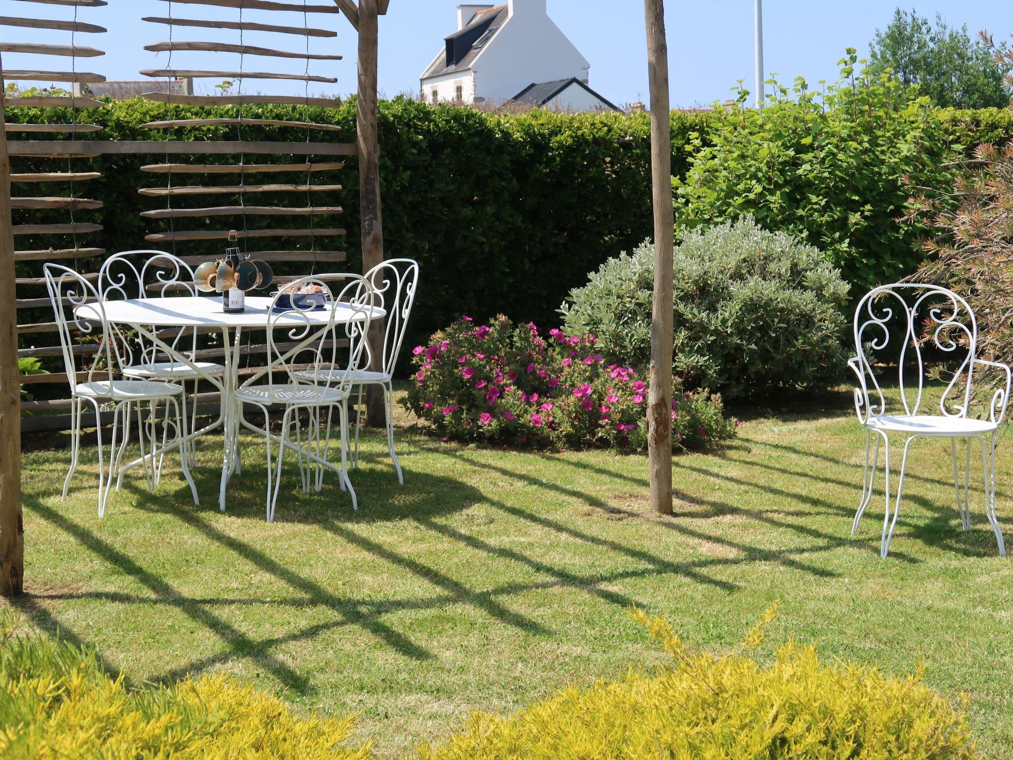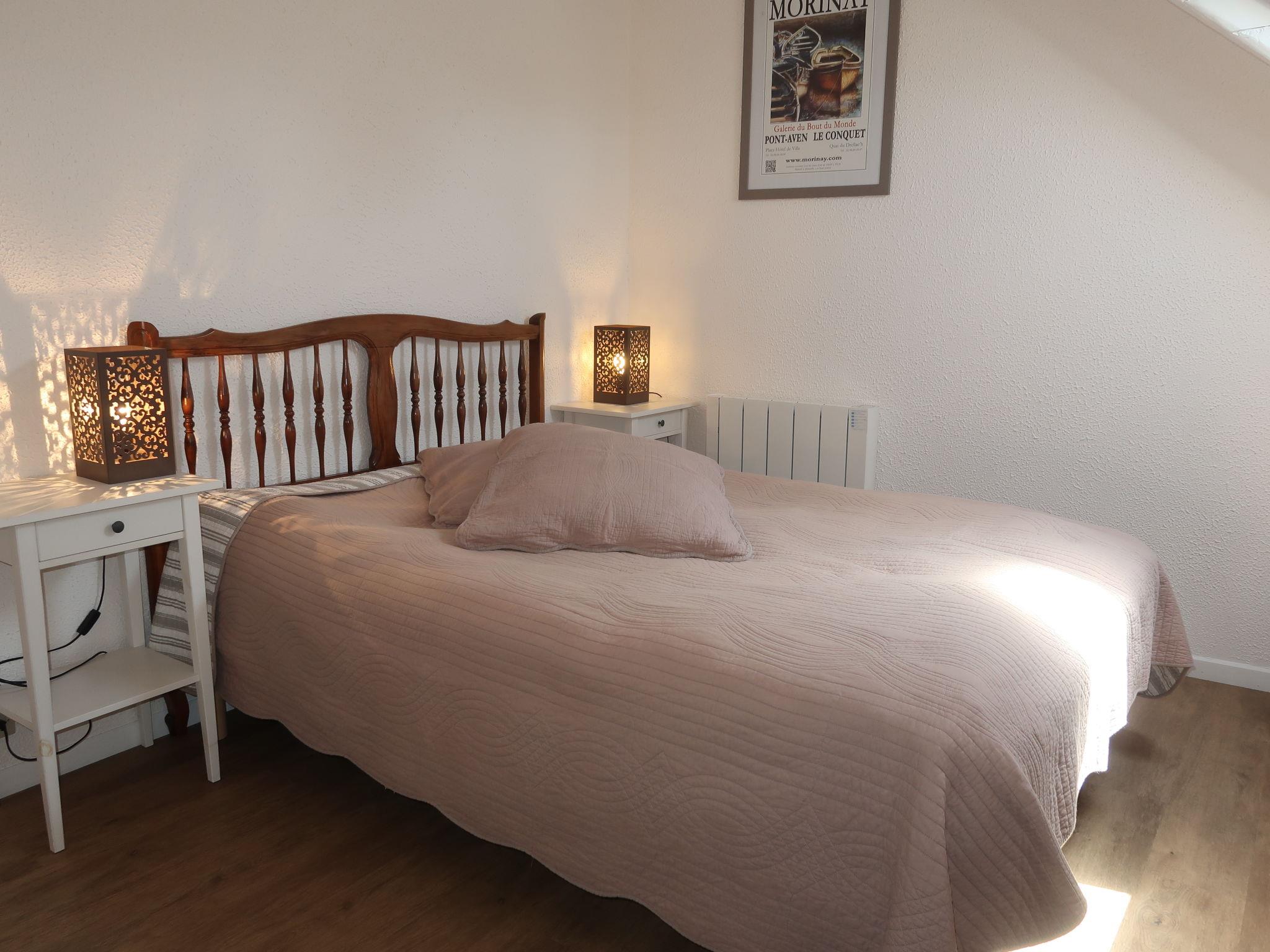 "Ty Coz ar Mor", 4-room house 80 m2 on 2 levels. Bright, cosy furnishings: living/dining room with open-hearth fireplace, dining table and TV. Exit to the garden. Open kitchen (oven, dishwasher, 3 induction hot plates, toaster, kettle, microwave, freezer, electric coffee machine). Shower/WC. Upper floor: 1 room with sloping ceilings with 1 french bed (140 cm, length 190 cm). 1 room with sloping ceilings with 2 beds (90 cm, length 190 cm). 1 open room with sloping ceilings with 1 french bed (140 cm, length 190 cm). Electric heating. Wooden floors. Terrace, south-west facing position. Terrace furniture, barbecue (portable), deck chairs (3), sitting area, box-room. Facilities: washing machine, dryer, iron, children's high chair, baby cot. Internet (WiFi, free). Please note: non-smoking house. Maximum 2 pets/ dogs allowed. Smoke alarm. Further shower and sep.WC in the utility room in the small outbuilding (only accessible from outside).