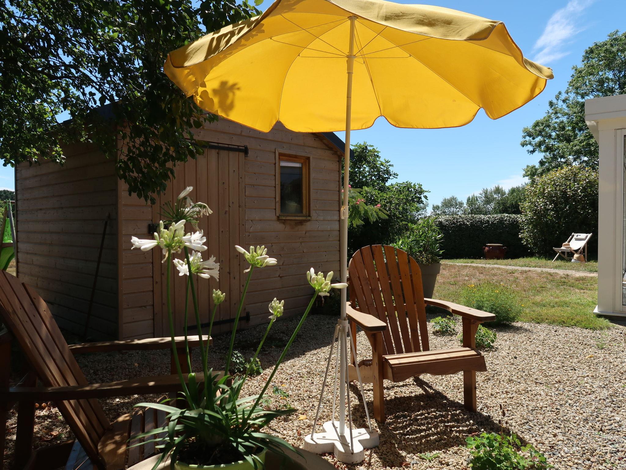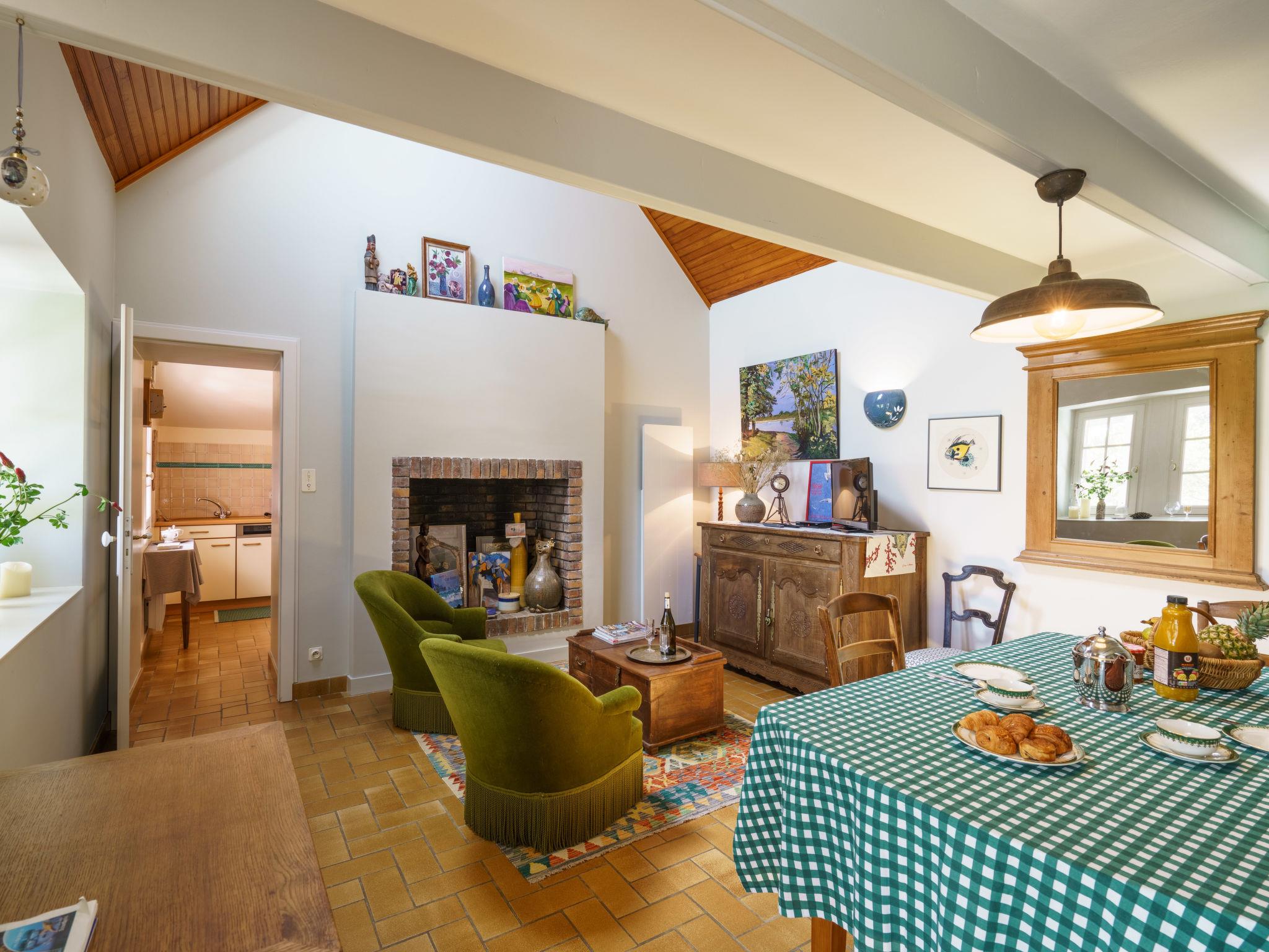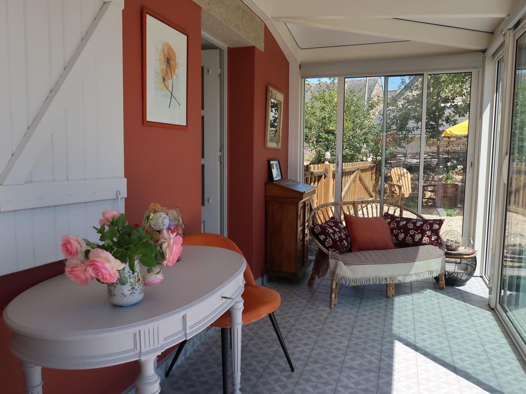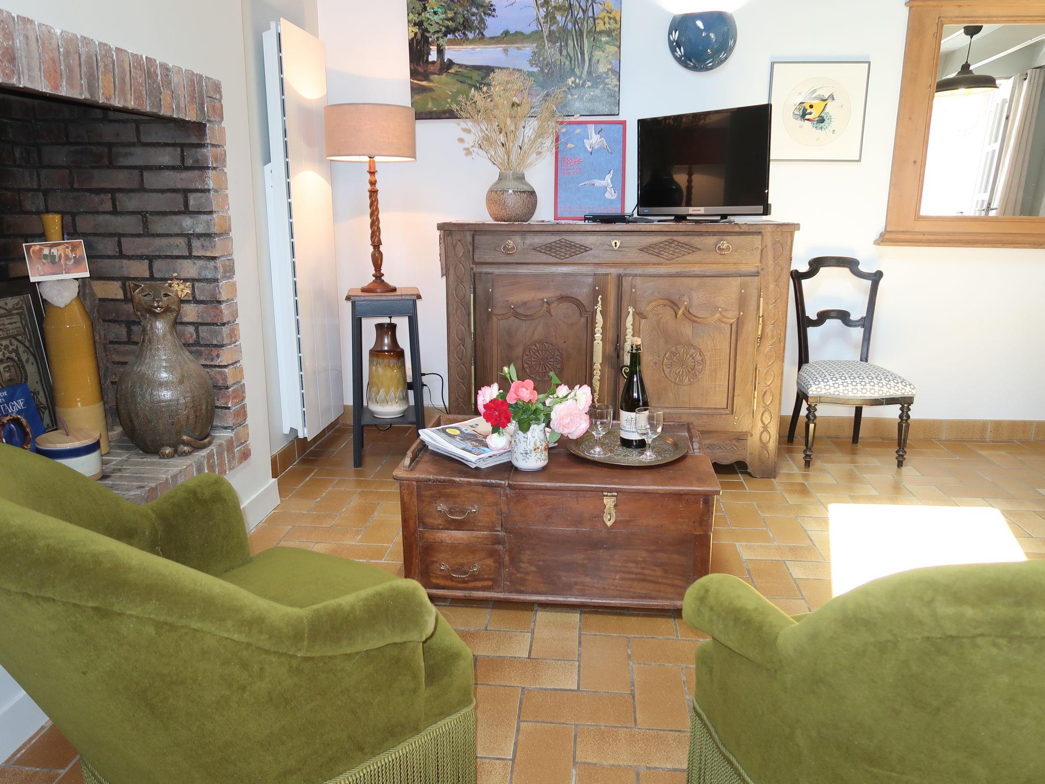 "Entre terre et mer", 1-room house 46 m2 on 2 levels, south facing position. Beautiful and cosy furnishings: living/dining room with veranda with open-hearth fireplace (only for decoration), dining table and TV (flat screen). Exit to the veranda. Small kitchen (1 hot plate, oven, dishwasher, 3 gas rings, toaster, kettle, microwave). Bath/WC. Electric heating. Upper floor: (steep stair), 1 open room with sloping ceilings with 1 french bed (140 cm, length 190 cm). Large garden, south facing position. Terrace furniture, barbecue (portable), deck chairs (1). Please note: non-smoking house. Smoke alarm. Offer by a private individual according to Art. 155, IV of CGI.