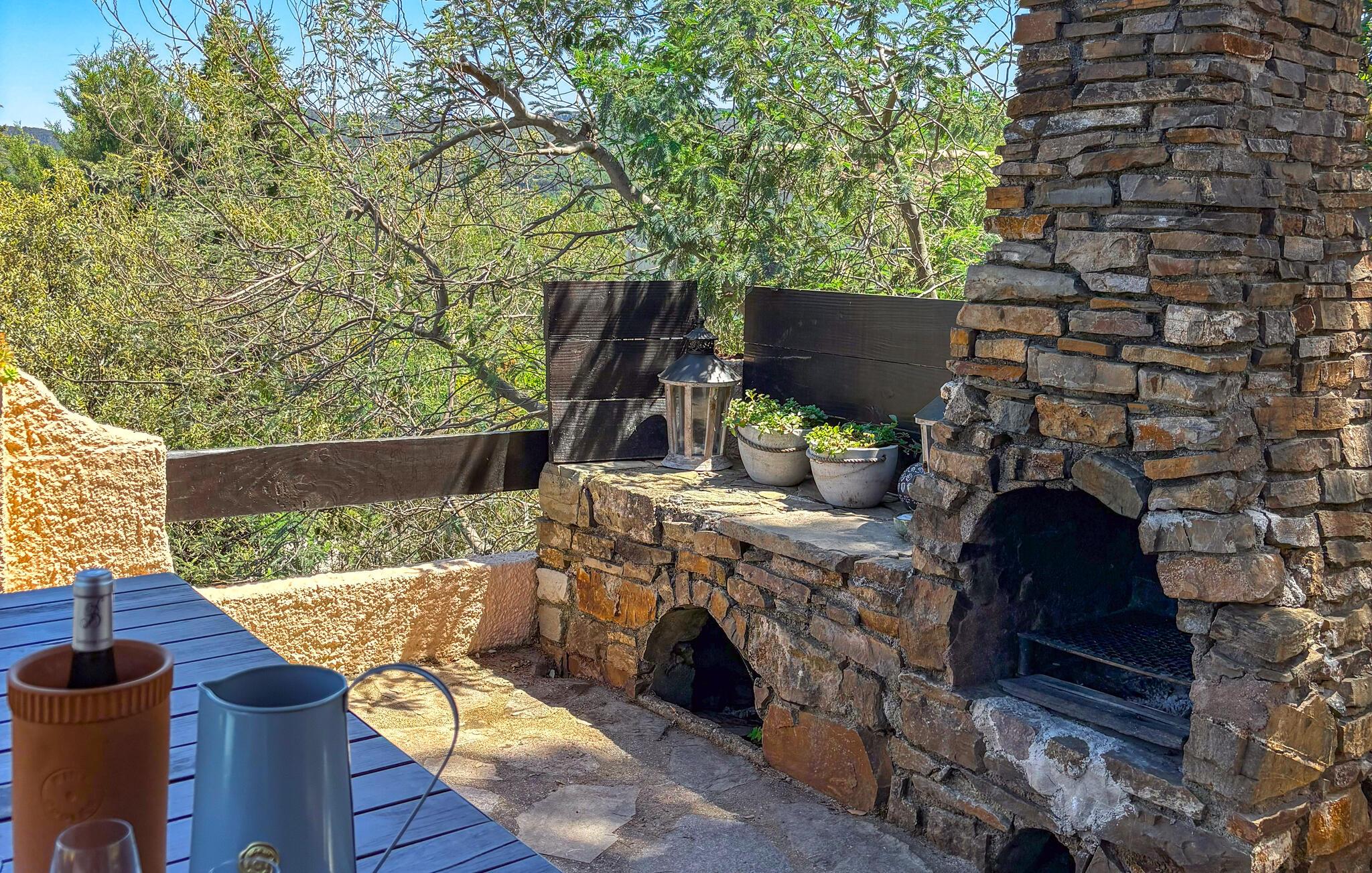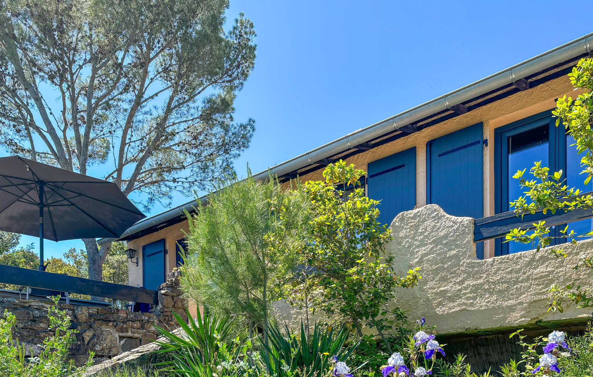 Haven er med til at skabe en dejlig atmosfære med ege- og fyrretræer, der giver dejlig skygge på de helt varme sommerdage, og de herlige Middelhavsdufte af lavendel og timian ligger i luften hele tiden. Her vil I helt sikkert kunne nyde et dejligt ferieophold i fred og ro. Poolen ligger lidt lavere end selve feriehuset, og har adgang via en stentrappe. Poolen omkranses af en stor terrasse, der er oplyst om aftenen og indbyder til solbadning i dagtimerne.