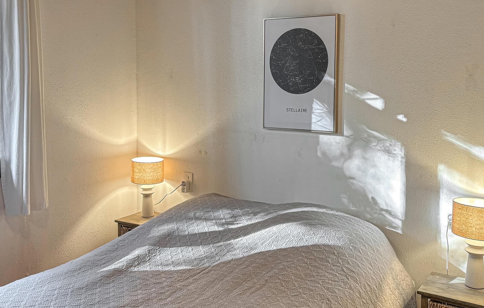 Fra stuen er der udgang til terrassen, som er udstyret med en stengrill, hvor I om sommeren kan tilberede lokale specialiteter. Det store soveværelse åbner direkte ud til terrassen, og mezzaninen, der er tilgængelig fra stuen, har en dobbeltseng til gæster. De seneste opdateringer inkluderer en stilfuld stue med brændeovn, renoveret gang, tagisolering og aircondition i begge soveværelser, der sikrer et behageligt ophold på alle årstider.