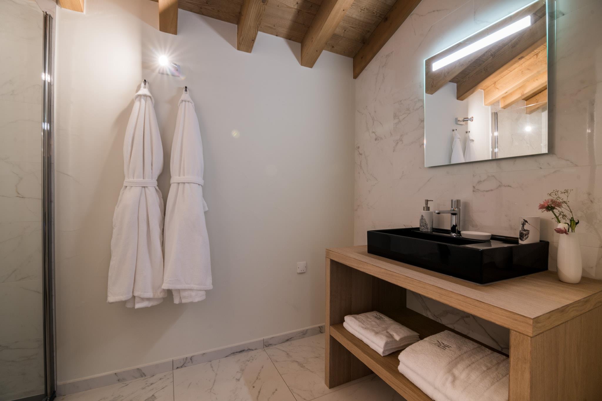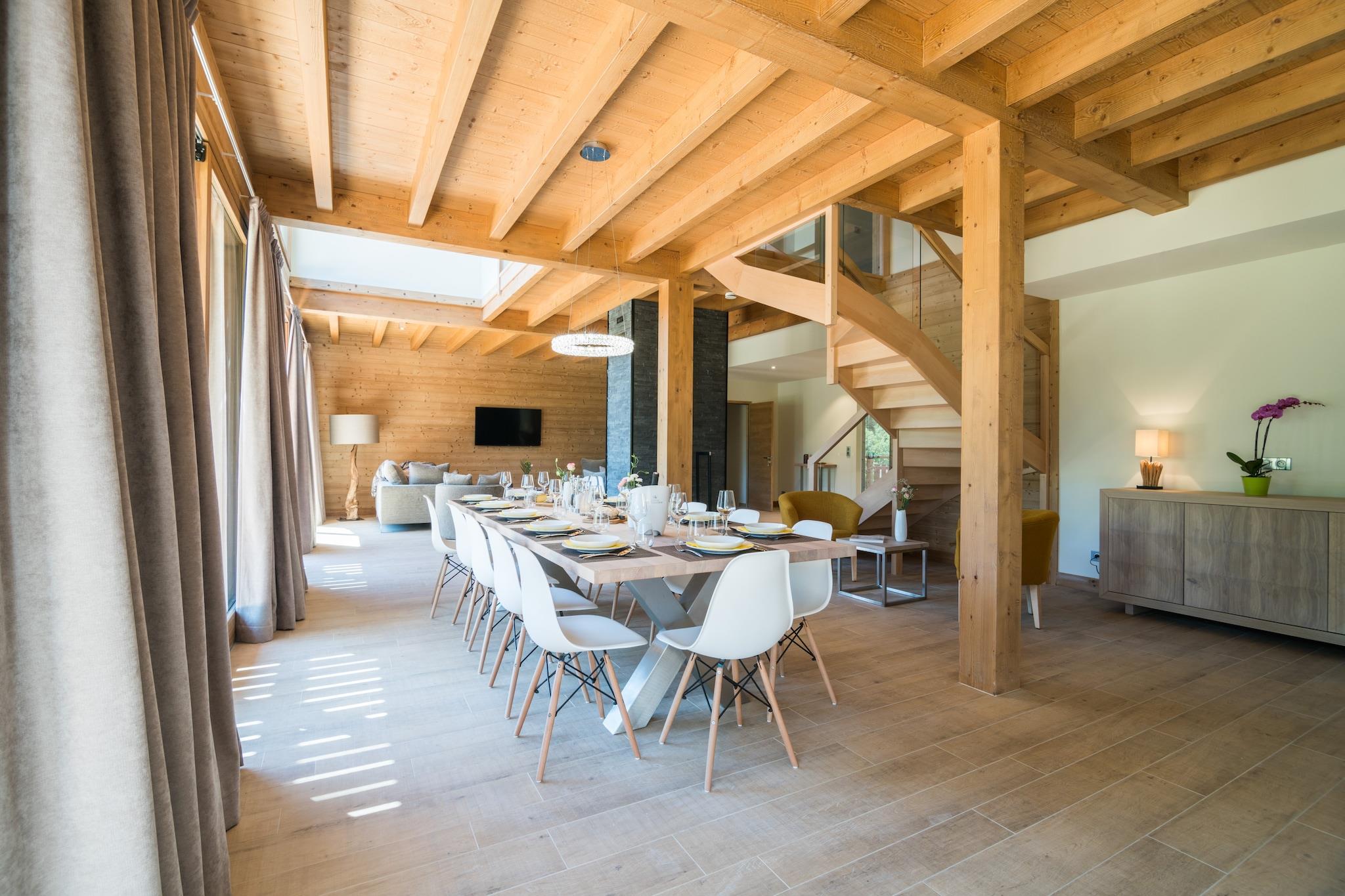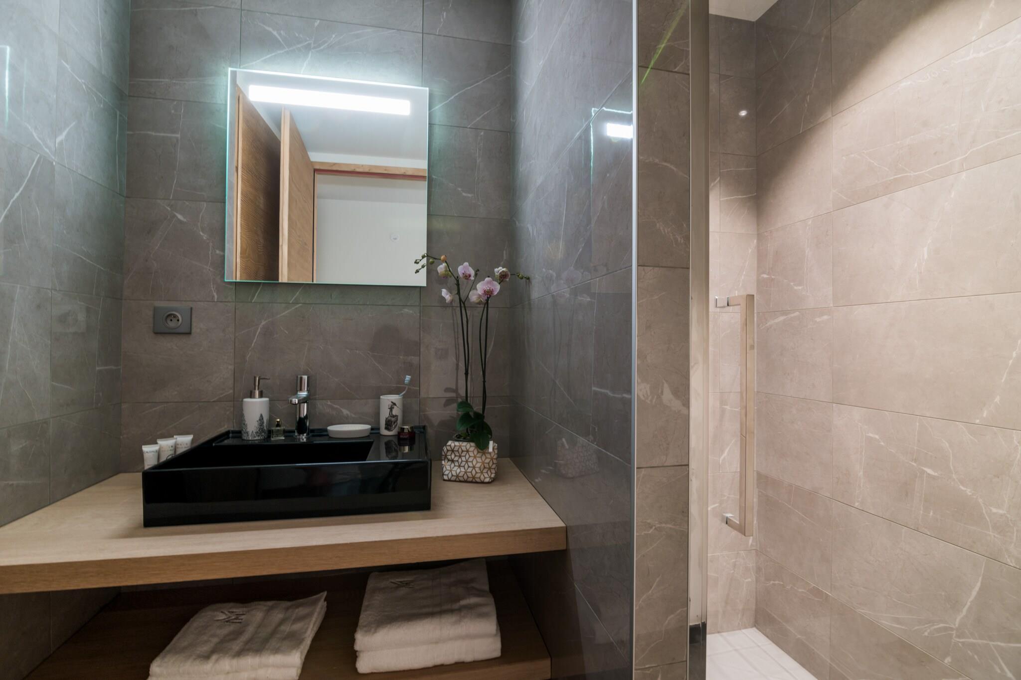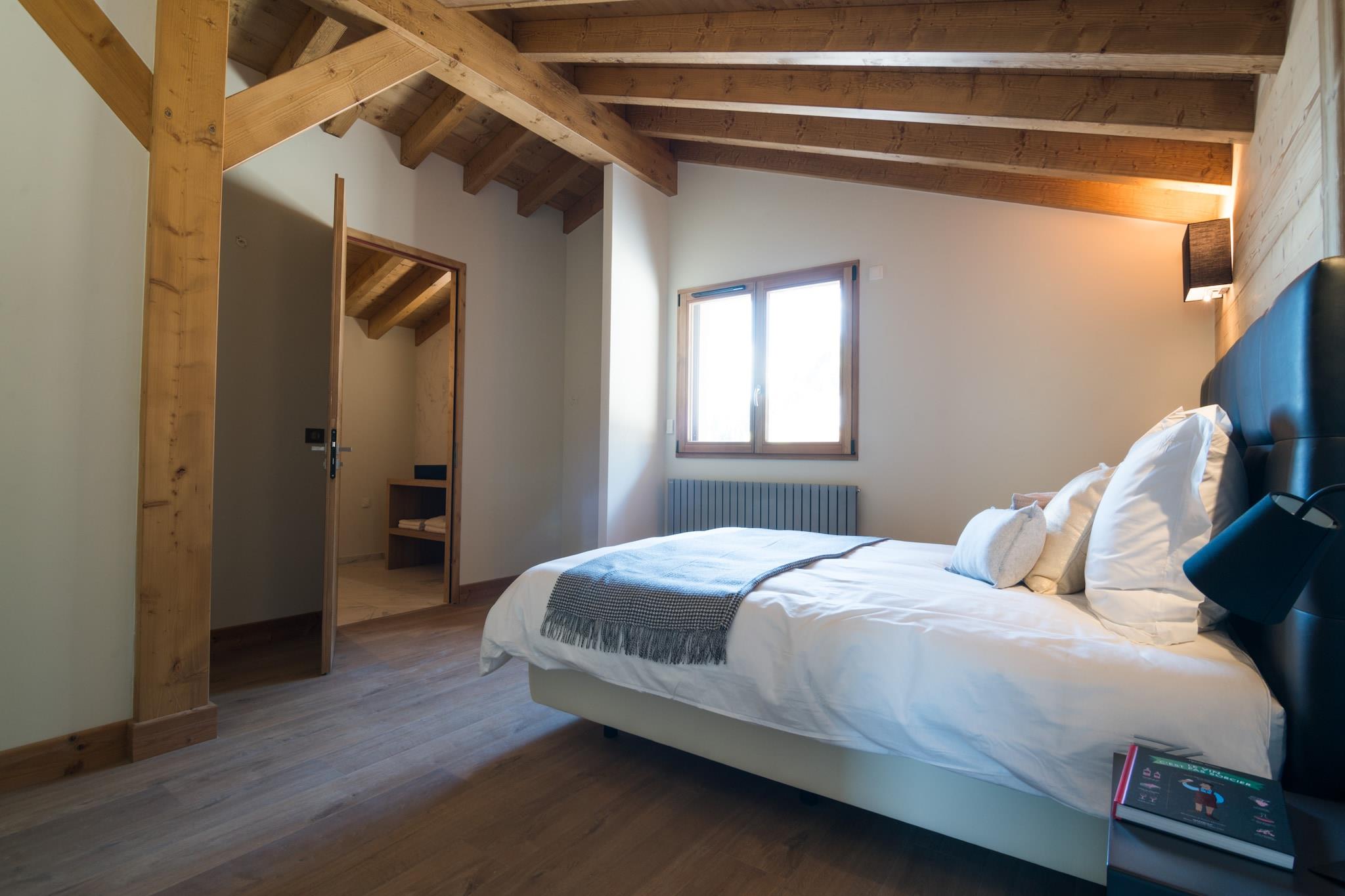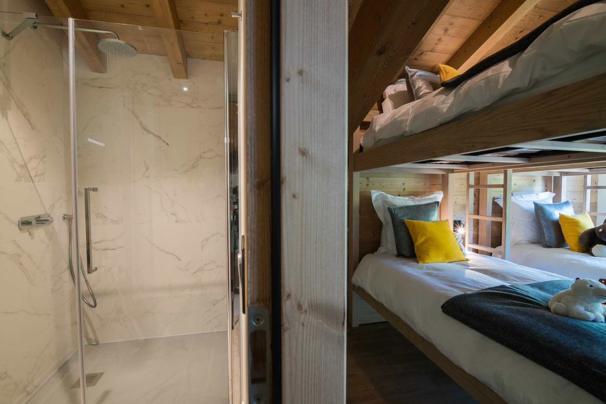 Les Portes de Megève is a small-scale, luxury holiday resort consisting of 18 magnificent chalets and 7 very comfortable apartments in different sizes. It enjoys a beautiful, hillside setting in between the charming town of Megève and the village of Praz-sur-Arly. The chalets and the apartment building are all built in traditional style with the use of wood, natural stone and high-quality materials throughout. The atmosphere is characterised by luxury and excellence. The apartments sleep from 4 to 9 guests and the chalets from 6 to 14 guests. Some of the chalets are detached, some are semi-detached and the rest are terraced in blocks of three. All accommodations feature a luxury, stylish interior and are equipped with a complete kitchenette, an attractive living room with flat-screen TV and a nice balcony or terrace. In the chalets, you'll also find a wood-burning stove and interesting, sloping ceilings. Our assortment includes different types of accommodations; the FR-74120-37 for example, is an apartment that's suitable for two to four guests. The second bed is in the living room. Some of these apartments have a terrace. The 2-bedroom apartment (FR-74120-38) is suitable for four to six guests; there's a sofa bed in the living room for the fifth and sixth person. The 9-person apartment (FR-74120-39) features 3 bedrooms and 3 bathrooms. The 6-person chalet (FR-74120-40) features 2 bedrooms and a sofa bed in the living room. For groups of 8 guests, there's a 4-bedroom chalet with 2 bathrooms (FR-74120-41). The 9-person chalet consists of 3 bedrooms and 4 bathrooms (FR-74120-42). Chalet FR-74120-43 is suitable for 11 people. It features 3 bedrooms, a dormitory for 5 people, as well as 4 bathrooms. For groups of 12, there's a chalet with 3 bedrooms, a dormitory for 6 people, as well as 4 bathrooms (FR-74120-44). Chalet FR-74120-45 sleeps up to 13 people across 3 bedrooms and a dormitory. It also has 4 bathrooms. A group of 13 could also choose the 4-bedroom chalet, which features a dormitory and 3 or 4 bathrooms as well (FR-74120-46). For groups of 14 people, there's a chalet with 4 bedrooms, a dormitory and 3 or 4 bathrooms (FR-74120-47).