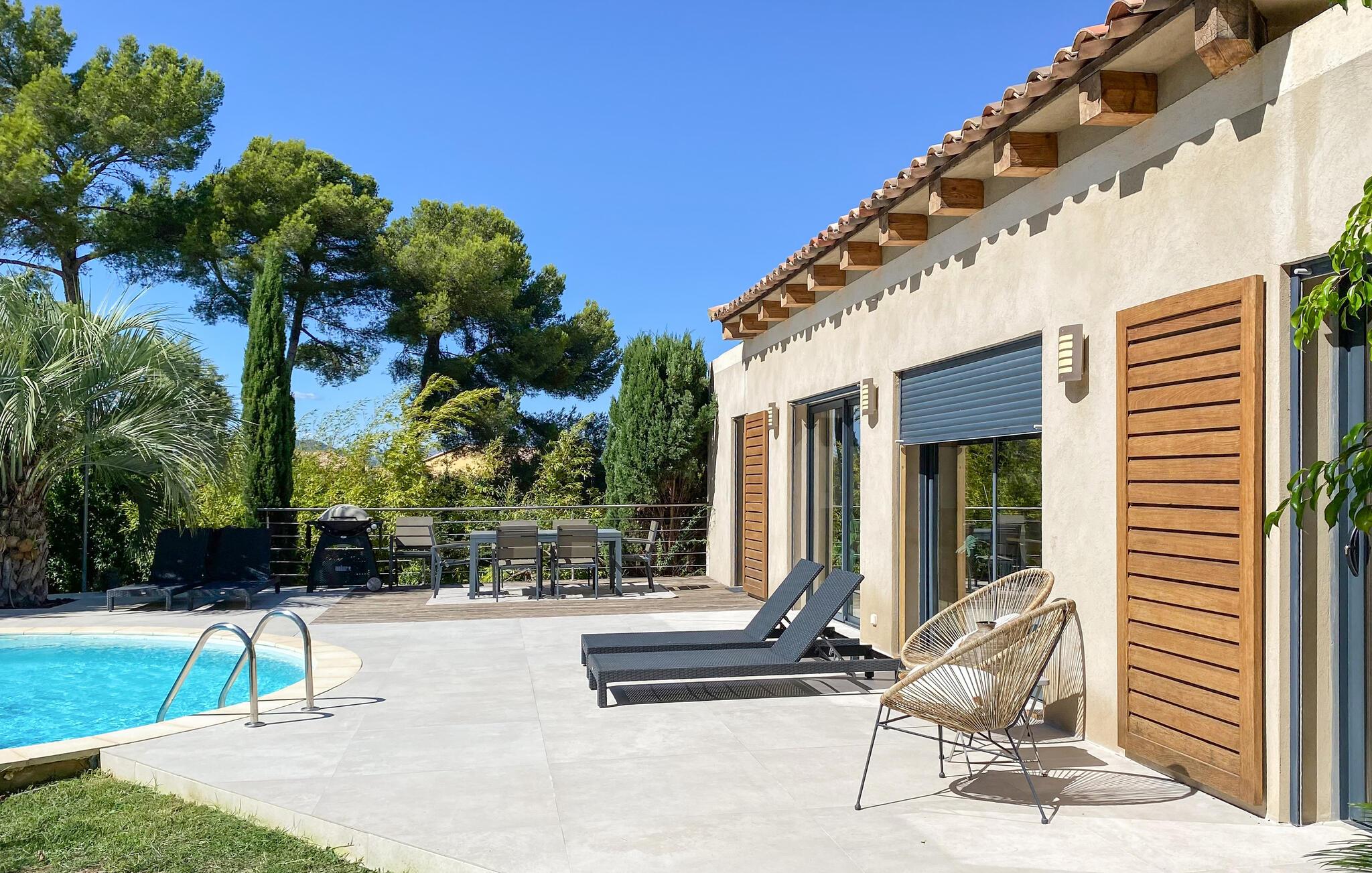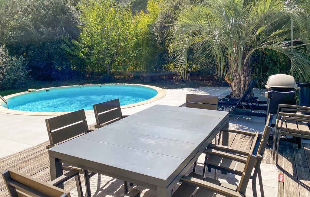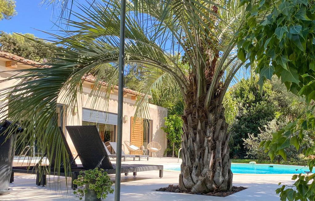 Dette skønne feriehus med egen pool findes i Hyéres, kun 200 m fra en kiesstrand og 500 m fra en sandstrand. Her er det muligt at nyde solen både for sig selv og ved Middelhavets strande. I dette komfortable og veludstyrede feriehus har I rammerne for en feri med afslapning og ro men også masser af muligheder for udflugter og aktiviteter. Soveværelserne har egne badeværelser og der er desuden en stor have I kan boltre jer på og ikke mindst tage et par forfriskende dukkerter i løbet af dagen. Nede ved stranden kan I prøve kræfter med forskellige vandsportsdiscipliner som dykning, jetski eller sejlsport. Inde i Hyéres er der en malerisk gammel midtby hvor en dejlig spadseretur i de små gyder kan anbefales. Byens gamle borg og tempelriddernes tårn er ligeledes et besøg værd. En gammel saltrute udgør deuden en skøn vandresti hvor I kan opleve den provencalske natur tæt på. Det gælder også halvøen Gien der også byder på paradisiske landskaber og klippefremspring - I kan følge en sti langs kysten. Børnene kan se frem til et besøg i Aquavillage eller Kiddy Parc.