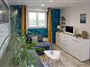 Føl jer hjemme og gør jer godt tilpas i den lyse, åbne opholdsstue, som lægger op til en harmonisk pause med familie eller venner. Tilbered jeres livretter i det fuldt udstyrede køkken og nyd dem sammen ved det indbydende spisebord. Efter en begivenhedsrig dag kan I slappe af i sofaen og bruge tid sammen på at læse eller se en god film.