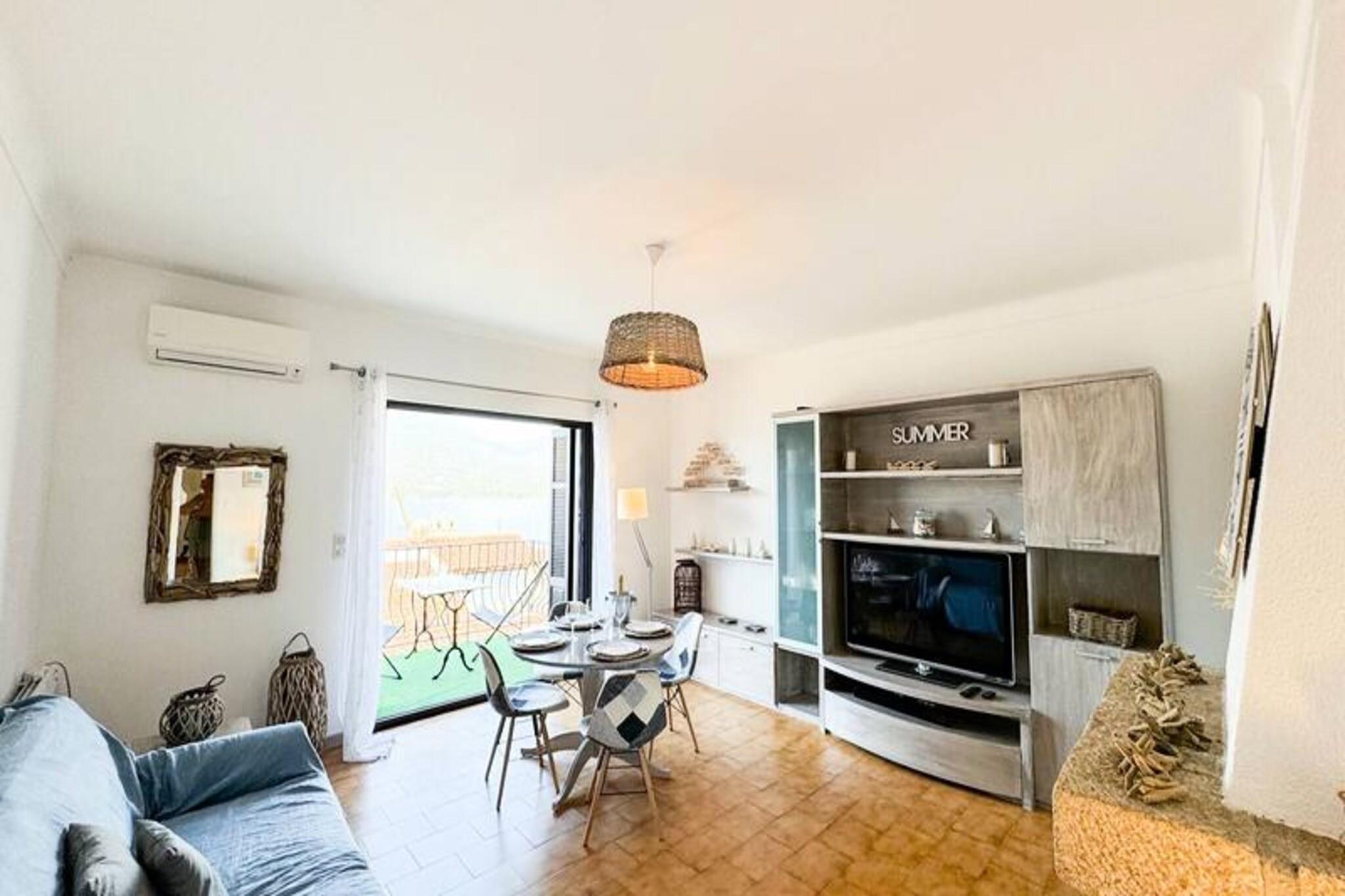 Denne charmerende, moderne lejlighed tilbyder en betagende havudsigt og kan komfortabelt rumme op til 4 gæster. Lejligheden har to soveværelser, hver med to 90 cm senge, der kan kombineres til en dobbeltseng, og direkte udgang til terrassen. Gæsterne kan nyde komforten med aircondition og Wi-Fi overalt på ejendommen. Sengetøj, herunder lagner og håndklæder, er forudsat for din bekvemmelighed. Parkering er gjort let med et gratis adgangskort til havneparkering, hvilket sikrer et stressfrit ophold. Lejligheden er ikke-ryger og tillader ikke kæledyr. Denne lejlighed har en ideel beliggenhed i Propriano, tæt på lokale caféer, butikker og markeder, så gæsterne nemt kan udforske området. Den fantastiske havudsigt og rolige omgivelser giver en perfekt baggrund for en afslappende ferie. Proprianos livlige havn og naturskønne omgivelser gør den til en fremragende base for at udforske Korsikas skønhed, med strande, vandrestier og udendørsaktiviteter kun kort afstand. Lejligheden har en rummelig opholdsstue med spiseplads, der giver direkte adgang til en stor terrasse med storslået havudsigt. Det fuldt udstyrede køkken, også med havudsigt, inkluderer alle nødvendige apparater til at tilberede måltider under dit ophold. Det funktionelle badeværelse sikrer din komfort, og lejere bedes venligst rydde op efter deres ophold, herunder opvask og udtagning af skraldet for at undgå ekstra gebyrer.