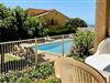 Denne charmerende lejlighed er perfekt til både familie- og romantiske udflugter. Det har en komfortabel stue med en kvalitetssovesofa (160x200 cm), et fladskærms-tv og en spiseplads. Soveværelset byder på en dobbeltseng (160x200 cm), som kan laves om til to enkeltsenge (80x200 cm). Kæledyr er velkomne mod et ekstra gebyr på 50 EURO pr. dyr, og et depositum på 200 EURO kræves ved ankomst. Lejligheden har også gratis Wi-Fi, aircondition og gratis parkering, hvilket sikrer et afslappende ophold. Lejligheden ligger i et roligt område kun 600 meter fra byens centrum, hvor du kan finde caféer, butikker og lokale markeder. Strandene og vandaktiviteterne ligger kun 1 km væk, perfekt til solbadning og vandsport. For dem, der er interesserede i sport, er et kommunalt sportskompleks og tennisbaner kun 250 meter fra lejligheden, mens to supermarkeder er inden for 1 km for din bekvemmelighed. Det fuldt udstyrede åbne køkken, der er placeret i stuen, gør det nemt at tilberede måltider, mens badeværelset har en vaskemaskine for ekstra bekvemmelighed. Lejligheden tilbyder et fredeligt oase med smuk udsigt over havet, haven og swimmingpoolen. Sengetøj leveres, og rummet er designet til komfort med aircondition og alle nødvendige faciliteter til et problemfrit ophold.