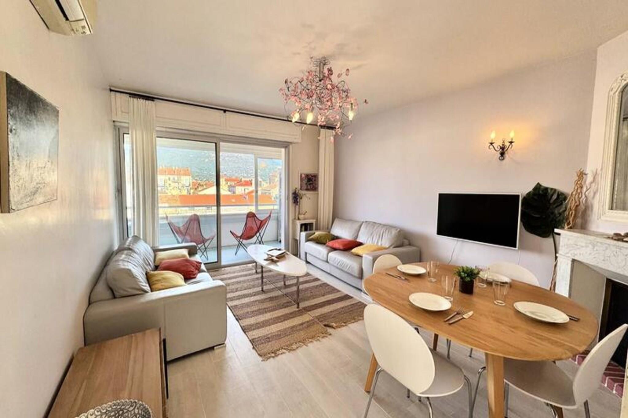 Badet i det gyldne lys af Korsikas middelhavscharme tilbyder denne stilfulde lejlighed en rolig tilflugtssted i hjertet af byens centrum. Forestil dig at vågne op til den blide havbrise og træde ud på din private terrasse, hvor byens tage strækker sig foran dig og skaber en malerisk baggrund for din morgenkaffe. Kun få skridt fra sandstrandene og de pulserende lokale faciliteter er denne ejendom et paradis for dem, der søger både afslapning og bekvemmelighed. Uanset om du udforsker den nærliggende kystlinje eller forkæler dig selv med korsikanske delikatesser, føles hvert øjeblik her som en hyldest til ø-livet. \n\nLejligheden er designet med komfort og elegance i tankerne og har to indbydende soveværelser, herunder en master suite med en luksuriøs dobbeltseng og påklædningsområde samt et charmerende børneværelse. Det rummelige badeværelse med badekar sikrer et beroligende tilflugtssted efter en dag med eventyr. Det fuldt udstyrede køkken åbner direkte ud til terrassen, hvilket gør den perfekt til udendørs spisning eller aftengrillfester under stjernerne. Den lyse stue med panoramaudsigt er et ideelt sted at slappe af, mens moderne bekvemmeligheder som Wi-Fi og aircondition sikrer et problemfrit ophold. \n\nTræd udenfor, og du vil blive fordybet i byens pulserende puls. Fra butikker og lokale markeder til de uberørte strande, der kun ligger en kort gåtur væk, er alt hvad du behøver lige ved hånden. Der er bekvem parkering på gaden, og lejlighedens rolige bygning tilføjer et ekstra lag af ro til dit ophold. \n\nUanset om du er her for en romantisk ferie eller en familieferie, kombinerer dette korsikanske tilflugtssted det bedste fra kystlivet med urban elegance. Lad øens skønhed og denne lejligheds komfort skabe uforglemmelige minder for dig og dine kære.