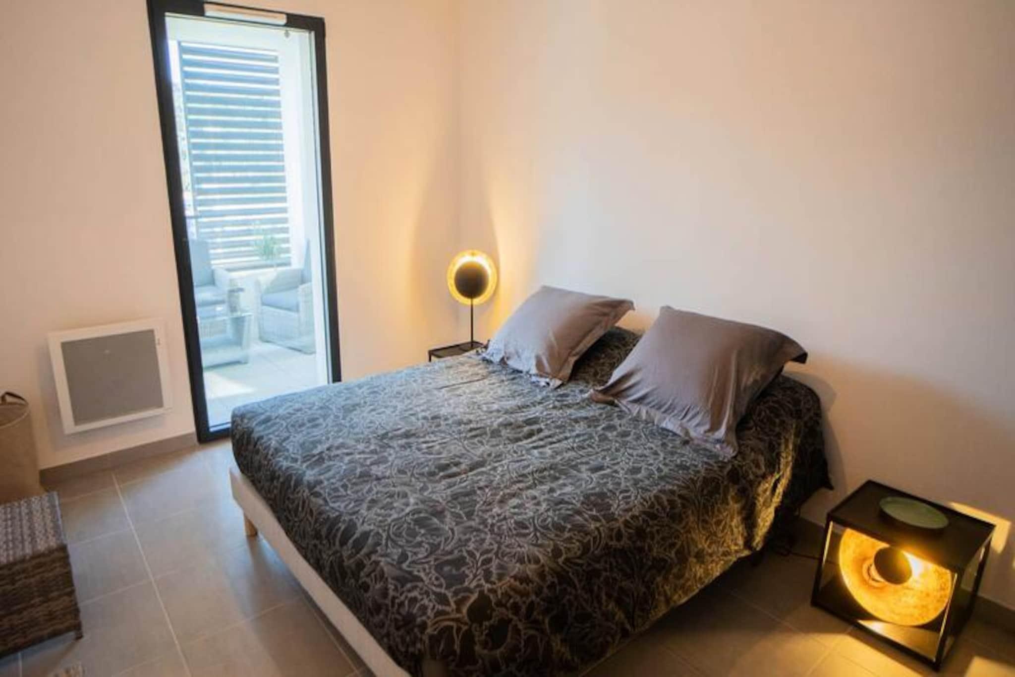 Et stenkast fra Proprianos glitrende kyster tilbyder denne dejlige lejlighed med et soveværelse en rolig tilflugtssted i hjertet af Korsika. Med sin førsteklasses beliggenhed i en sikker bolig er det det perfekte tilflugtssted for par eller små familier, der søger moderne komfort kombineret med middelhavscharme. Forestil dig at vågne op til den blide havbrise og nyde din morgenkaffe på den private terrasse, omgivet af øens naturlige skønhed. Uanset om du er her for en romantisk ferie eller et familieeventyr, sætter denne ejendom scenen for uforglemmelige øjeblikke. \n\nIndenfor kan lejligheden prale af en lys og luftig stue med et hyggeligt opholdsområde med en sovesofa af høj kvalitet, ideel til afslapning efter en dag med udforskning. Det åbne køkken er fuldt udstyret med topmoderne apparater, hvilket gør det nemt at tilberede lækre måltider med friske lokale ingredienser. Det rummelige soveværelse, udsmykket med en komfortabel dobbeltseng, indbyder til afslappende nætter, mens det elegante, moderne badeværelse sikrer bekvemmelighed og stil. Aircondition, sengetøj og rengøringsservice er inkluderet, hvilket sikrer et problemfrit ophold.\n\nTræd udenfor, og du er kun få minutter væk fra Proprianos pulserende bymidte, hvor butikker, restauranter og uberørte strande venter. Uanset om du forkæler dig selv med korsikansk køkken, udforsker kystlinjen eller blot nyder solen, er alt hvad du behøver inden for rækkevidde. For ekstra bekvemmelighed ligger en tankstation med en dagligvarebutik og fastfood-muligheder lige på den anden side af gaden, perfekt til de sidste nødvendige ting.\n\nVælg denne charmerende lejlighed til din korsikanske ferie og nyd en blanding af afslapning, eventyr og den varme middelhavsatmosfære, der gør Propriano til en eftertragtet destination. Lad øens skønhed og dette hyggelige tilflugtssted skabe minder, du vil værdsætte for evigt.
