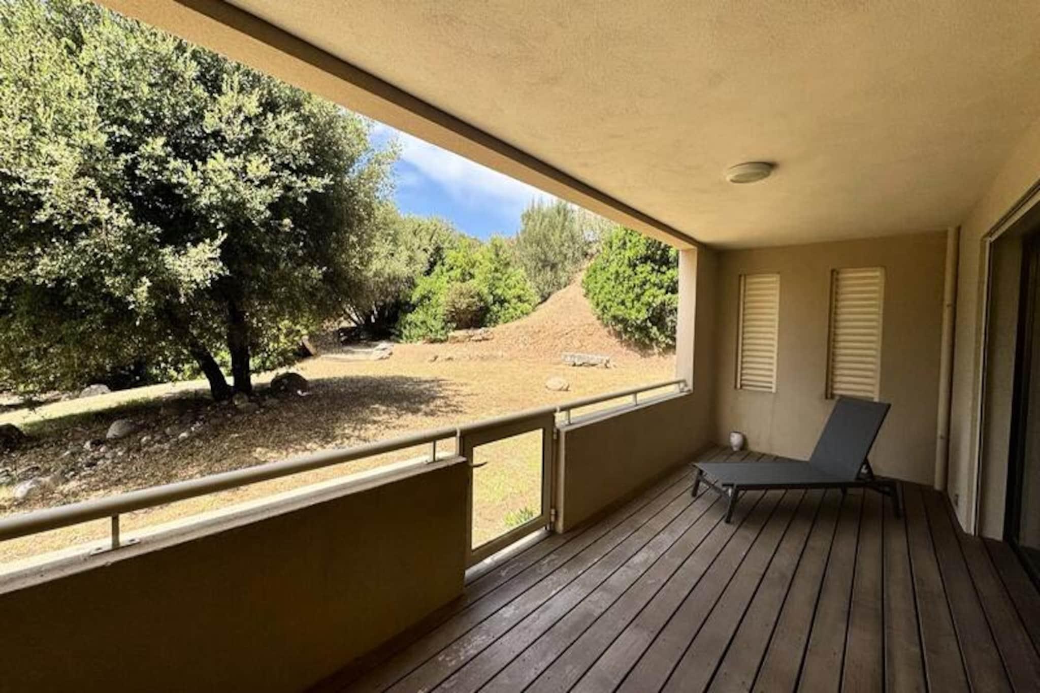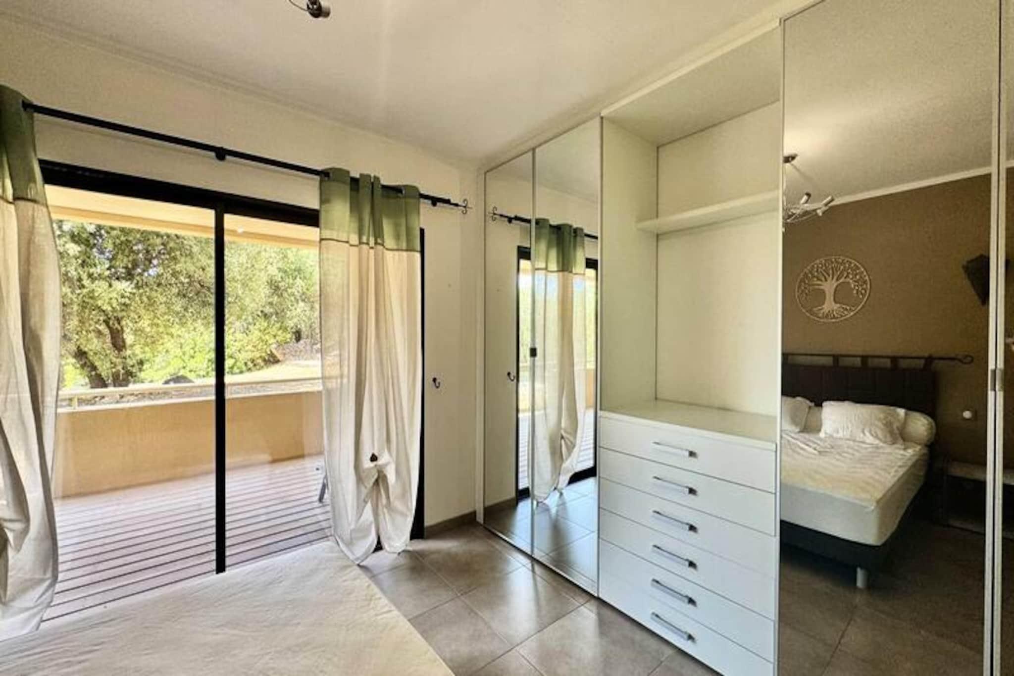 Midt i Proprianos fredfyldte charme tilbyder denne dejlige lejlighed med et soveværelse et roligt tilflugtssted omgivet af frodige haver og middelhavsstemning. Perfekt beliggende i et roligt kvarter, men kun en kort gåtur fra de vigtigste faciliteter, inviterer denne ejendom dig til at opleve det bedste af korsikansk livsstil. Forestil dig at nippe til din morgenkaffe på den rummelige terrasse, sole dig i den blide havbrise og nyde den fredelige atmosfære, der definerer disse idylliske omgivelser. Uanset om du søger afslapning eller eventyr, er denne lejlighed din port til begge dele. \n\nTræd indenfor for at opdage en lys og luftig stue, der problemfrit forbinder sig med den udendørs terrasse og skaber en harmonisk blanding af indendørs og udendørs ophold. Terrassen, komplet med spisemøbler og liggestole, har udsigt over en frodig have, der lover øjeblikke med ro. Det fuldt udstyrede køkken er ideelt til at tilberede friske, lokale delikatesser, mens soveværelset har en luksuriøs queensize-seng og direkte adgang til terrassen, hvilket sikrer afslappende nætter og forfriskende morgener. Et moderne brusebad og separat toilet bidrager til bekvemmeligheden, suppleret af aircondition og højhastighedsinternet for et behageligt ophold. \n\nBeliggende kun 200 meter fra et travlt indkøbscenter med et Auchan-supermarked, restauranter og forskellige tjenester, er alt hvad du behøver inden for rækkevidde. Proprianos centrum ligger blot 5 minutters kørsel væk eller en behagelig gåtur væk via en naturskøn genvej. Udforsk de nærliggende strande, nyd korsikansk mad, eller begiv dig ud i øens barske landskaber for uforglemmelige eventyr. \n\nMed sengelinned inkluderet, privat parkering og slutrengøring sikrer denne lejlighed en stressfri ferie. Uanset om du er her for at slappe af eller udforske, tilbyder denne ejendom den perfekte balance mellem komfort, bekvemmelighed og korsikansk charme.