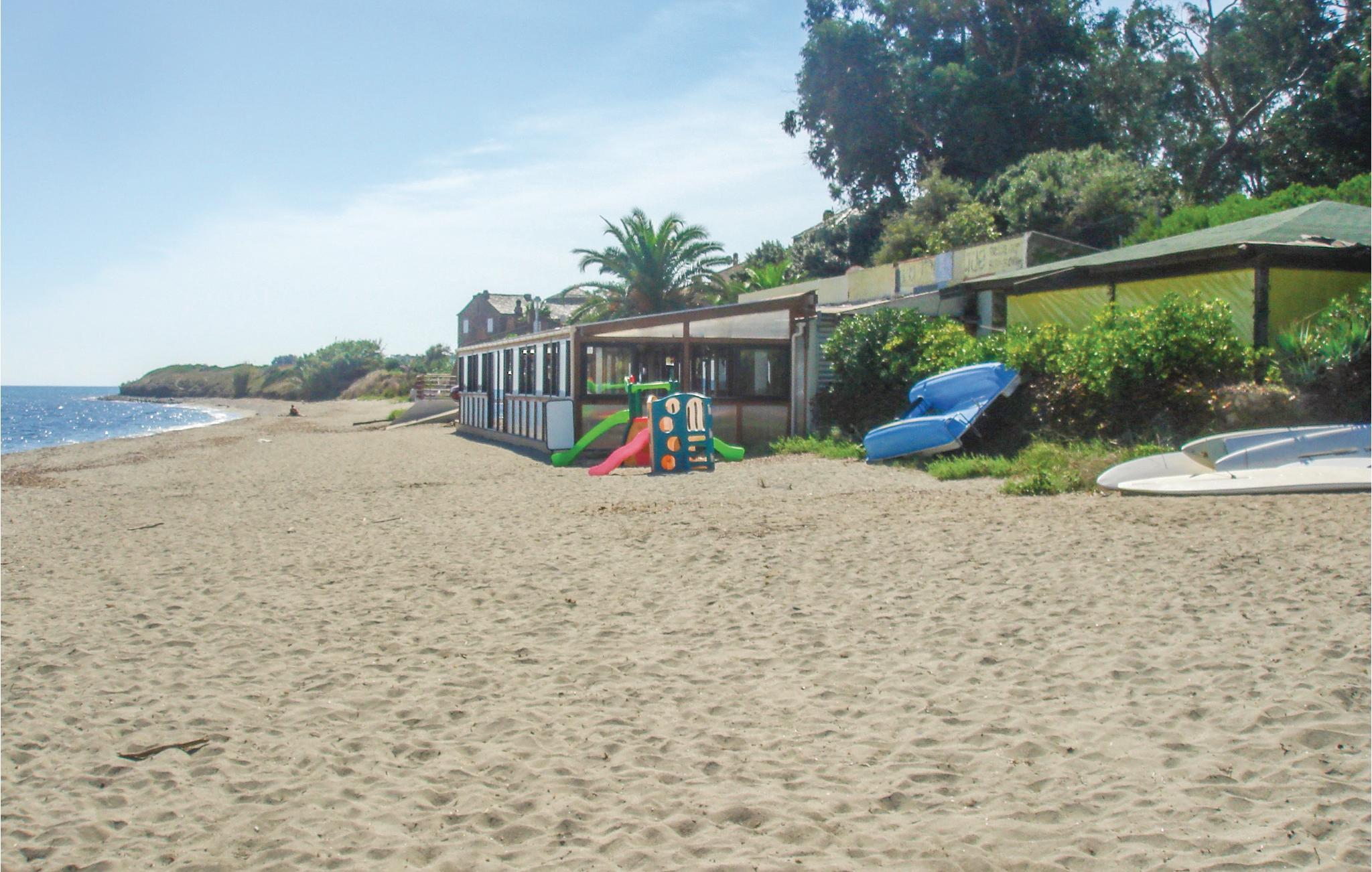 I dette skønne feriehus kan I holde en solrig ferie fuld af afslapning på skønhedens ø. Huset ligger i et ferieanlæg blot 100 m fra den skønne sandstrand, og I bor kun en km fra en motortrafikvej, hvorfra der er nem adgang til fx Nationale 10, ad hvilken I nemt når ud til alle øens hjørner og kroge. Huset ligger i en stor privat have og har sin egen terrasse og i anlægget er en skøn fælles pool. Feriehuset er lyst og indrettet så I har glæde af solen så længe den er på himlen. I anlægget er en tennisbane (belagt med et gebyr). Huset med plads til op til seks personer er godt udstyret, bl.a. med klimaanlæg. Her er der noget for alle aktive som kan sejle, prøve jetski, vandre, cykle, spille tennis på bane 300 m fra anlægget og tage på udflugter til øens mange kulturelle highlights. Her kan I se frem til en vellykke ferie på den skønne ø Korsika.