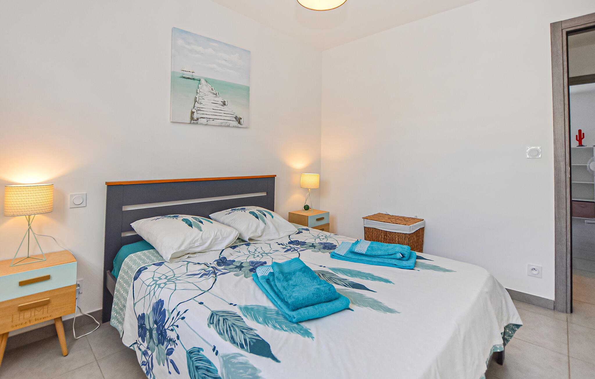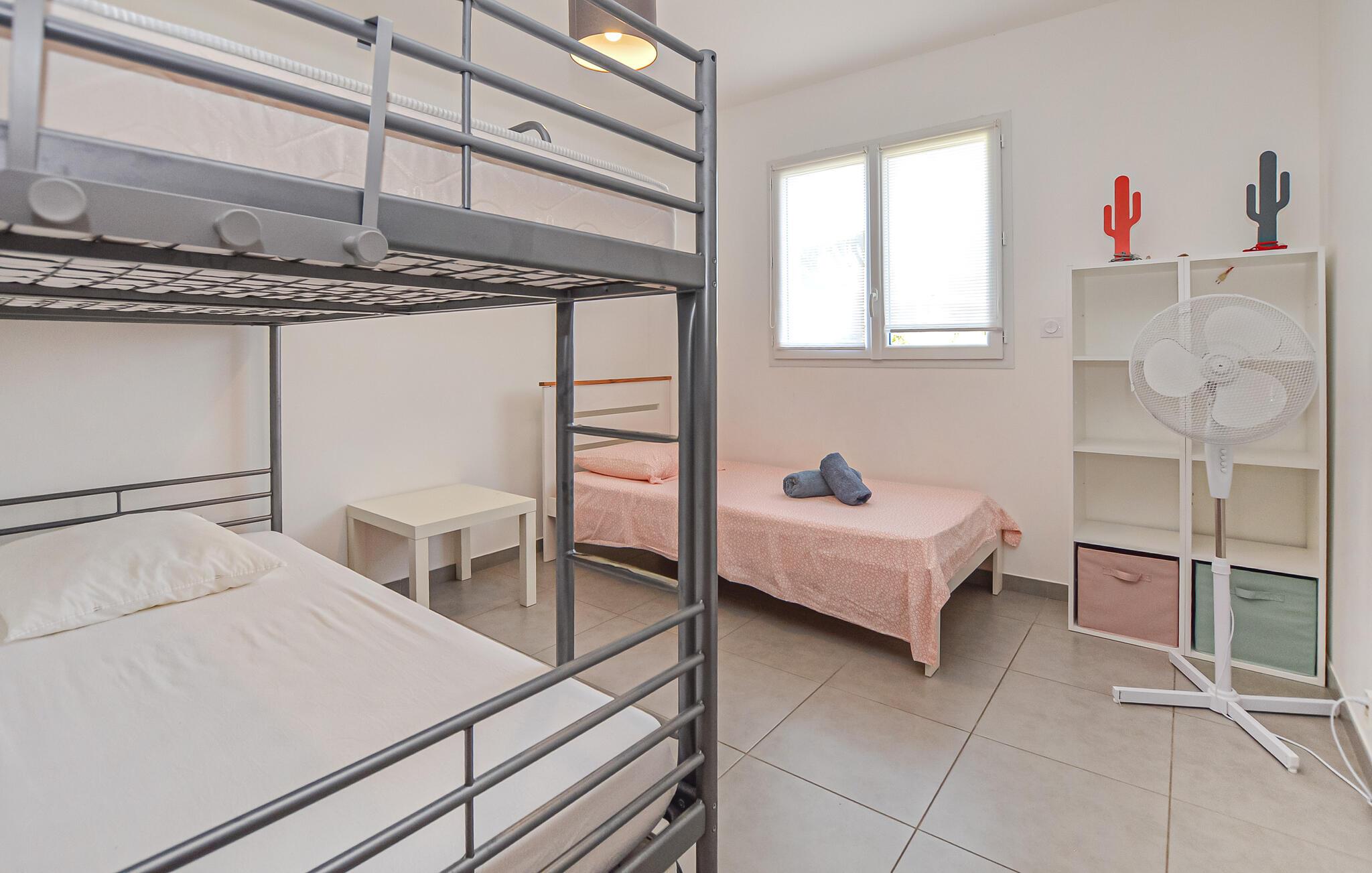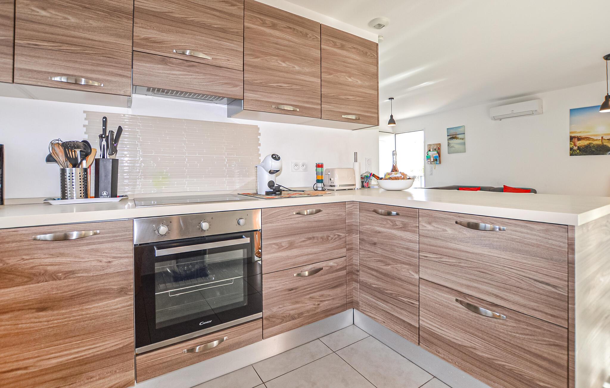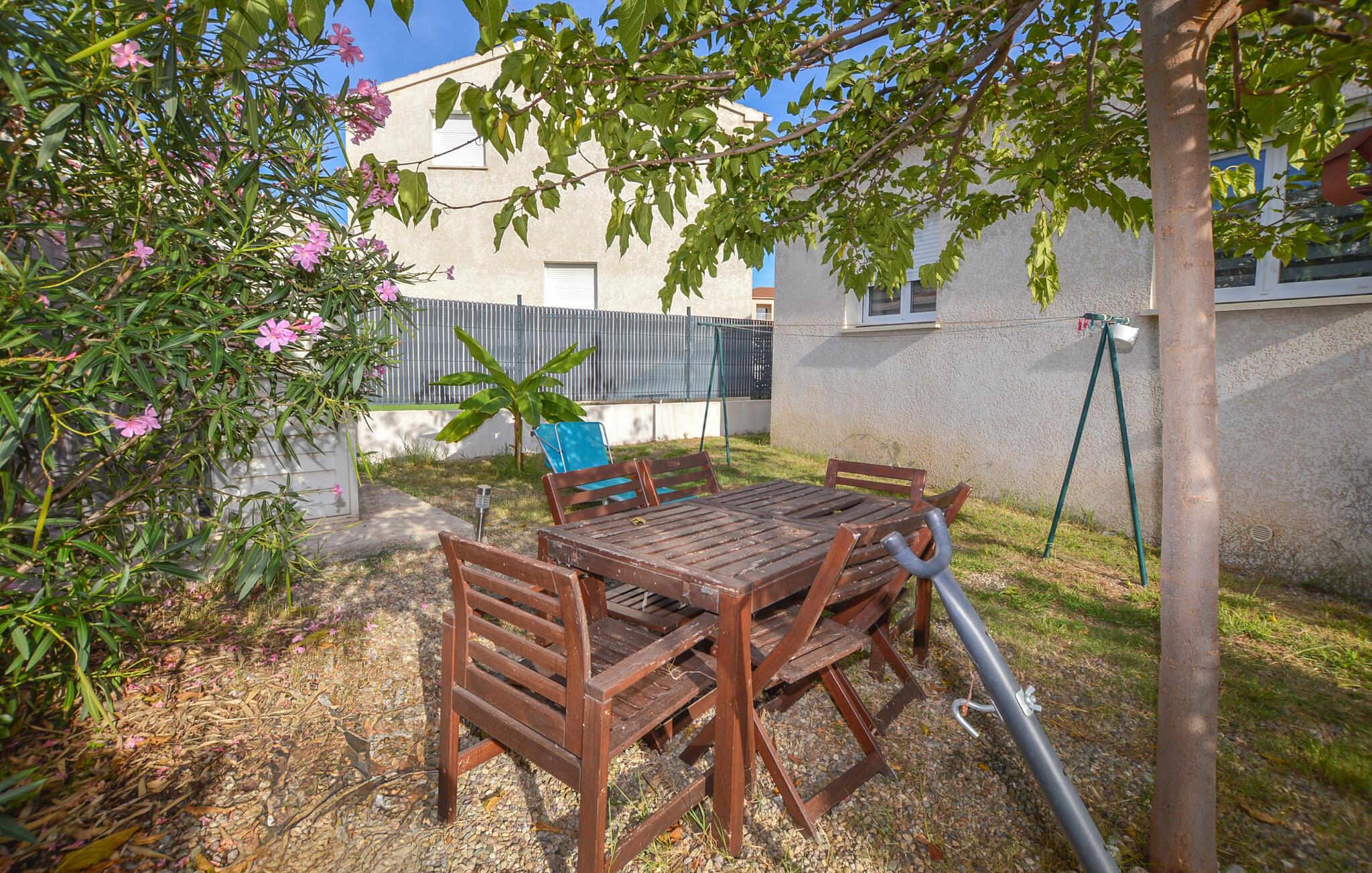 Tilbring solrige dage i dette moderne feriehus med adgang til pool.