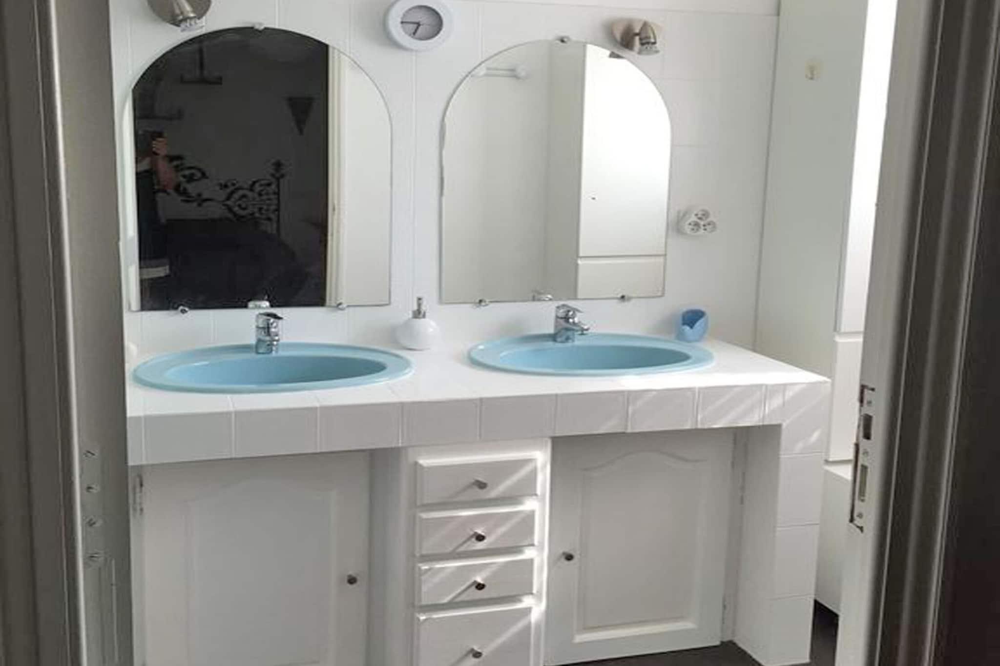 Stueetage: (åbent køkken(elkedel, brødrister, komfur(Komfur med fire kogeplader, induktion), kaffemaskine, ovn, grill, combi-mikroovn, opvaskemaskine , køle-fryseskab), stue / spisestue(Fjernsyn(fladskærm), spisebord, sofahjørne, DVD-afspiller, klimaanlæg), soveværelse(dobbeltseng), soveværelse(dobbeltseng(140 x 200 cm)), soveværelse(køjeseng), badeværelse(badekar med bruser, håndvask, toilet), badeværelse(badekar med bruser, 2x håndvask), toilet, vaskerum (vaskemaskine, strygebræt, strygejern)) klimaanlæg, terrasse(privat), have(privat, indhegnet, anlagt have), havemøbler, solstole, grill, parkering, Parasol, swimmingpool(privat, vand alarm, 10 x 5 m.), bordtennisbord, cykler til rådighed