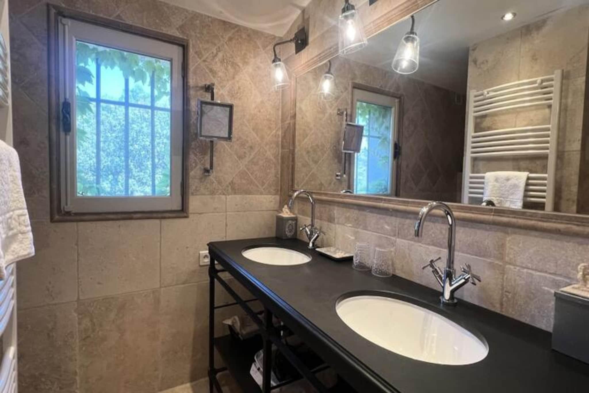 Villa Maya er et stort familiehus med 5 soveværelser, 4 badeværelser, swimmingpool, petanquebane. Alt blev gjort tænkt for en uforglemmelig ferie. Individuelt klimaanlæg i 4 soveværelser. Plus: absolut ro og sindsro. ved foden af ??Luberon naturpark. Oplev Villa Maya, et familiehus beliggende i hjertet af Luberon, der kombinerer provencalsk charme og moderne komfort. Med 5 soveværelser, 4 badeværelser, en stor privat swimmingpool og en petanquebane er denne villa ideel til en mindeværdig familieferie. Forestil dig dig selv i en rummelig villa omgivet af fyrre- og oliventræer, med en spektakulær udsigt over Luberon og Durance. Villa Maya inviterer dig til at slappe af i et fredeligt miljø, lige uden for byen. nærhed maleriske landsbyer i Provence. Beliggende ved Puget, blev Villa Maya renoveret i 2012 og kan rumme op til 100 personer. 10 personer. Den 2 hektar store ejendom omfatter en pragtfuld 12m x 6m glasmosaik swimmingpool og et poolhus med ekstra soveværelse. De indvendige rum er rummelige og moderne med et veludstyret køkken, en komfortabel stue og en veranda med bordfodbold. De 4 dobbeltværelser med aircondition og de 2 badeværelser i hovedhuset tilbyder al den nødvendige komfort. Poolhuset har også et dobbeltværelse med aircondition og tekøkken. À Udenfor kan du nyde træterrasserne, liggestole, plancha-grill og grill. gas og oplyste boulespil til venskabsaftener.. For at sikre et problemfrit ophold er vores team der for at hjælpe dig. til at ledsage dig hvert skridt. Vi tilbyder en personlig velkomst, en privat concierge-service og professionel rengøring efter din afrejse. Der kræves et depositum på 3.000 euro, som kan justeres uden forskud via vores Swikly indbetalingsløsning. Book nu for en autentisk oplevelse i hjertet af Luberon med . Nyd en uforglemmelig ferie på Villa Maya! Regler for brug: - Det er forbudt at bruge pejsen og ryge udenfor. det indre. - Vær forsigtig med grillen, især under blæsende forhold. - Sid ikke i sofaen med vådt tøj. - Gå ikke derfra med de medfølgende håndklæder. Inden din afrejse bedes du: - Tøm skraldespandene. - Tøm køleskabet og opvaskemaskinen. - Rengør grillen. Depositum (i euro) - 2000