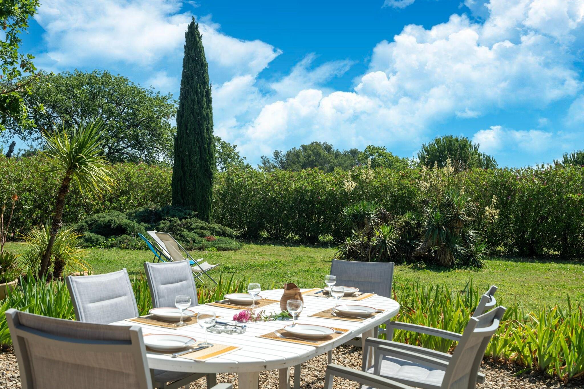 Denne villa, der ligger i en frodig anlagt park på 2,5 hektar, tilbyder en rolig oase omgivet af fyrreskove, garrigues og en fælles swimmingpool. Ideel til familier eller venner, er det et paradis af afslapning, natur og komfort. Ejendommen har to uafhængige boliger, og denne annonce inviterer dig til at nyde en af dem - komplet med rummelige interiører og direkte adgang til haven og terrassen. Indenfor kan villaen prale af en indbydende stueetage med et fuldt udstyret køkken, spiseplads og stue, der åbner ud mod naturen. En korridor fører til tre hyggelige soveværelser, et badeværelse og et toilet. Ovenpå tilbyder et ekstra soveværelse med eget toilet og en panoramaterrasse en fantastisk udsigt over ejendommens naturlige skønhed. Ud over villaen inviterer regionen til udforskning. Gå en tur gennem naturskønne stier, oplev charmerende landsbyer og forkæl dig selv med vinsmagning på nærliggende vinmarker. Uanset om du slapper af ved poolen eller nipper til lokale årgangsvine på terrassen, indfanger dette fredelige tilflugtssted essensen af det sydfranske liv. Bemærk: Swimmingpoolen vil ikke være tilgængelig før den 15. maj 2026.