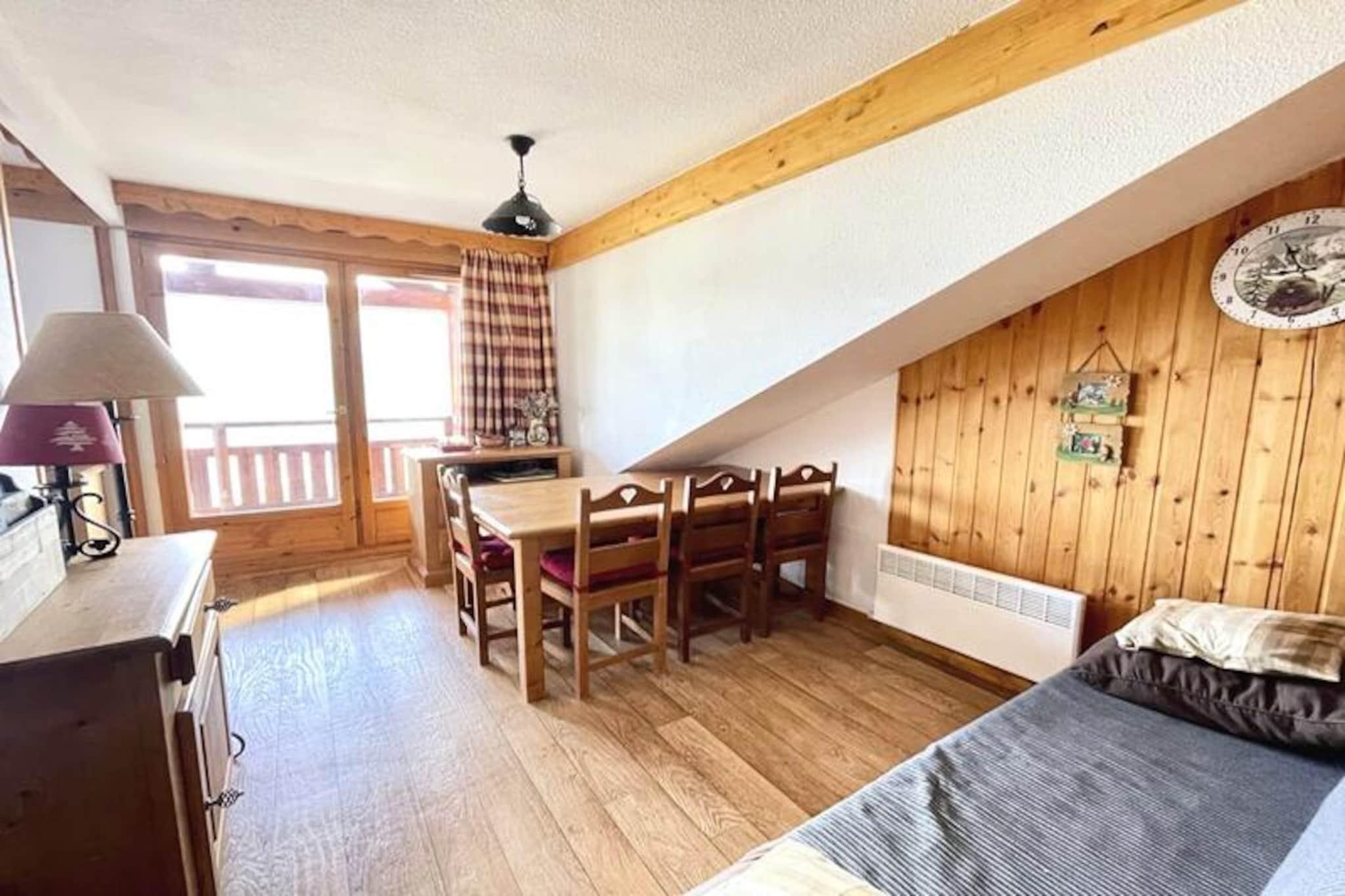Højt over den maleriske dal Puy Saint Vincent inviterer denne dejlige lejlighed dig til at opleve charmen ved de franske alper i enhver sæson. Med sin hyggelige atmosfære og fantastiske udsigt fra den private balkon er det det perfekte tilflugtssted for familier eller små grupper, der søger både eventyr og afslapning midt i et betagende alpint landskab. Uanset om det er dækket af sne eller badet i sommersolskin, tilbyder det omkringliggende landskab uendelige muligheder for udforskning og nydelse. \n\nIndenfor er lejligheden omhyggeligt designet til at rumme 4-6 gæster. Stuen har en komfortabel sovesofa, en spiseplads og et fladskærms-tv, hvilket skaber et indbydende rum at slappe af efter en dag med aktiviteter. Det fuldt udstyrede køkken inkluderer moderne apparater såsom en kombineret mikrobølgeovn/ovn, opvaskemaskine og endda en raclette-grill for en ægte smag af regionen. Sovearrangementerne er lige så indbydende med et soveværelse med dobbeltseng og et andet soveværelse med to sæt køjesenge, alt suppleret med rigelig opbevaringsplads. Et separat badeværelse og toilet bidrager til bekvemmeligheden, mens balkonen tilbyder et roligt sted at nippe til din morgenkaffe eller nyde en aften under stjernerne.\n\nLa Dame Blanche-residensen forbedrer dit ophold med direkte adgang til skipisten, en opvarmet udendørs pool (åben om sommeren) og en sauna for ultimativ afslapning. Faciliteterne på stedet inkluderer en restaurant, et bageri og en skiudlejningsbutik, der sikrer, at alt hvad du behøver er inden for rækkevidde. For dem, der rejser med små børn, kan babyudstyr lejes, og overdækket parkering kan reserveres for ekstra bekvemmelighed.\n\nUanset om du snor dig gennem frisk puddersne om vinteren eller vandrer på de frodige stier i Écrins Nationalpark om sommeren, er denne charmerende alpine oase din port til uforglemmelige eventyr. Oplev magien ved Puy Saint Vincent og skab minder, der vil vare hele livet.