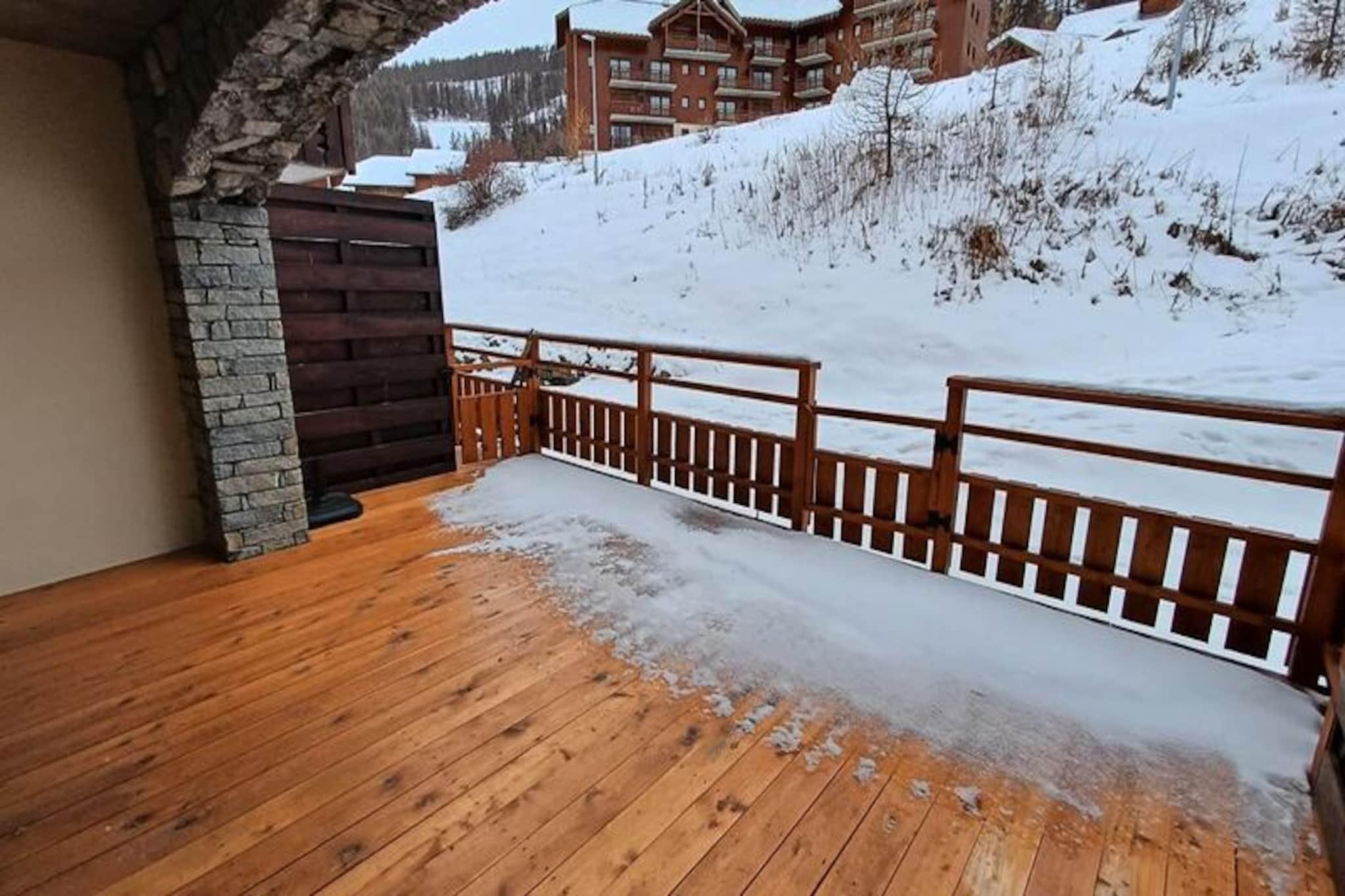 Højt over den fredfyldte dal Puy Saint Vincent tilbyder denne charmerende lejlighed i La Dame Blanche-residensen en perfekt blanding af alpin komfort og moderne bekvemmeligheder. Forestil dig at vågne op til den friske bjergluft, træde ud på din private balkon med en varm kaffe i hånden og kigge ud på de snedækkede tinder, der omgiver dig. Uanset om du er her for spændingen ved skiløb eller roen på sommervandreture, lover dette tilflugtssted en uforglemmelig flugt i hjertet af de franske alper. \n\nIndenfor er den 34 m² store lejlighed omhyggeligt designet til at rumme op til seks gæster. Den hyggelige stue har en udtrækssovesofa, et spisebord og et fladskærms-tv, mens det fuldt udstyrede køkken inviterer dig til at tilberede solide måltider efter en dag med eventyr. Sovepladserne omfatter et roligt soveværelse med dobbeltseng, et kahytværelse med to enkeltsenge og en sovesofa i opholdsstuen, alle med bløde dyner og puder til en afslappende nat. Et separat badeværelse og toilet bidrager til bekvemmeligheden og sikrer et behageligt ophold for både familier og små grupper.\n\nSelve residensen er et paradis for afslapning og aktivitet. Med direkte adgang til skiløjperne kan du prøve de pudrede løjper lige uden for døren. Om sommeren bliver den opvarmede udendørs pool en forfriskende oase, mens saunaen tilbyder et hyggeligt tilflugtssted om vinteraftenerne. Faciliteterne på stedet inkluderer en restaurant, snackbar, bageri og en skiudlejningsbutik, hvilket gør det nemt at nyde din ferie uden at skulle rejse langt. \n\nUanset om du udforsker de betagende løjper i Écrins Nationalpark, forkæler dig selv med lokale delikatesser på nærliggende spisesteder eller blot nyder den alpine atmosfære, er denne lejlighed din indgang til det bedste af Puy Saint Vincent. Book dit ophold og skab minder, der vil vare hele livet.