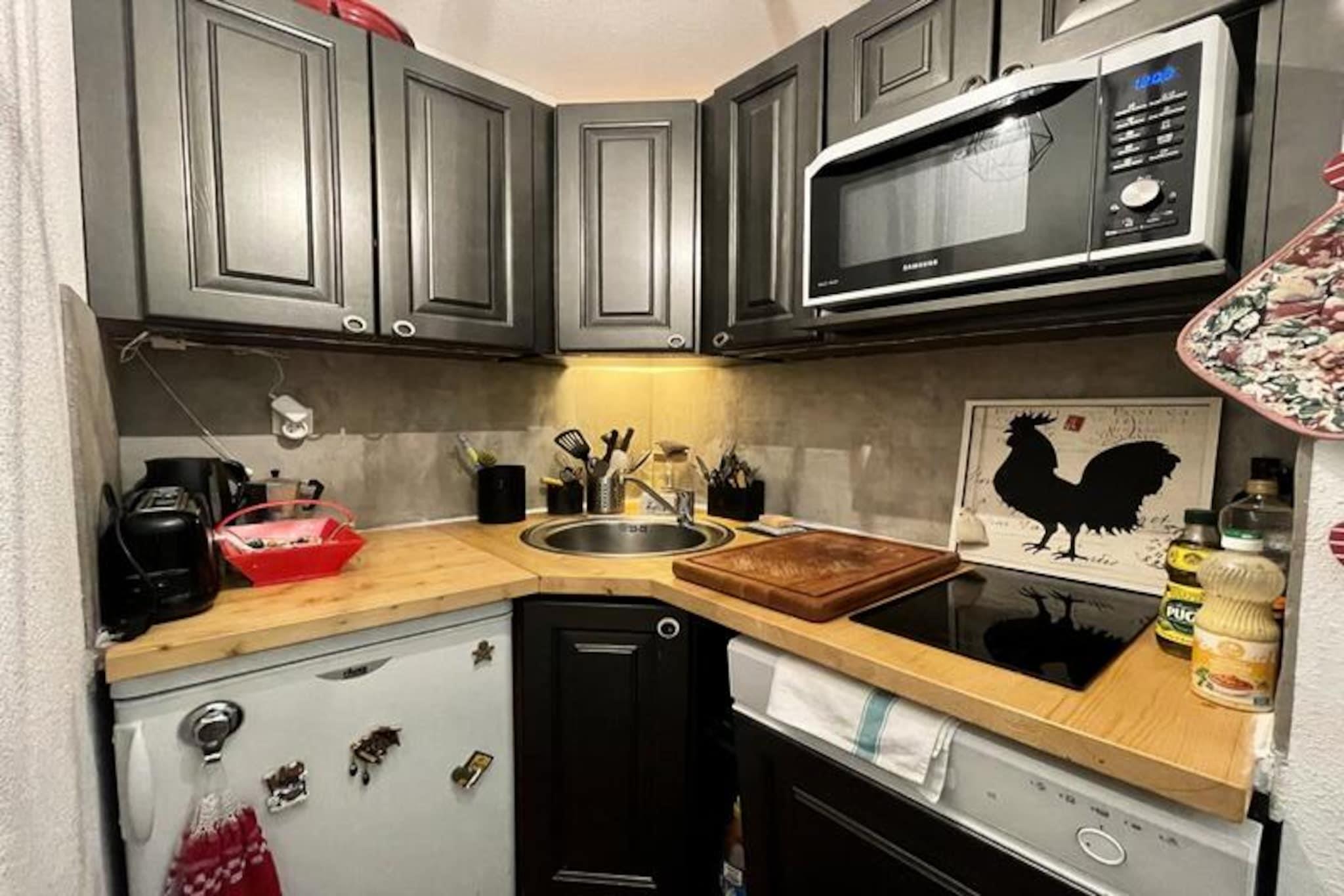 Højt over den maleriske dal Puy Saint Vincent fra 1800 inviterer denne charmerende lejlighed i La Dame Blanche-residensen dig til at opleve den perfekte alpine getaway. Forestil dig at vågne op til frisk bjergluft og træde ud på din private balkon for at nyde den betagende udsigt over de omkringliggende tinder. Uanset om du er her for spændingen ved vintersport eller roen ved sommervandreture, tilbyder dette hyggelige tilflugtssted en problemfri blanding af komfort og bekvemmelighed. \n\nIndvendigt er lejligheden omhyggeligt designet til at rumme op til seks gæster. Opholdsstuen har en komfortabel sovesofa, et spisebord og et fladskærms-tv, hvilket skaber et indbydende rum at slappe af efter en dag med eventyr. Det udstyrede køkken, komplet med moderne apparater som mikrobølgeovn, opvaskemaskine og keramisk kogeplade, gør det nemt at tilberede måltider til din gruppe. Sovepladserne omfatter et soveværelse med dobbeltseng og et kahytrum med køjesenge, hvilket sikrer en afslappende nat for alle. Et separat badeværelse og toilet bidrager til rummets praktiske anvendelighed, mens vaskemaskinen giver ekstra bekvemmelighed. \n\nSelve residensen kan prale af direkte adgang til skiløjperne, hvilket gør den til et ideelt valg for vinterentusiaster. Faciliteterne på stedet inkluderer en opvarmet udendørs pool (åben om sommeren), en sauna og et møntvaskeri. Du finder også en restaurant, snackbar, bageri og skiudlejning lige uden for døren, samt en lille købmand med de nødvendige varer. \n\nUanset om du udforsker de uberørte stier i Écrins Nationalpark eller nyder afterskiing, tilbyder denne lejlighed den perfekte base for at skabe uforglemmelige minder i de franske alper. Med sin blanding af moderne komfort og uovertrufne beliggenhed er La Dame Blanche din port til alpin lykke.